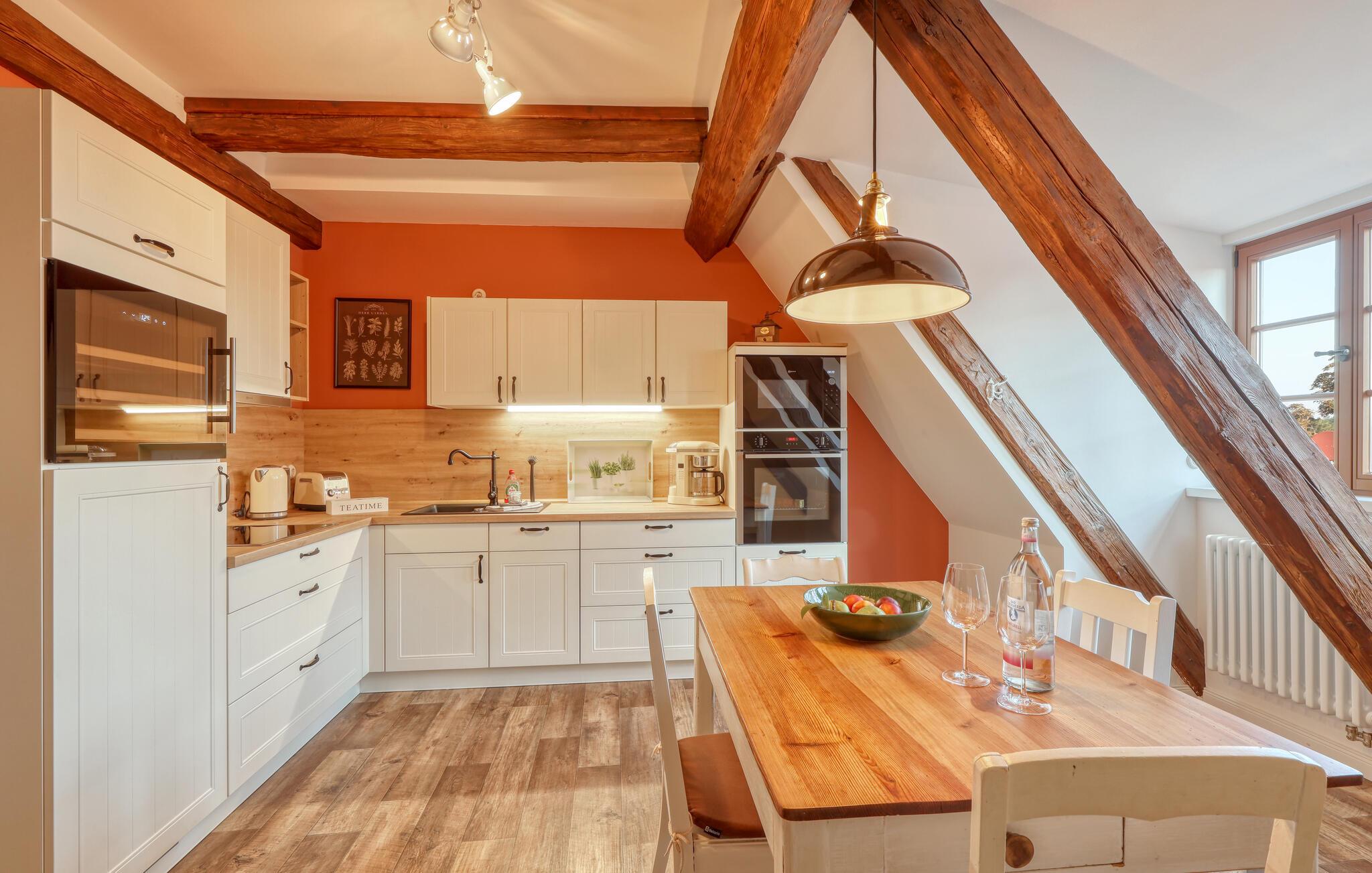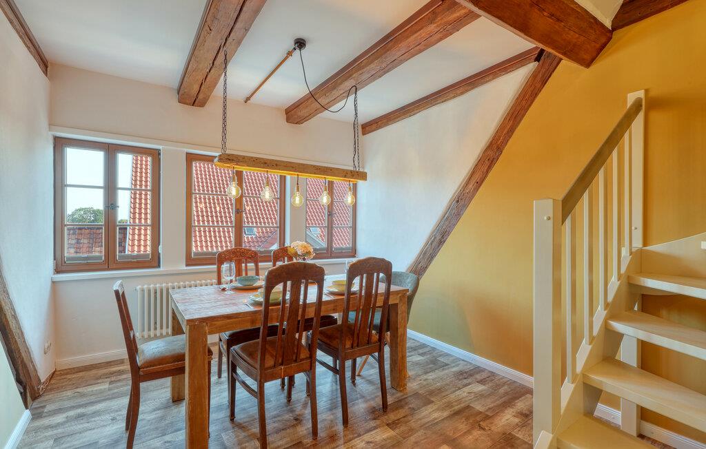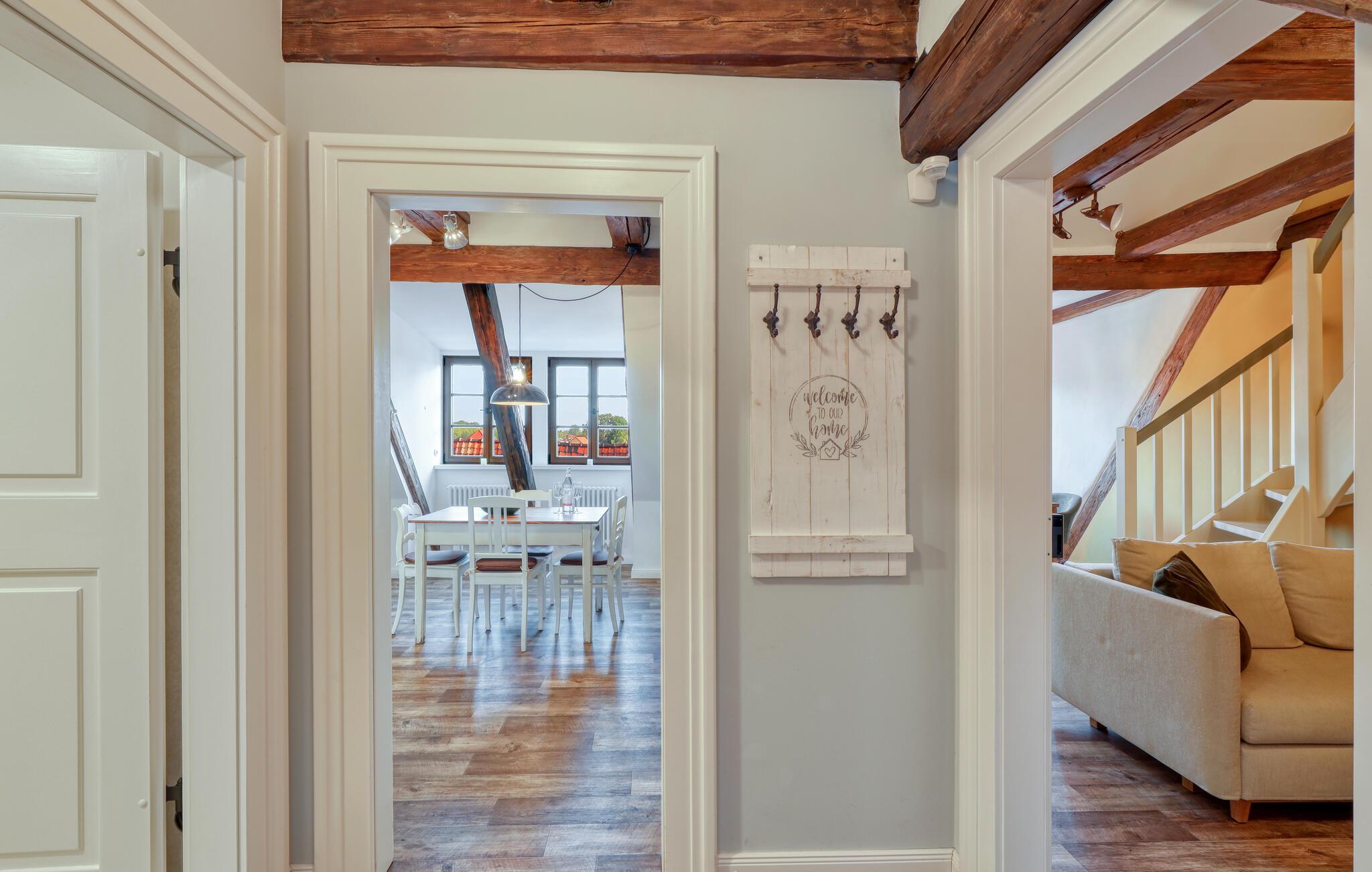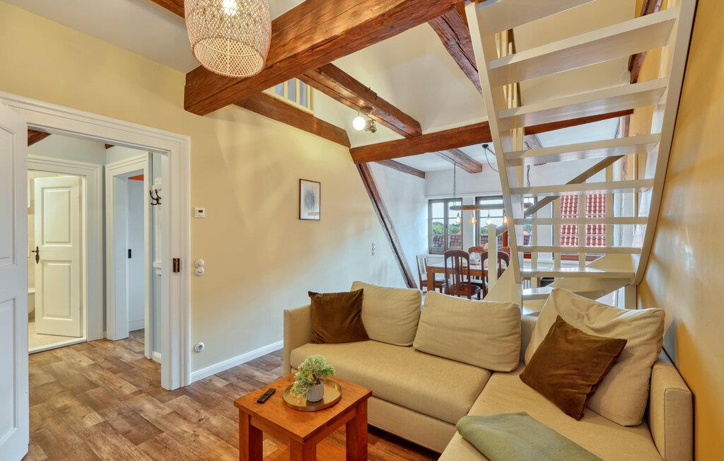 Velkommen til denne skønne lejlighed, som byder sine gæster velkommen med lyse, stilfuldt indrettede værelser i en historisk bygning, hvis lange historie ikke mindst viser sig i de dekorative træbjælker. Føl jer godt tilpas her med dine kære og nyd komforten og den smagfulde atmosfære. Slap af i saunaen, som deles med andre gæster, og hold jer i form selv på ferien med fitnessudstyret. Nyd din første kaffe og et par solstråler på terrassen, inden I begiver jer ud i dine aktiviteter.