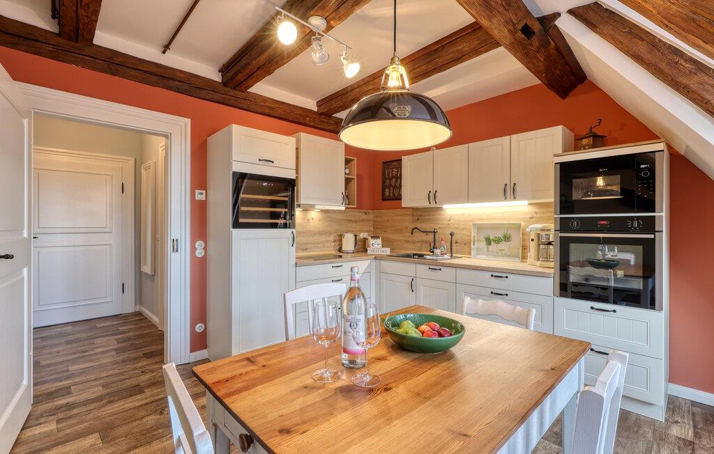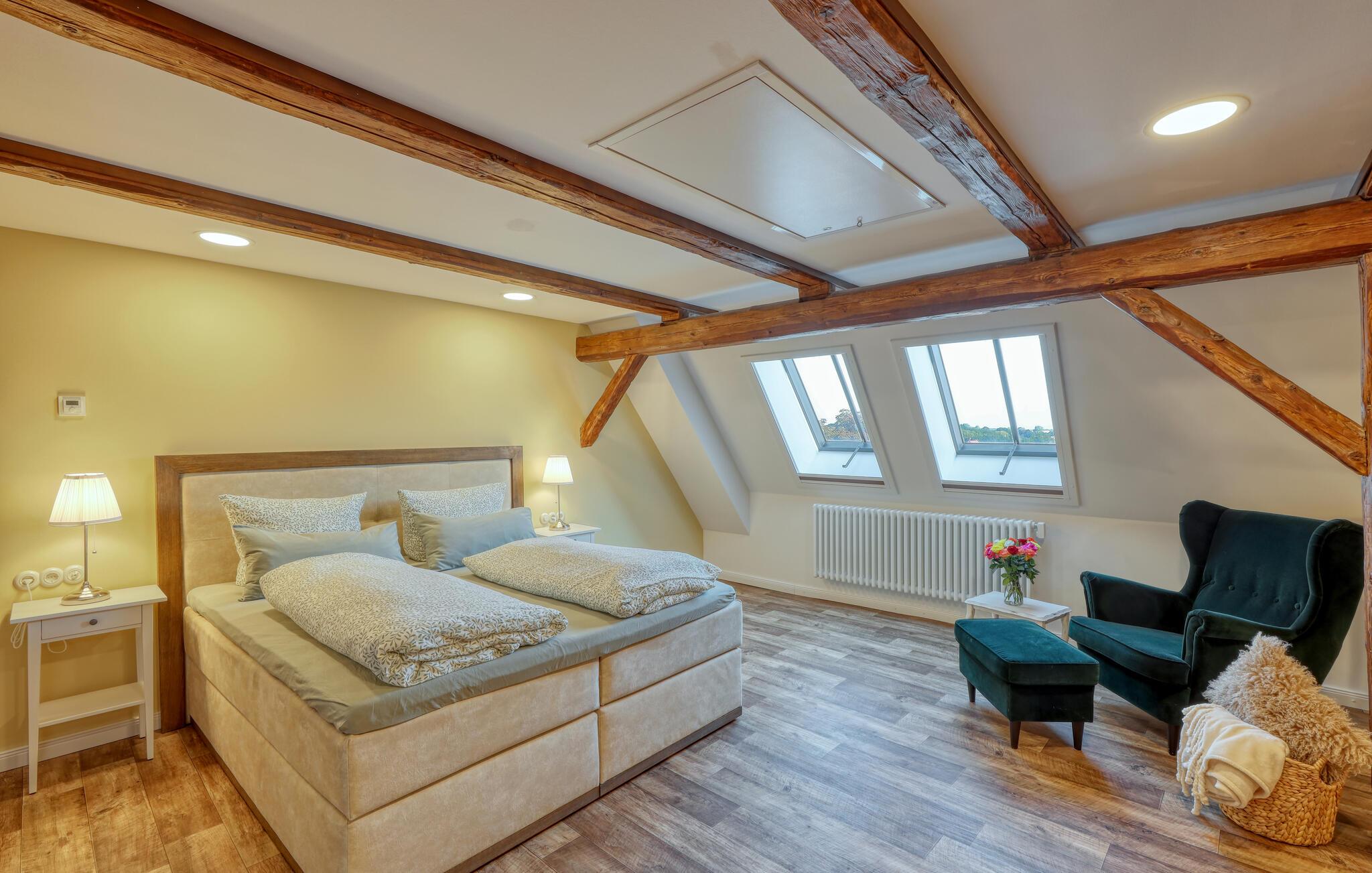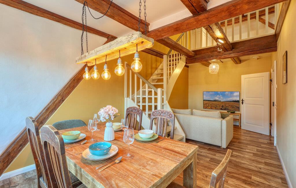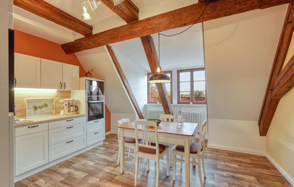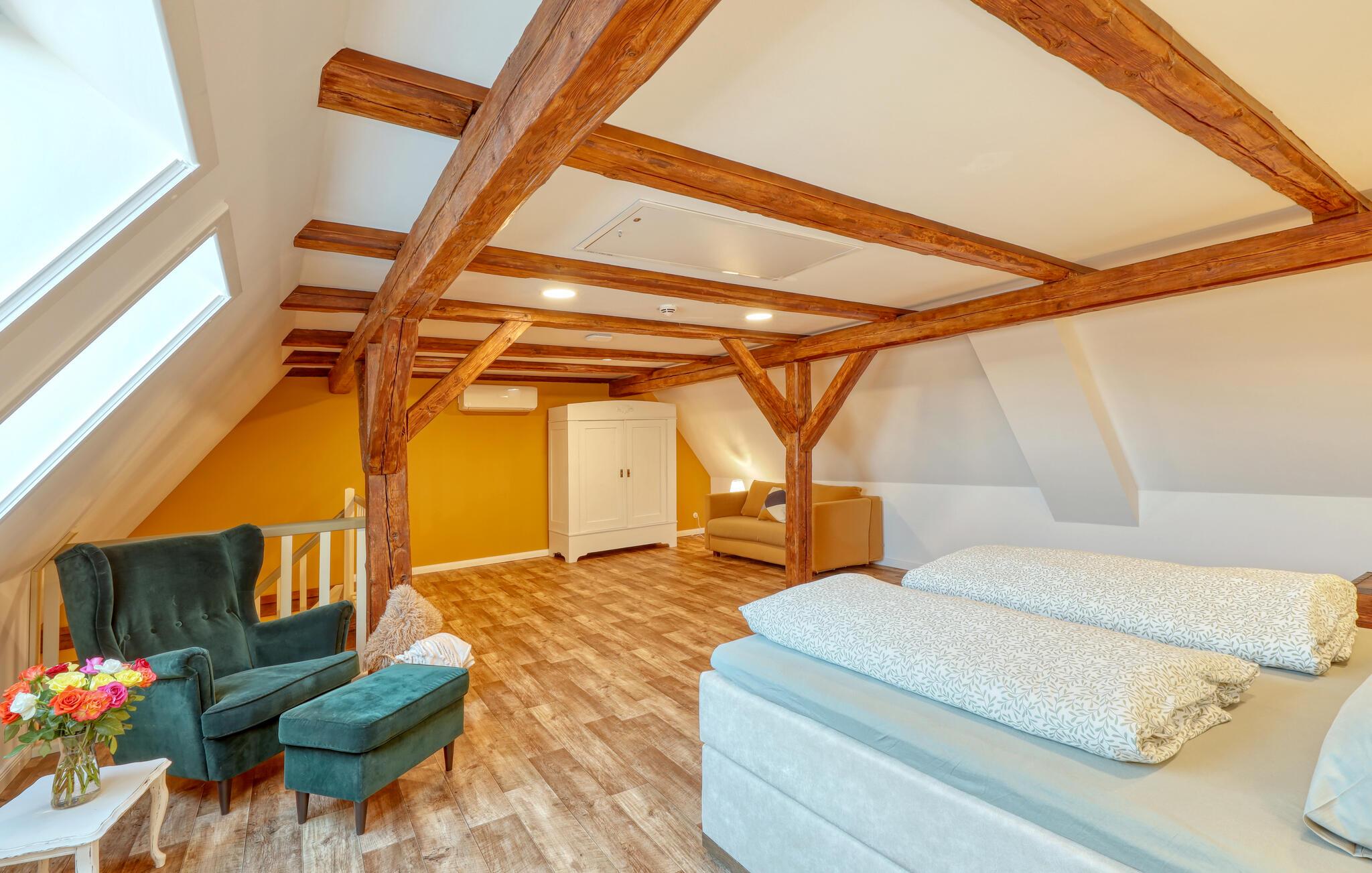 Velkommen til denne skønne lejlighed, som byder sine gæster velkommen med lyse, stilfuldt indrettede værelser i en historisk bygning, hvis lange historie ikke mindst viser sig i de dekorative træbjælker. Føl jer godt tilpas her med dine kære og nyd komforten og den smagfulde atmosfære. Slap af i saunaen, som deles med andre gæster, og hold jer i form selv på ferien med fitnessudstyret. Nyd din første kaffe og et par solstråler på terrassen, inden I begiver jer ud i dine aktiviteter.