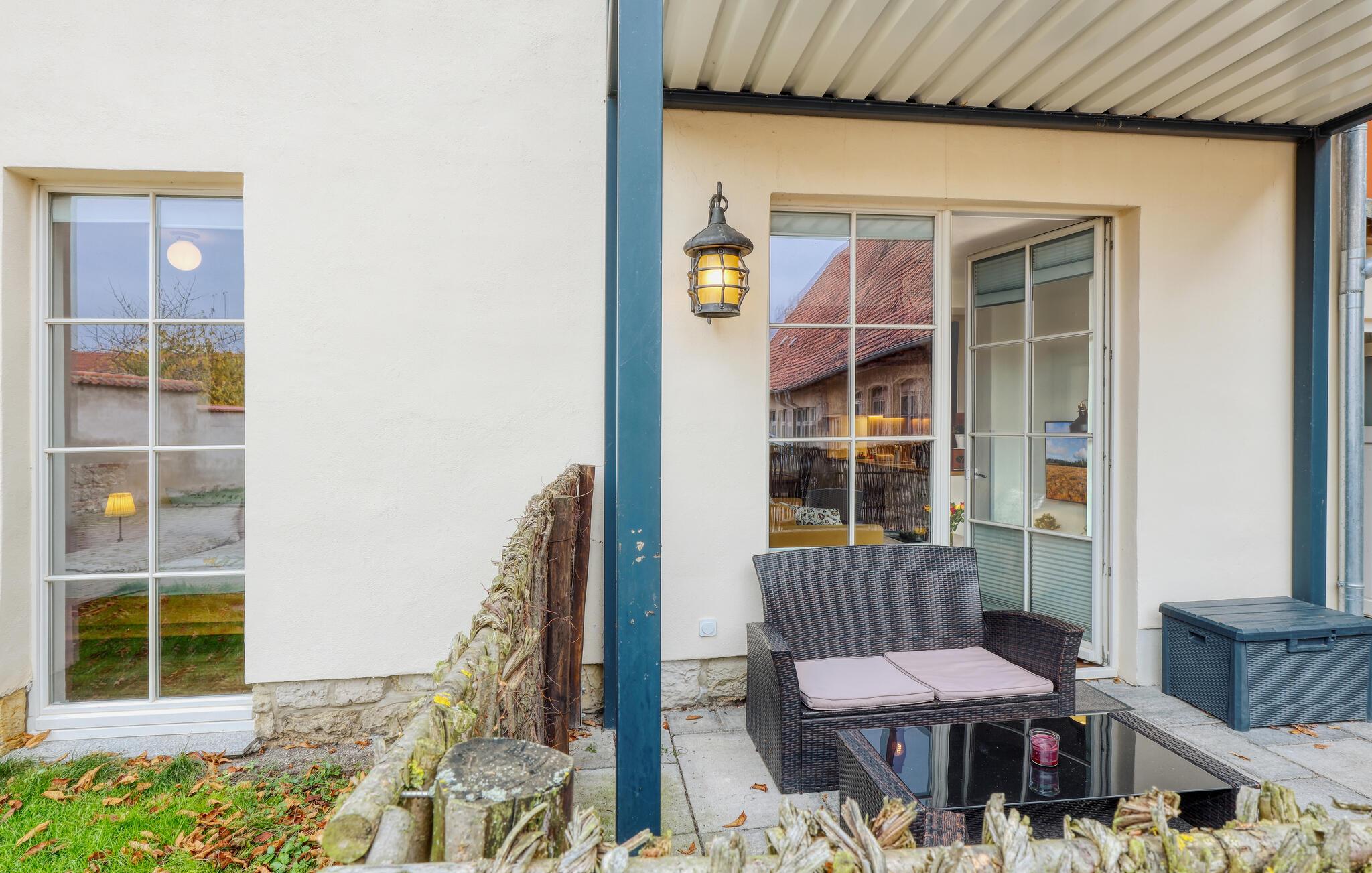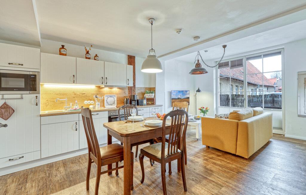 Denne hyggelige bolig kombinerer traditionel bindingsværksstil med moderne komfort og er det ideelle udgangspunkt for jeres opdagelsesture i UNESCOs verdensarvsby. Den kærligt indrettede stue tilbyder med sine træmøbler og den indbydende sofa en vidunderlig atmosfære til afslapning. Nyd jeres måltider i den lyse spisestue, der glider problemfrit over i det moderne køkken, og begynd dagen med en hyggelig morgenmad, mens I planlægger jeres næste eventyr. På terrassen er der også plads til at slappe af takket være de smukke havemøbler.