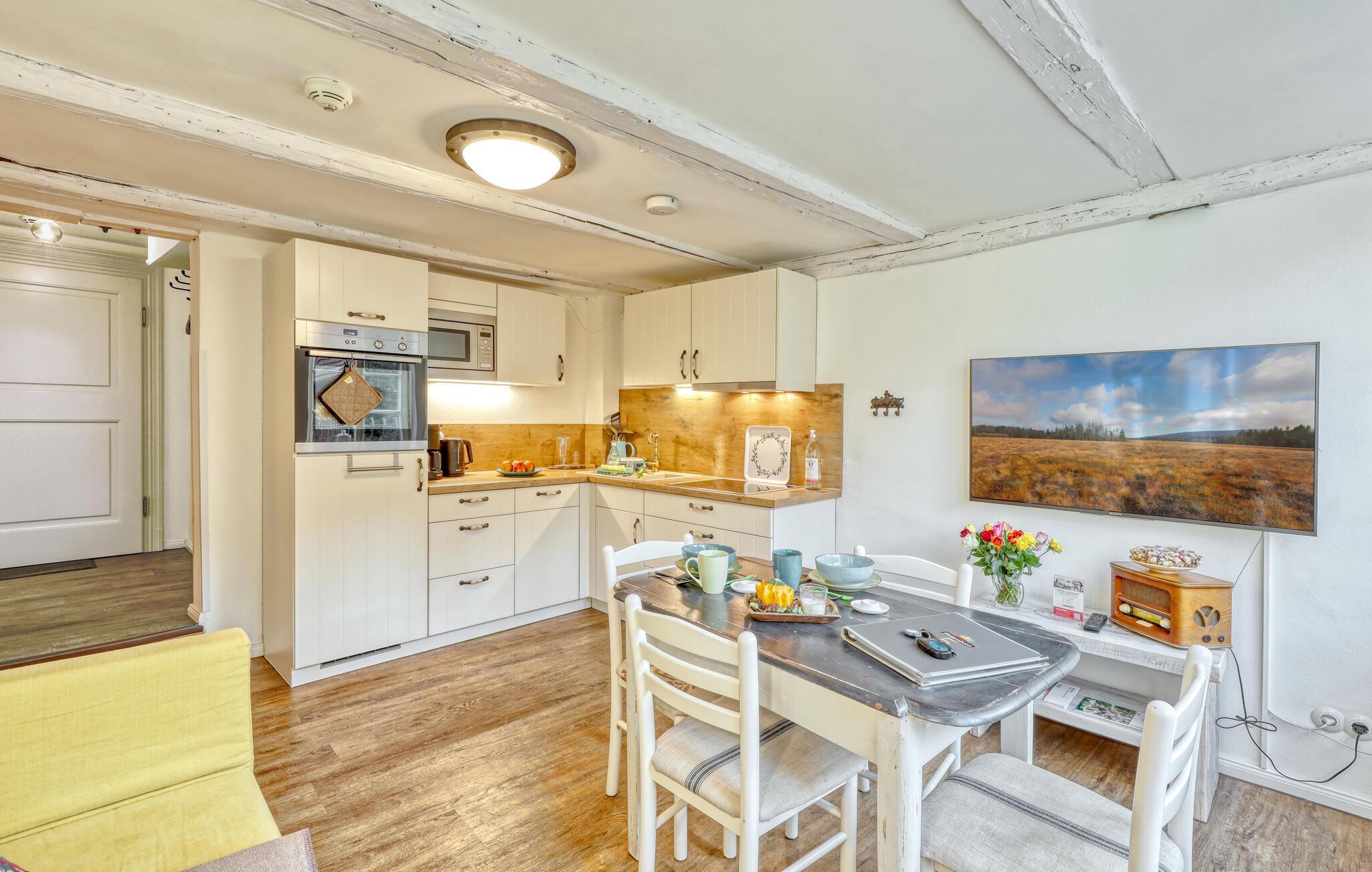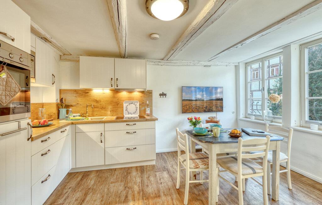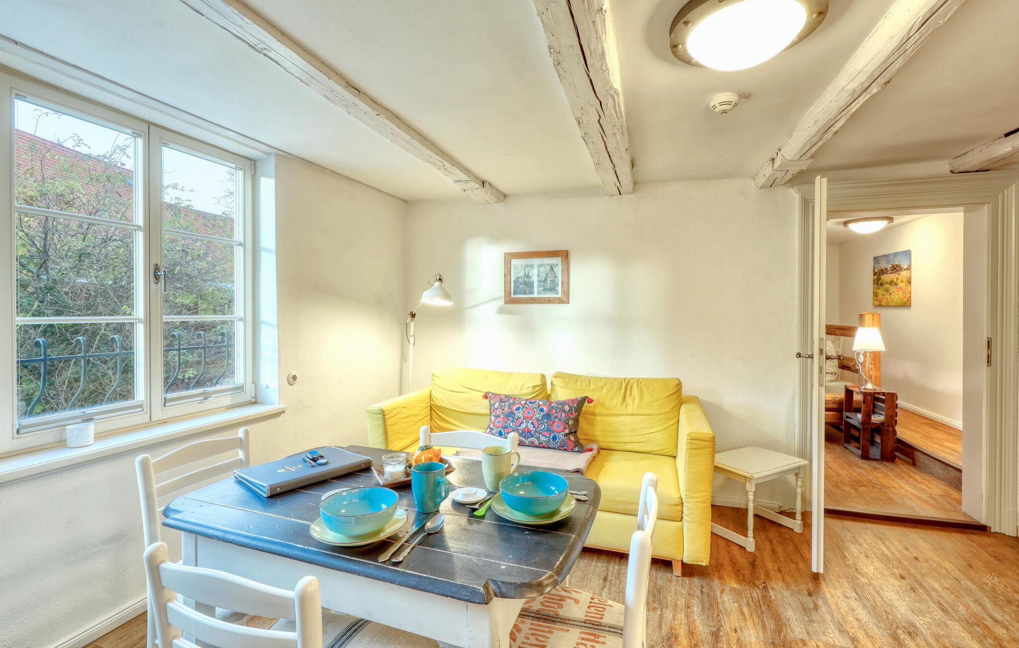 Glæd jer til en vellykket kombination af historisk flair og moderne komfort. Den hyggelige stue med sin indbydende sofa er det ideelle tilflugtssted, hvad enten det er til en afslappende aften med en god bog, en film eller blot for at slappe af efter en begivenhedsrig dag. Det åbne køkken giver jer mulighed for nemt at tilberede jeres livretter. I den lyse spisestue kan I nyde jeres måltider i en hyggelig atmosfære.