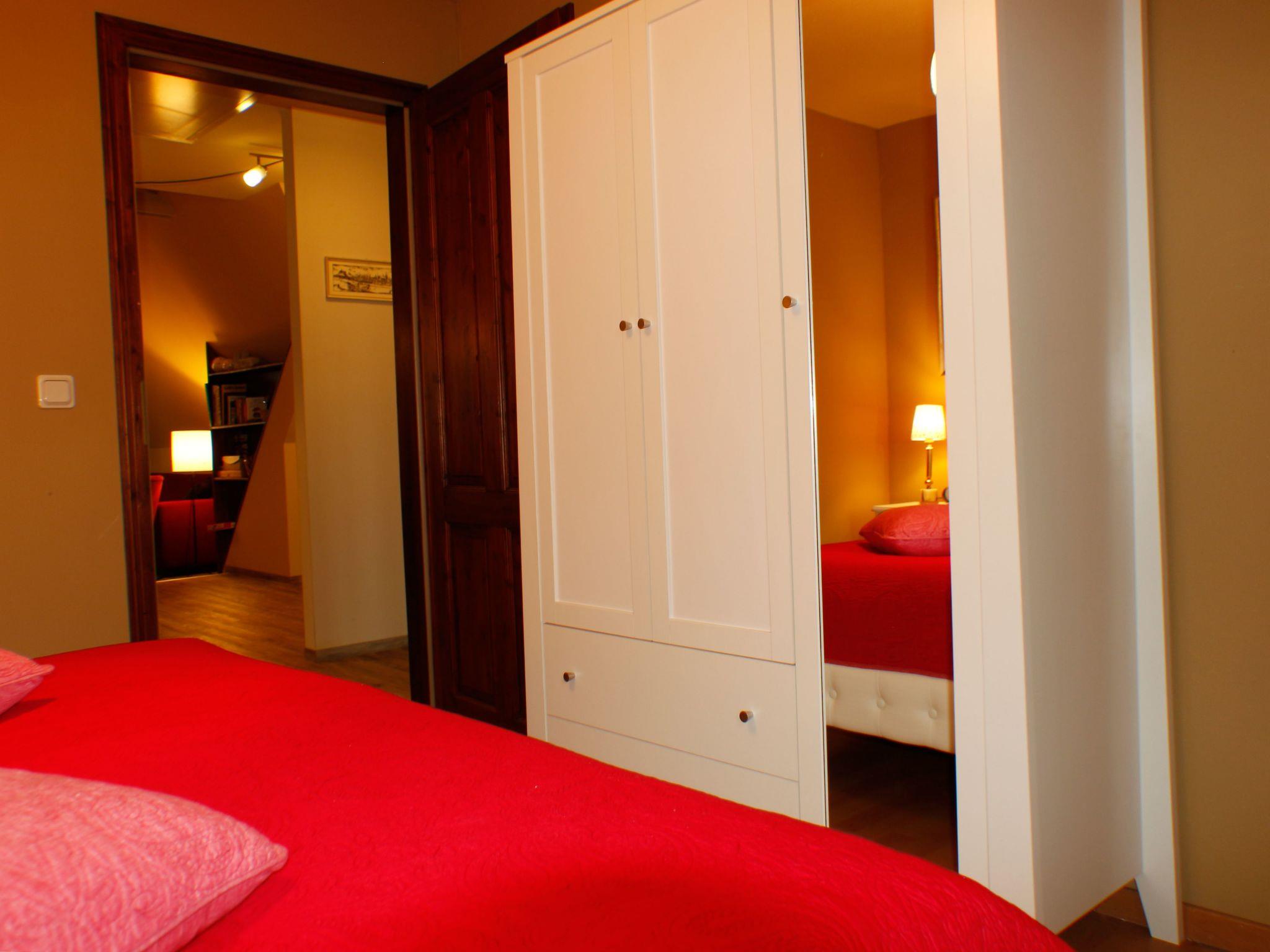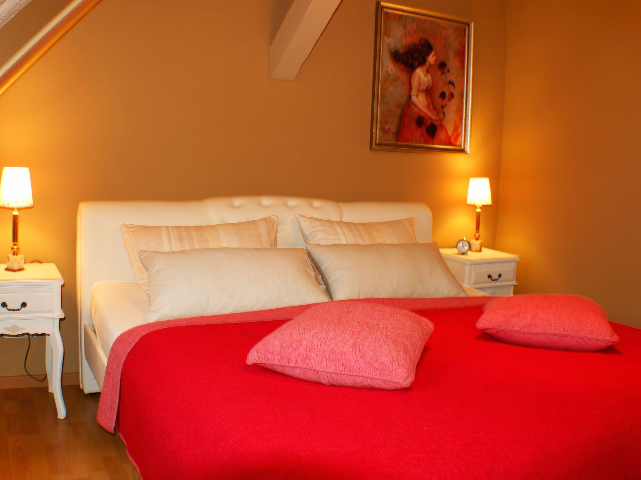 The holiday flat welcomes you into a very cosy atmosphere, characterised by the exposed beams, the sloping roof and lovingly selected furnishings. It is divided into a separate bedroom with double bed, a spacious open-plan living and dining area with pull-out sofa bed, and a spacious daylight shower room with WC. After climbing the stairs, you step through the front door into the open-plan living area and find the bedroom on your right. This is furnished with a 180 cm x 200 cm double bed with headboard and footboard and bedside tables and reading lamps on both sides. There is a wardrobe in front of the bed with plenty of storage space for your luggage. Next to the bedroom is the large shower room with a shower cubicle, under-mounted washbasin, illuminated mirror and bathroom window. The open-plan living area leads past a dining table with four chairs to the open-plan kitchenette. This has all the utensils you need for self-catering, including a four-ring hob with oven, fridge, coffee machine, kettle and toaster. You then enter the cosy living area with a comfortable pull-out sofa and an armchair. The modern flat-screen TV with satellite TV and TV-USB connection, as well as a compact music system (CD / DVD / MP3) provide entertainment after a day out. Hand and bath towels, bed linen, final cleaning and internet access via WLAN are included in the allergy-friendly flat.