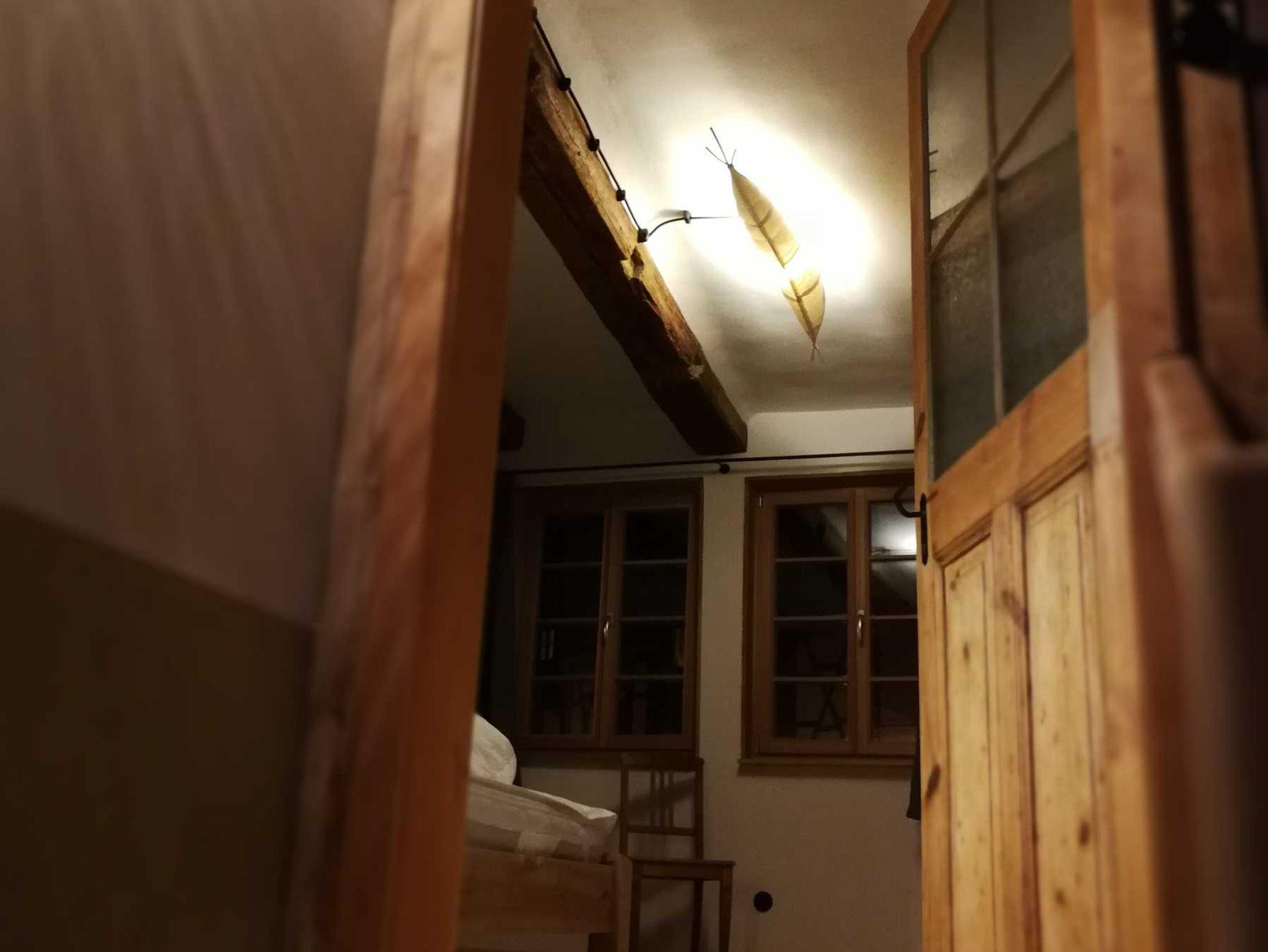 Über eine für die Bauzeit typische Leitertreppe gelangt ihr im 2. Obergeschoss in einen Zwischenflur, welcher Zugang zu den 2 separaten Schlafräumen und das Bad mit WC und Dusche gewährt.