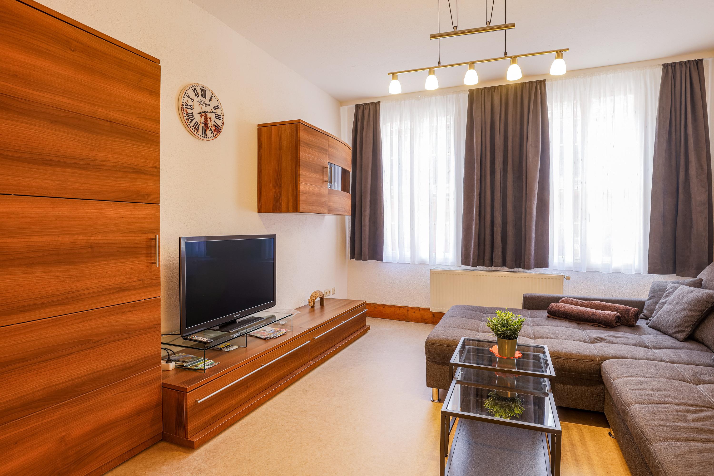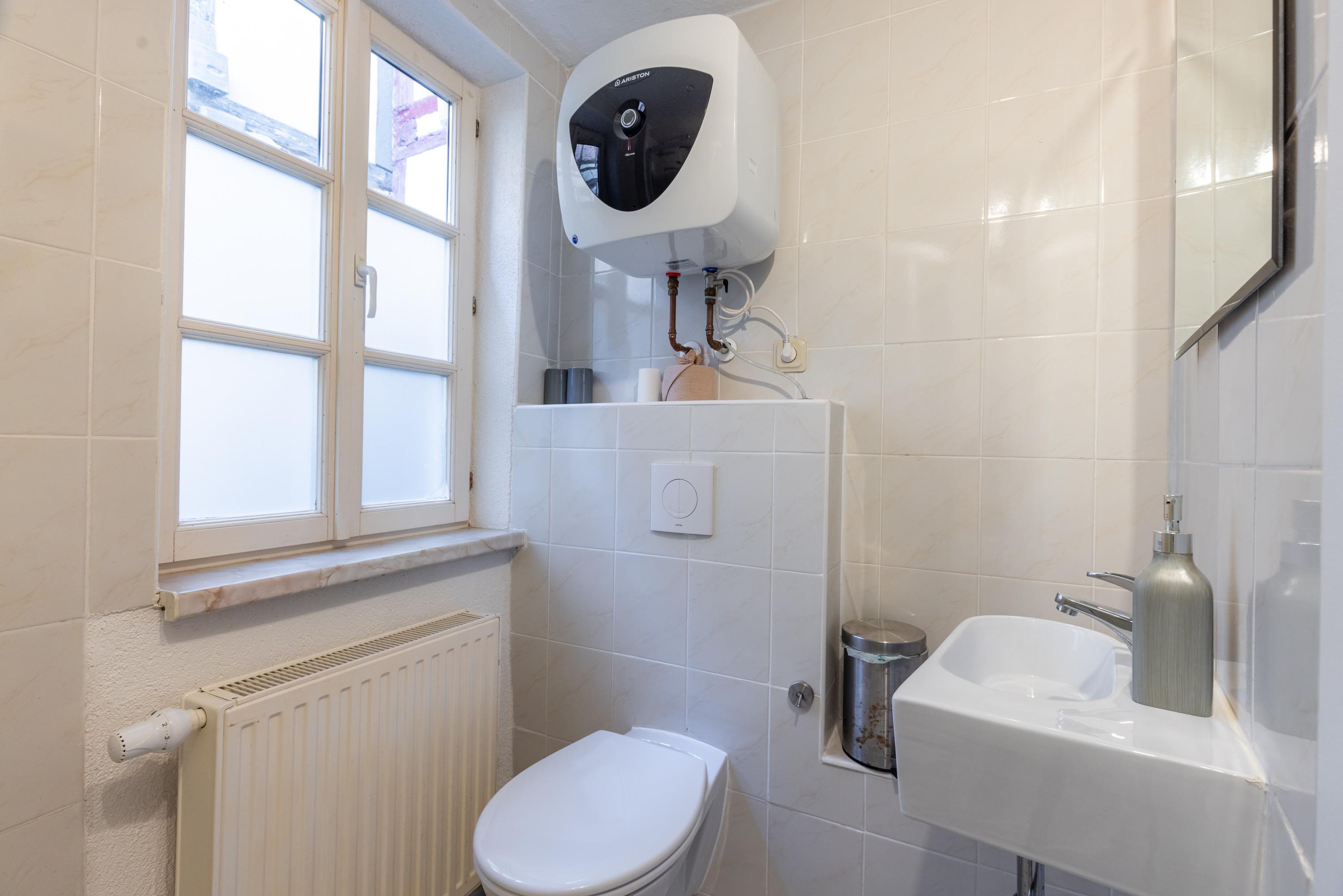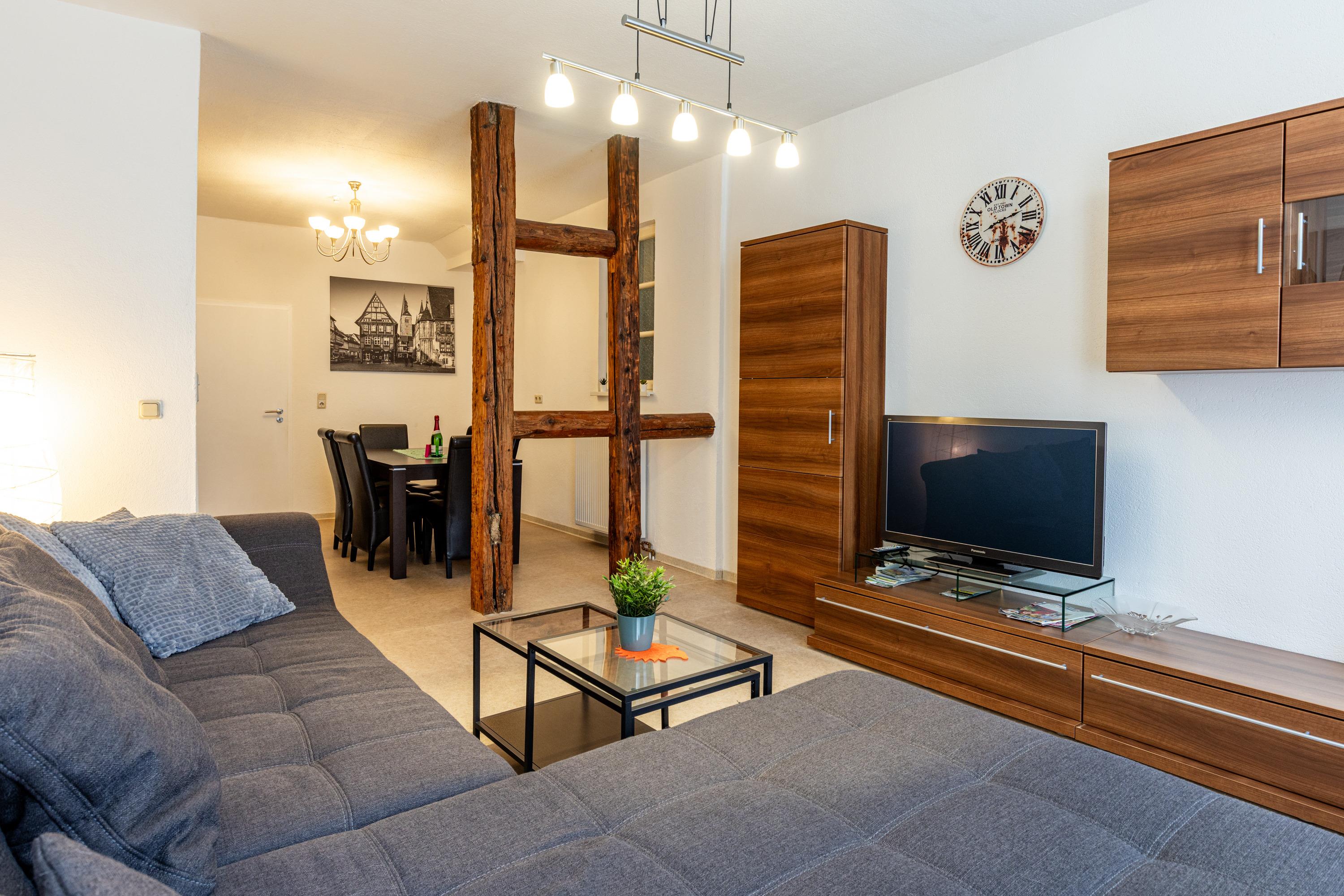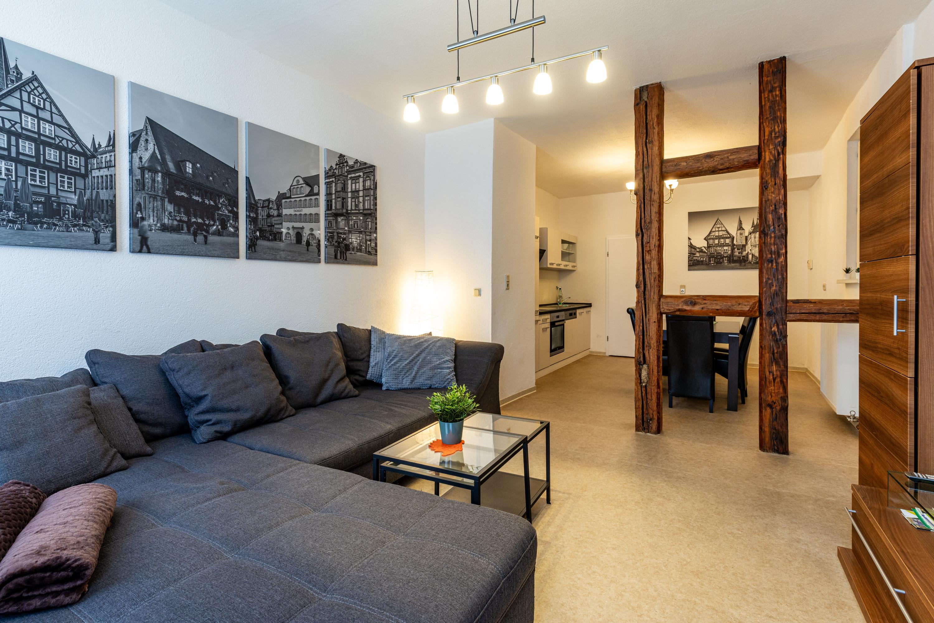 Unsere Ferienwohnung "Zum rost’gen Potte" ist zwar ein echtes Denkmal, trotzdem modern eingerichtet und wurde 2021 frisch renoviert. Im Schlafzimmer entspannen Sie auf einem breiten Boxspringbett - Ihr Gepäck verstauen Sie bequem im separaten Kleiderschrank. Das 2. Schlafzimmer verfügt über 2 Einzelbetten im Himmelbett-Stil. Im Wohnzimmer wartet eine moderne ausziehbare Wohnlandschaft auf Sie - genießen Sie Ihren Abend bei einem guten Glas Wein und einem Buch oder machen Sie sich einen gemütlichen Fernsehabend vor unserem Flachbild-TV! Die Wohnlandschaft kann bei Bedarf auch in eine dritte Schlafmöglichkeit verwandelt werden. Zusätzlich gibt es im Wohnzimmer einen separaten Eßbereich. Die modern eingerichtete Küche verfügt über einen Herd mit Ceranfeld, Backofen, Spülmaschine, Kühlschrank mit Tiefkühlfach, Wasserkocher, Kaffeemaschine und Toaster. Im Bad finden Sie Dusche, Badewanne, Waschbecken, Waschmaschine und WC. Die Ferienwohnung verfügt über kostenloses W-Lan. Fahrräder können in der Hofdurchfahrt sicher und überdacht abgestellt werden.