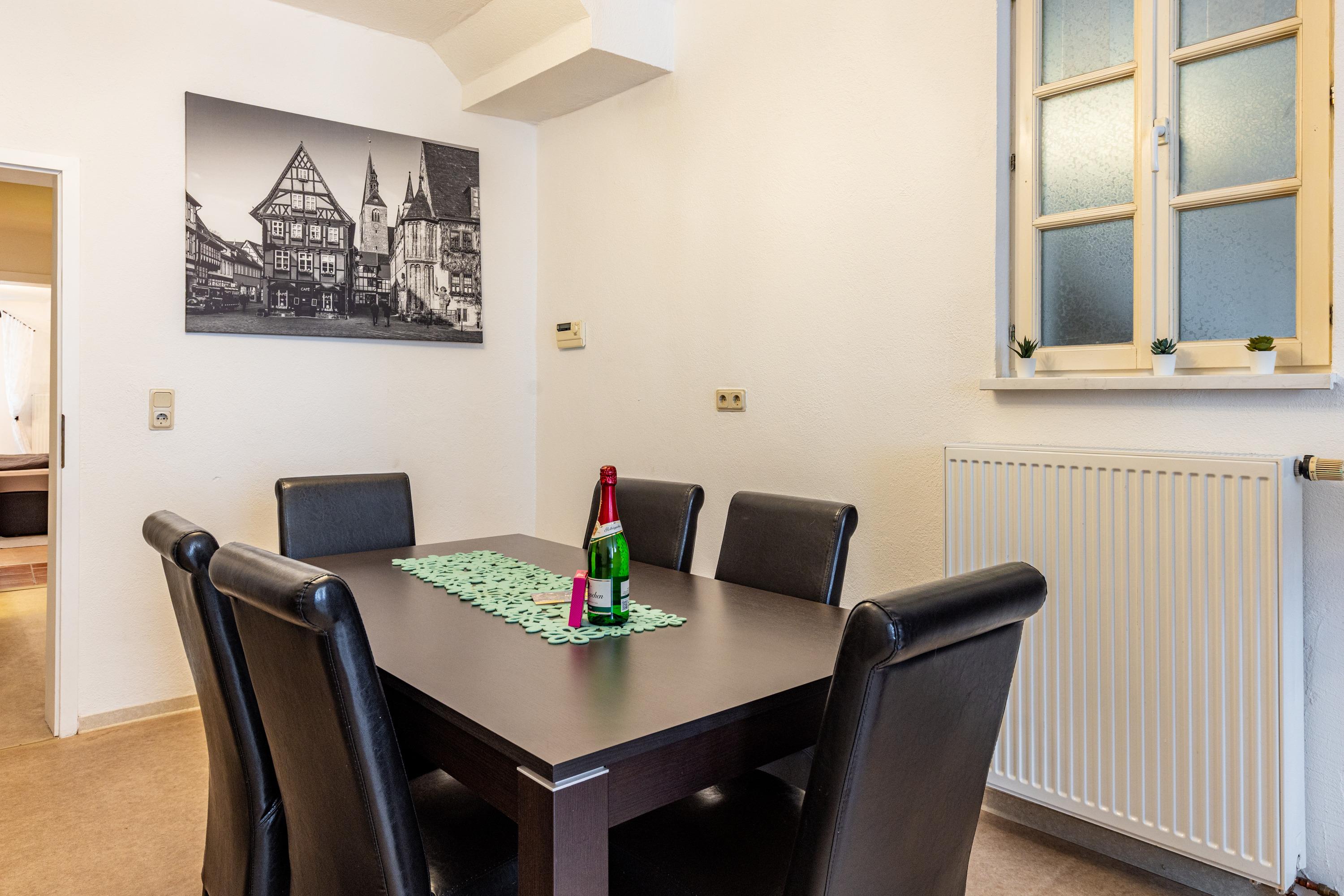 Die Welterbestadt Quedlinburg ist ein Must-See in jedem Harzurlaub. Viele Sehenswürdigkeiten in der Stadt und der Umgebung machen die Tage viel zu kurz, um alles gesehen zu haben. Doch auch Ausflüge in die Region lassen sich von hier aus toll realisieren: Direkt an der A36 gelegen erreichen Sie die Stadtzentren von Wernigerode in ca. 20 Minuten, nach Blankenburg, Thale oder zur Teufelsmauer in ca. 10 Minuten, Aschersleben ist 20 und Goslar ca. 40 Minuten entfernt. Selbstverständlich sind Sie von hier aus schnell im Harz - die Rappbodetalsperre, Harzdrenalin oder Hasselfelde erreichen Sie in weniger als einer halben Stunde. Tip: Von unserer Ferienwohnung erreichen Sie zu Fuß nahezu alle historischen Sehenswürdigkeiten in Quedlinburg innerhalb von 5 Gehminuten! Und nach einem anstrengenden Tag können Sie den Abend in einem guten Restaurant oder einer belebten Kneipe ausklingen lassen und danach quasi direkt in Bett purzeln...