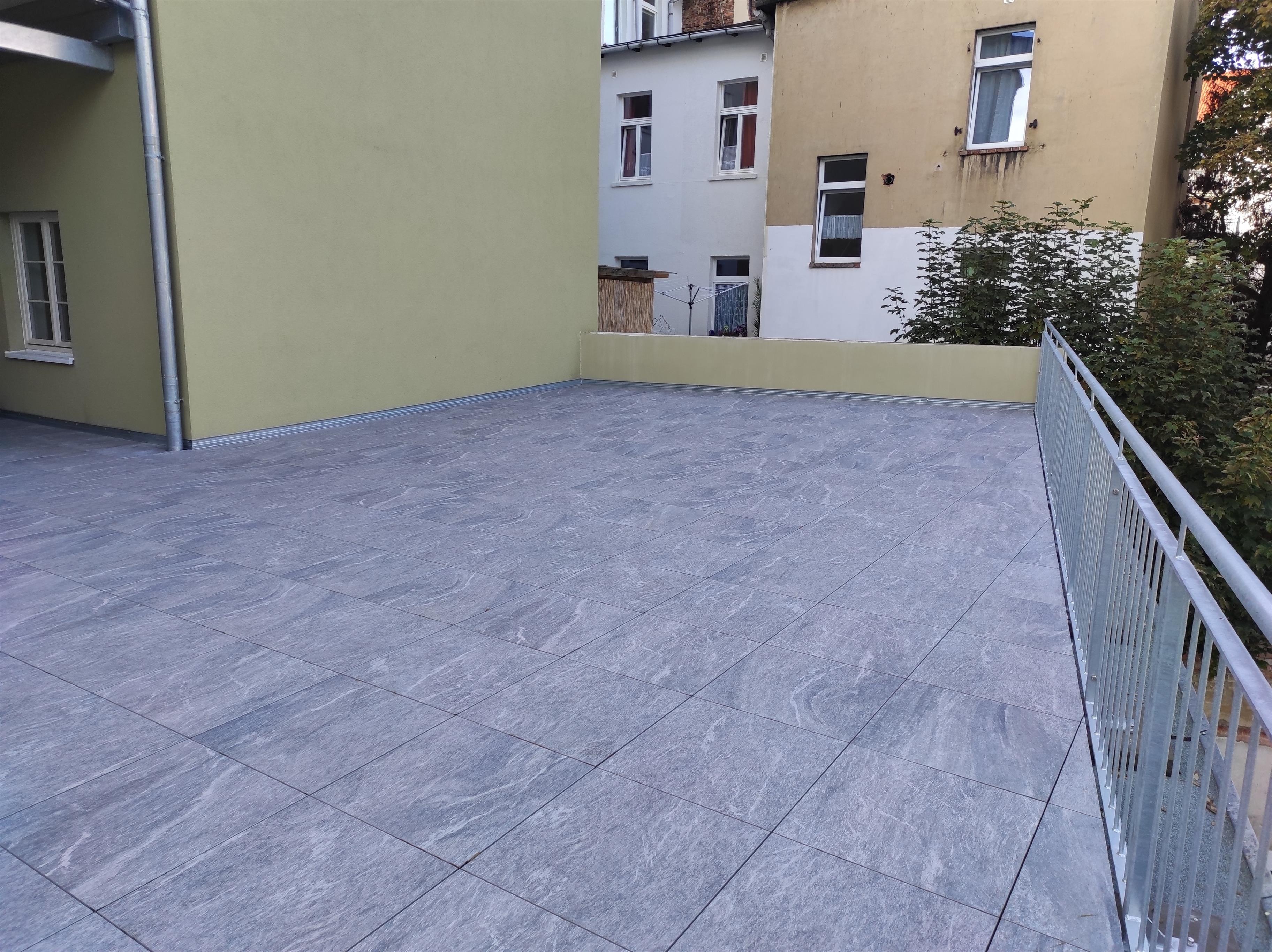 Für die Ferienwohnung steht eine 27 m² große Gemeinschaftsterrassen zur Verfügung. Alternativ kann die 130 m² große Hauptterrasse als Ausweichmöglichkeit genutzt werden.