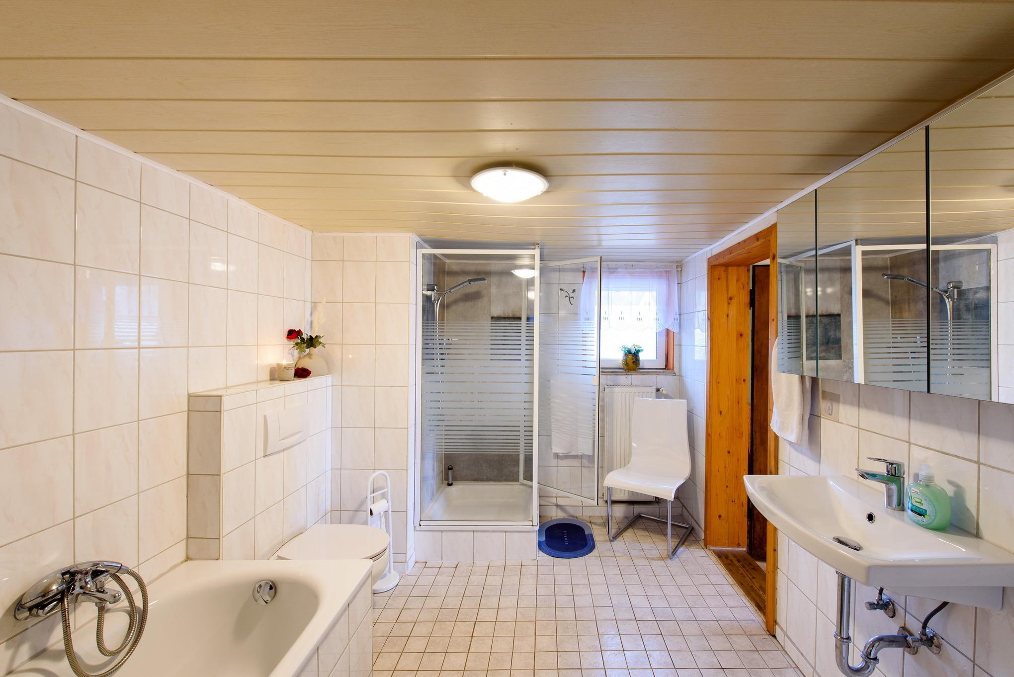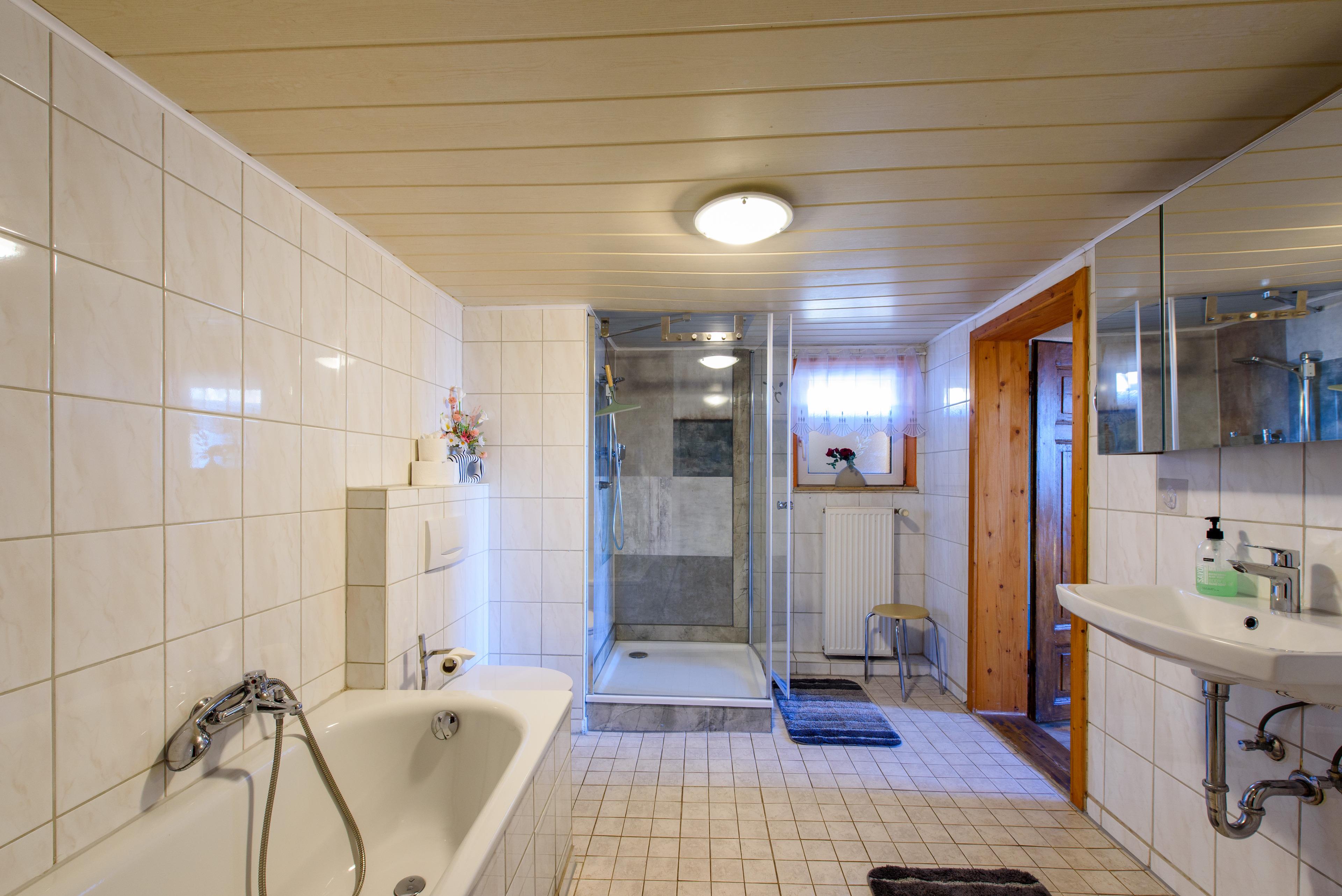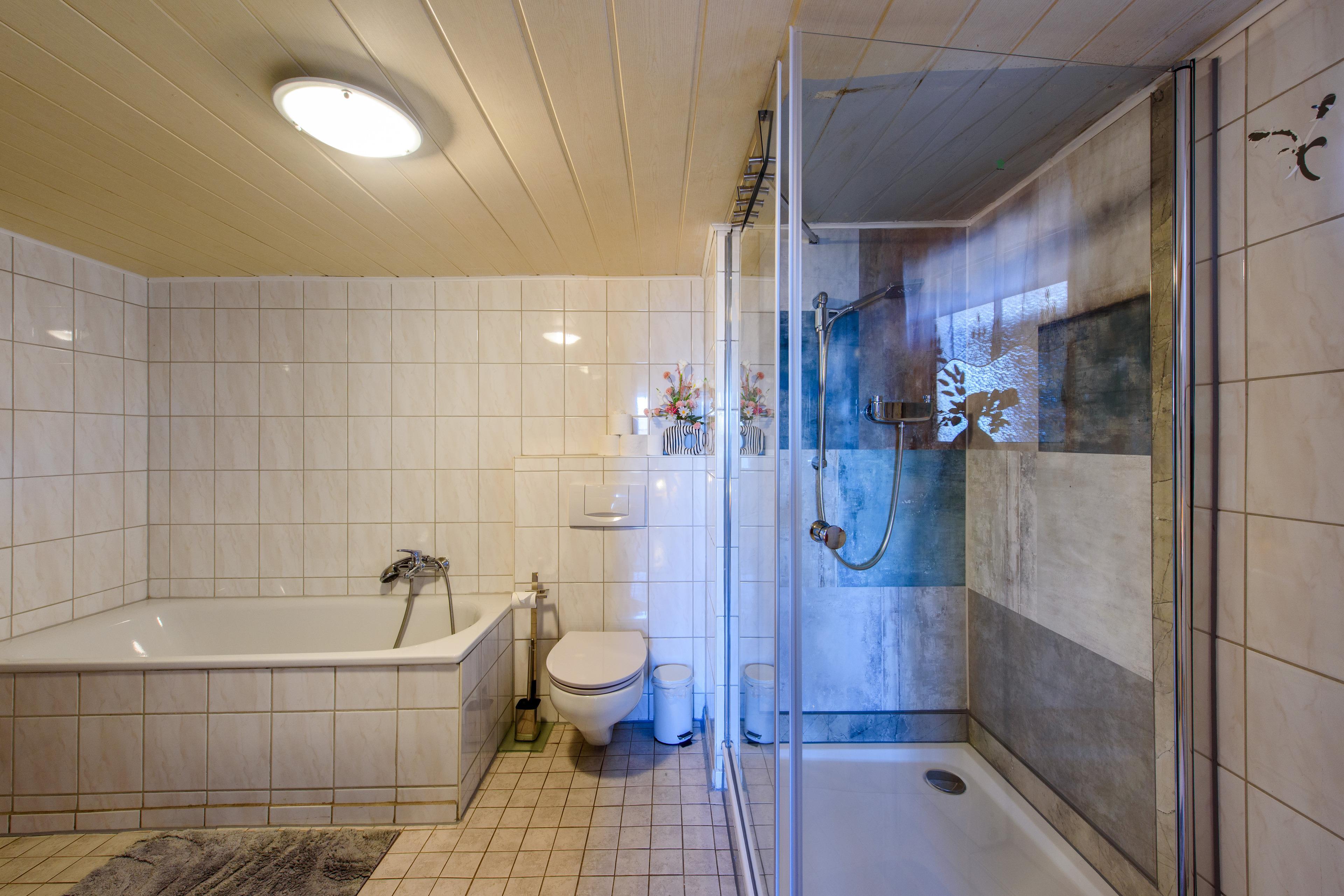 Badeværelse med bruser og badekar