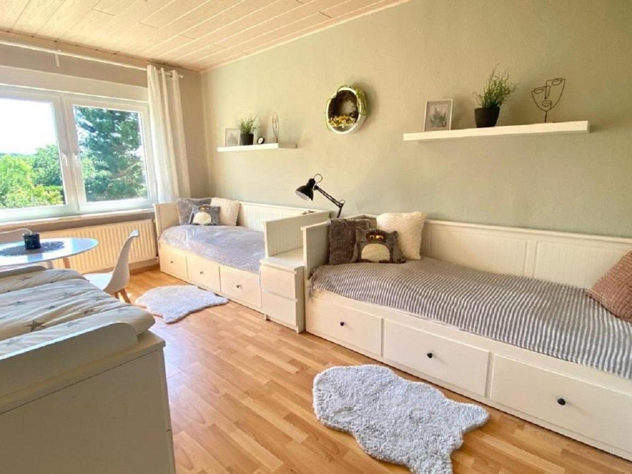 Im Obergeschoss finden Sie ein großzügiges Badezimmer mit Badewanne und Dusche sowie ein komfortables Schlafzimmer mit Doppelbett. Zwei weitere Zimmer bieten flexible Schlafmöglichkeiten für Kinder oder Jugendliche. Kostenloses WLAN, Parkplatz, Grillplatz und Gartennutzung stehen zur Verfügung.