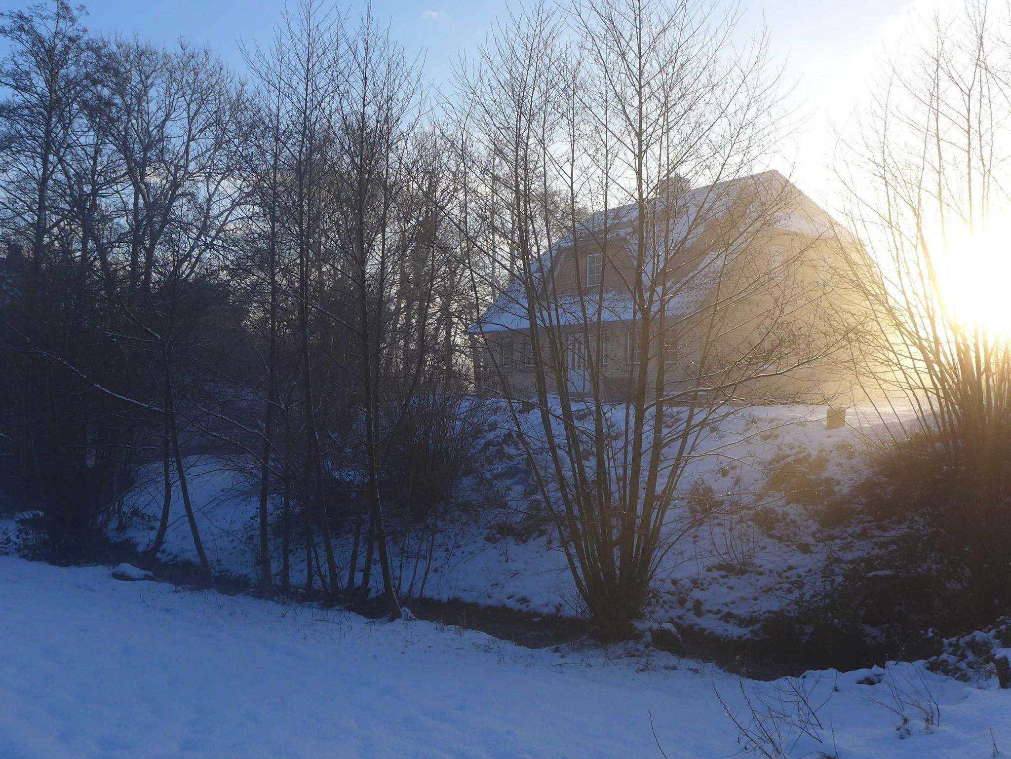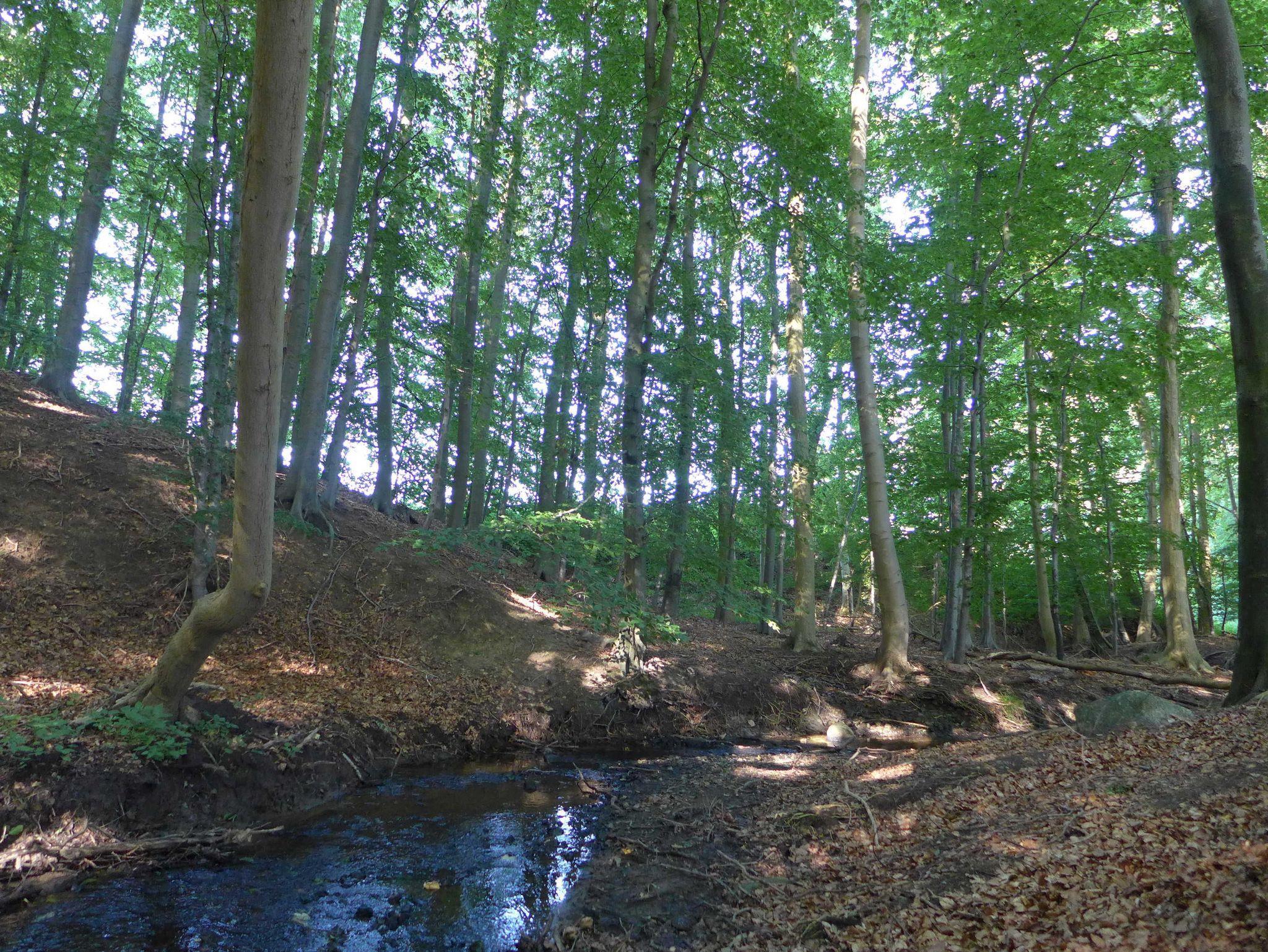 Sie finden bei uns absolute Ruhe und Entspannung. Das fast 4000 m² große Grundstück bietet viele lauschige Ecken, in denen man sitzen, liegen oder auch grillen kann. In der großen Feuerschale lässt sich auch sehr gut ein kleines Lagerfeuer machen. Besonders idyllisch ist der Bachlauf, der vom Wald auf der einen Seite, durch das Urstromtal zur Schlei fließt. Kinder können sich auf dem großen Grundstück, mit der hier nicht eingezäunten Au, nach Herzenslust bewegen. Der weitere Bachverlauf führt duch das mit Rindern beweidete Tal zur Schlei. Über einen romantischen knickgesäumten Weg erreichen Sie nach 450 m unser privates Schleigrundstück.