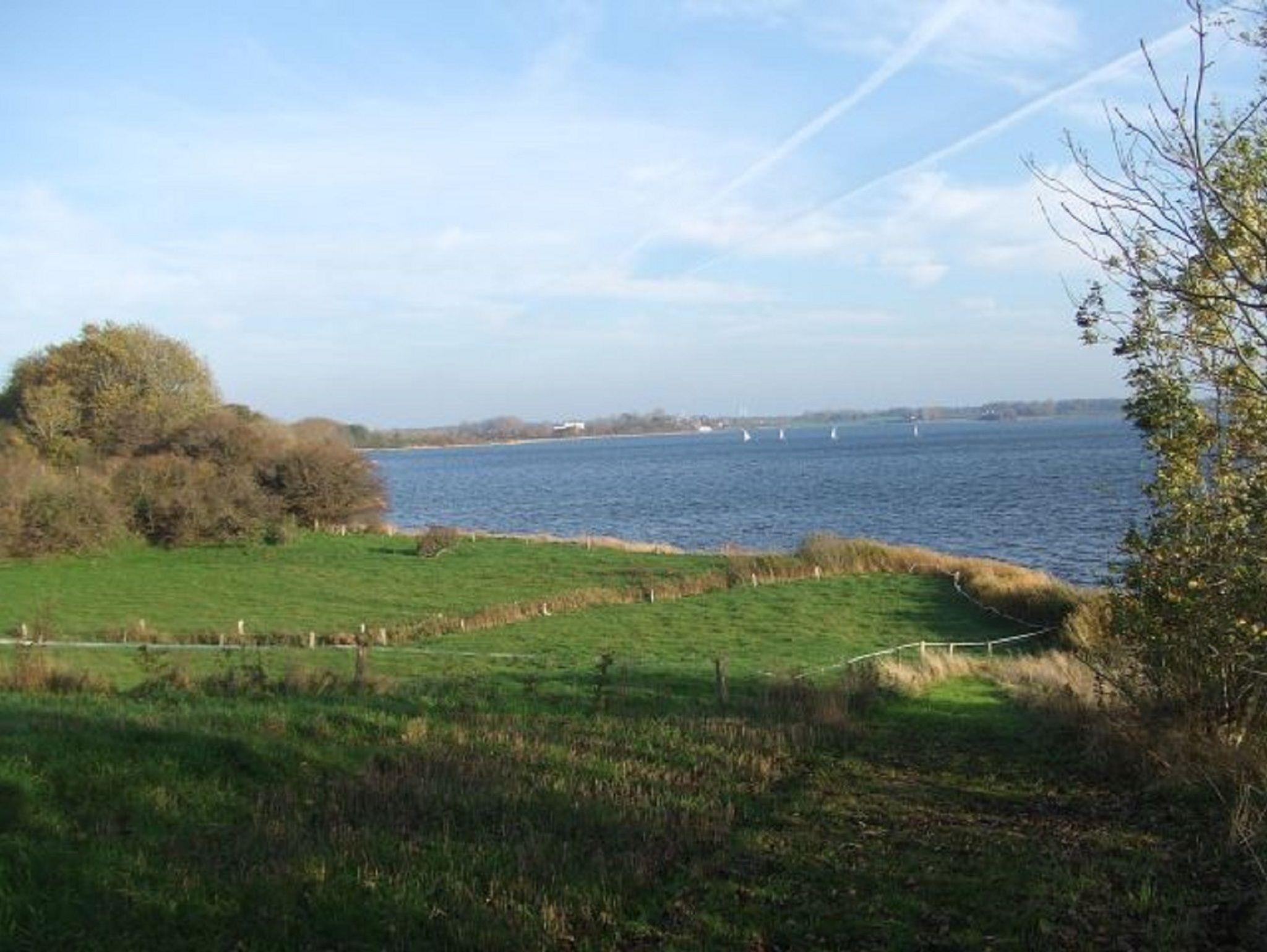 Sie finden bei uns absolute Ruhe und Entspannung. Das fast 4000 m² große Grundstück bietet viele lauschige Ecken, in denen man sitzen, liegen oder auch grillen kann. In der großen Feuerschale lässt sich auch sehr gut ein kleines Lagerfeuer machen. Besonders idyllisch ist der Bachlauf, der vom Wald auf der einen Seite, durch das Urstromtal zur Schlei fließt. Kinder können sich auf dem großen Grundstück, mit der hier nicht eingezäunten Au, nach Herzenslust bewegen. Der weitere Bachverlauf führt duch das mit Rindern beweidete Tal zur Schlei. Über einen romantischen knickgesäumten Weg erreichen Sie nach 450 m unser privates Schleigrundstück.