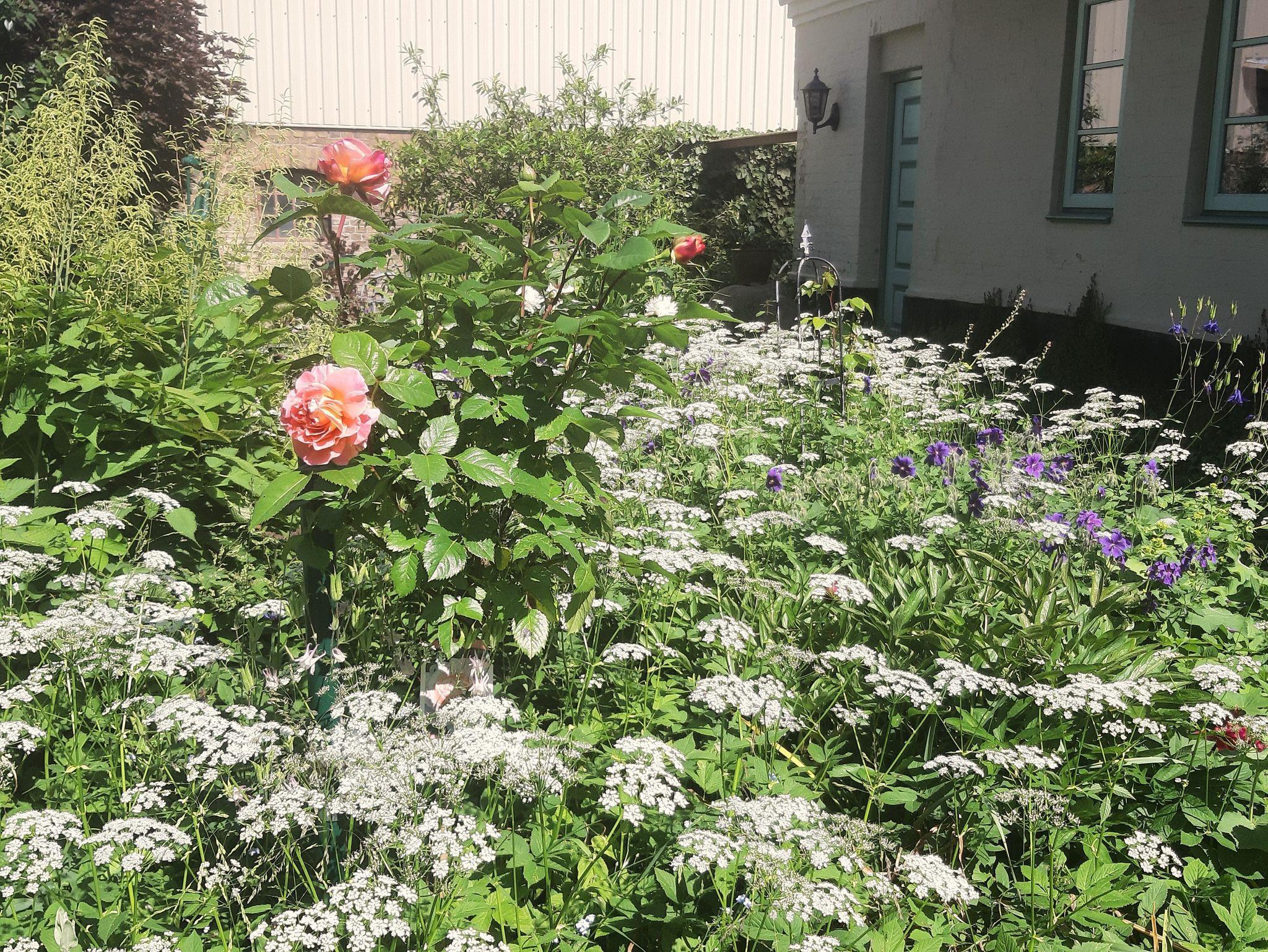 Ein überdachter Sitzplatz mit Gartenmöbeln und Grill ist bei jedem Wetter ein angenehmer Aufenthaltsort und bietet auch die Möglichkeit, Fahrräder unterzustellen. Der angrenzende Garten mit viel Rasenflächen lädt ebenfalls zum Spieln und Aufenhalt ein.