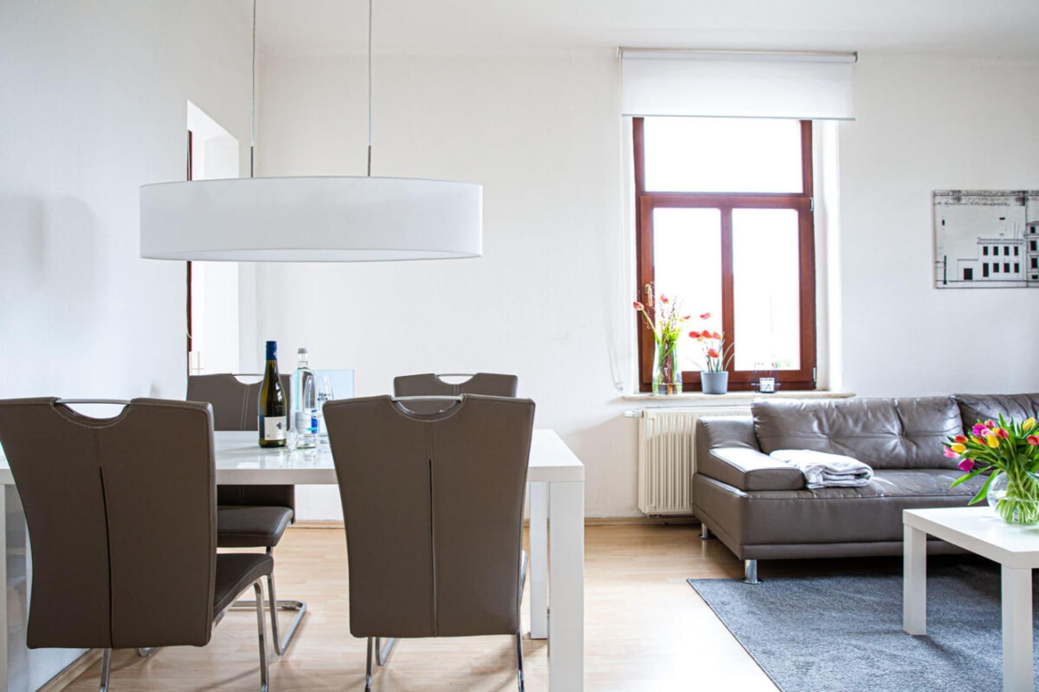 Unser denkmalgeschütztes Haus liegt am Fuße der Radebeuler Weinberge. Die vom DTV mit vier Sternen bewertete Ferienwohnung mit Balkon befindet sich in der 1. Etage unseres Hauses. Die Ferienwohnung ist 66 m² groß und bietet für drei Personen viel Platz. Es kann eine zusätzliche Aufbettung auf dem Schlafsofa im Wohnzimmer erfolgen. (auf Anfrage) In der Wohnung finden Sie ein Badezimmer, zwei getrennte aber mit einer Tür verbundene Schlafzimmer, Diele, Wohnraum und Küche. Diese ist ausgestattet mit Ceranherd, Geschirrspüler, Dunstabzugshaube, Wasserkocher und Kaffeemaschine. hier aus haben Sie einen direkten Blick auf die Steillagen der Weinberge. (Es ist möglich eine Aufbettung auf dem Schlafsofa im Wohnzimmer einzurichten.) Im Haus besteht die Möglichkeit Fahrräder unterzustellen.