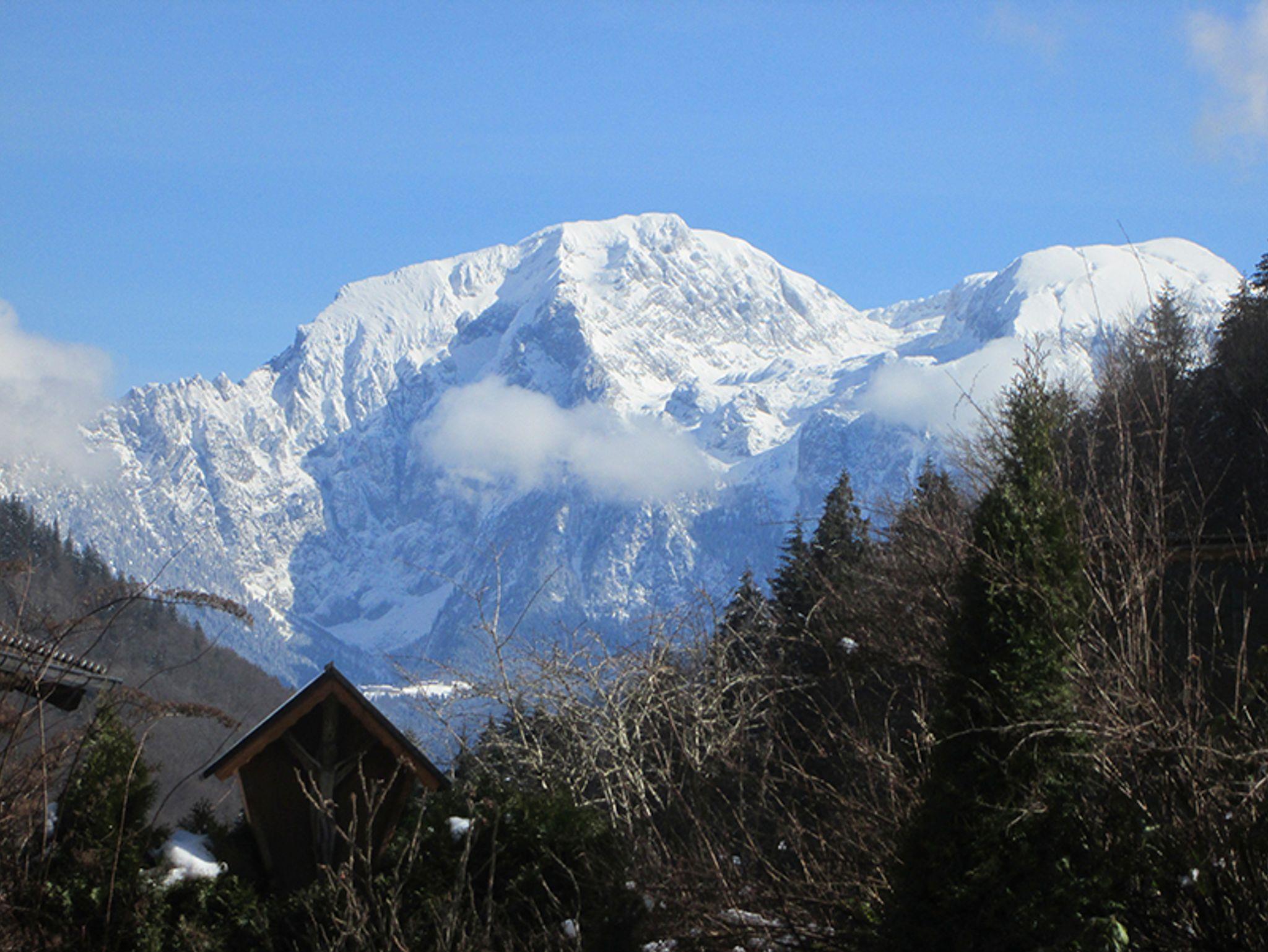 Ruhige Ferienwohnung mit Blick ins Tal auf die Ramsauer Kirche und die Bergwelt. Langer Balkon, komfortable Ausstattung. Park ähnlicher Garten mit Liegen, uneinsehbar und idyllisch. Mediterrane Stilelemente. Parkplatz. Freies W-LAN.