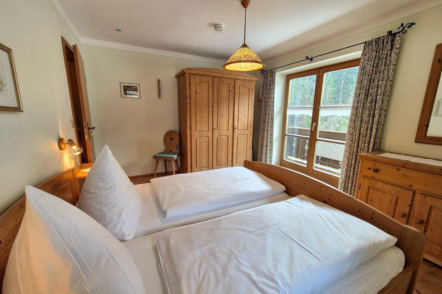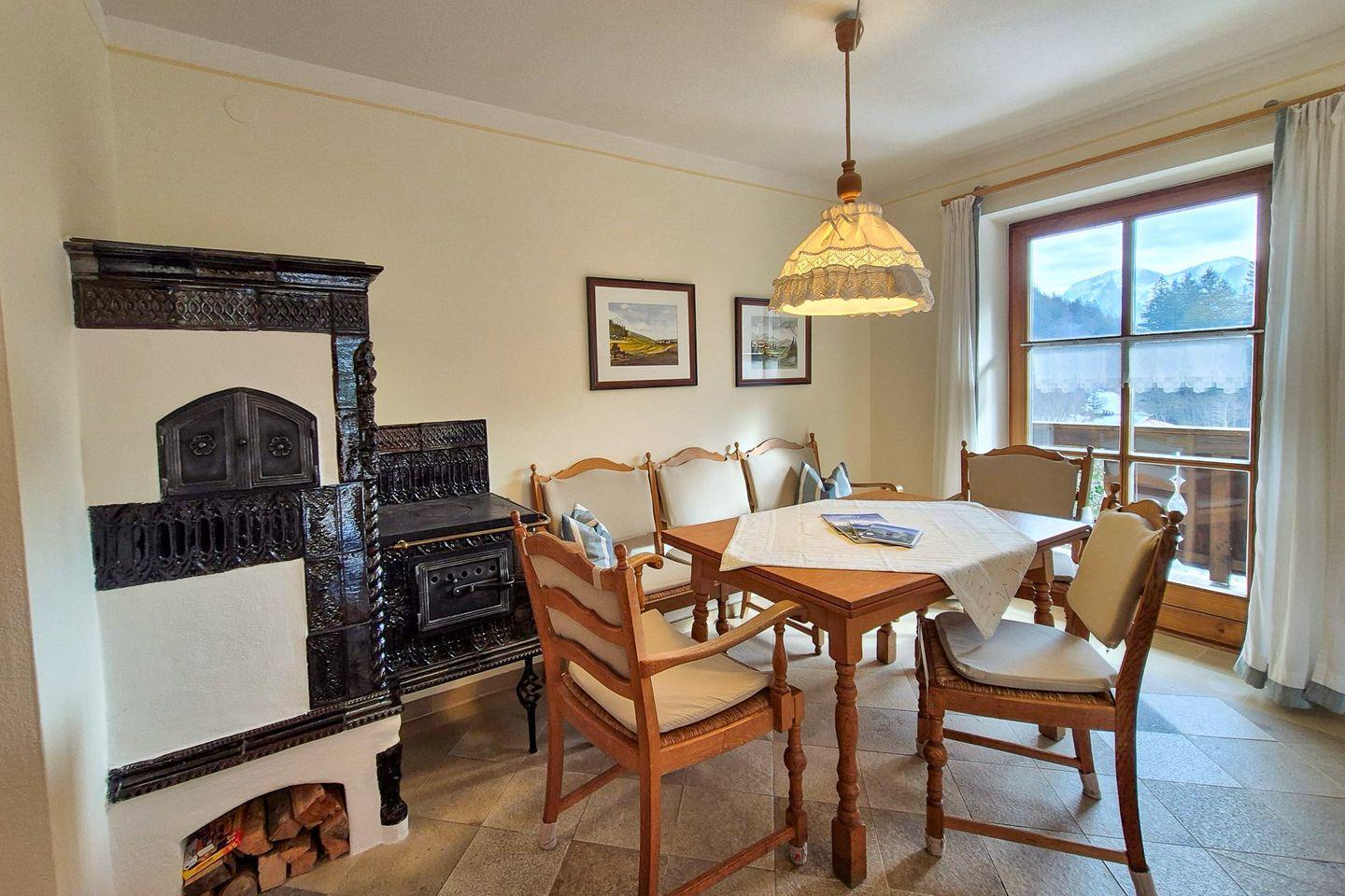 Die Ferienwohnung mit rustikaler, typisch bayerischen Einrichtung ist perfekt, um Ruhe und die Schönheit der Alpen zu genießen.