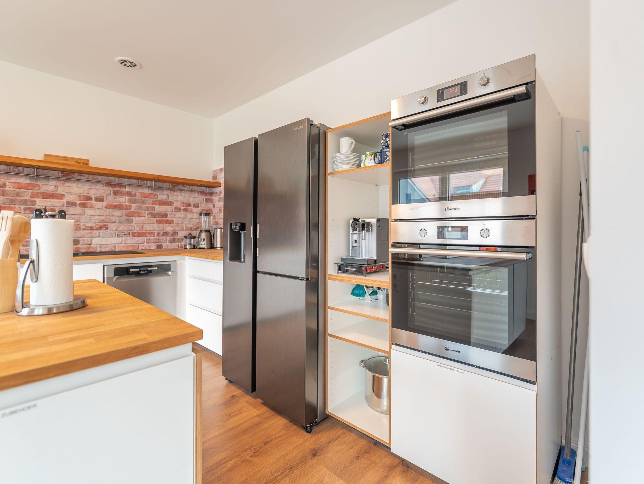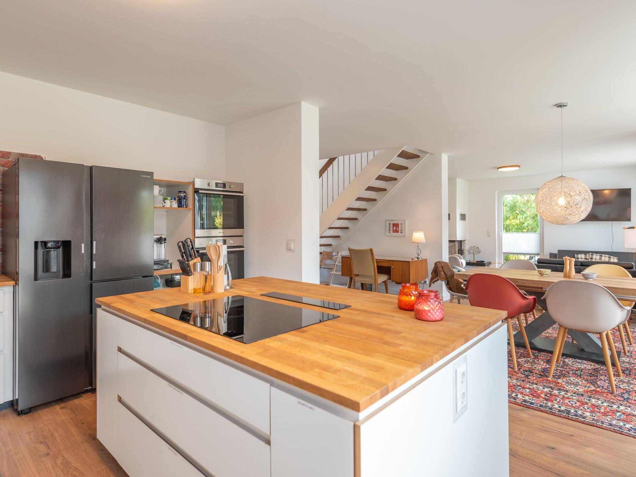 Die angrenzende offene Küche ist ein echtes Highlight: Ein großzügiger Küchenblock mit integriertem Herd, ein geräumiger Side-by-side Kühlschrank mit Trinkwasser, Crushed und Cubed Ice sowie moderne Küchengeräte bieten beste Voraussetzungen für kulinarische Momente im Kreise Ihrer Liebsten. Am großen Esstisch finden alle bequem Platz ? ob beim ausgedehnten Frühstück oder beim gemütlichen Abendessen.