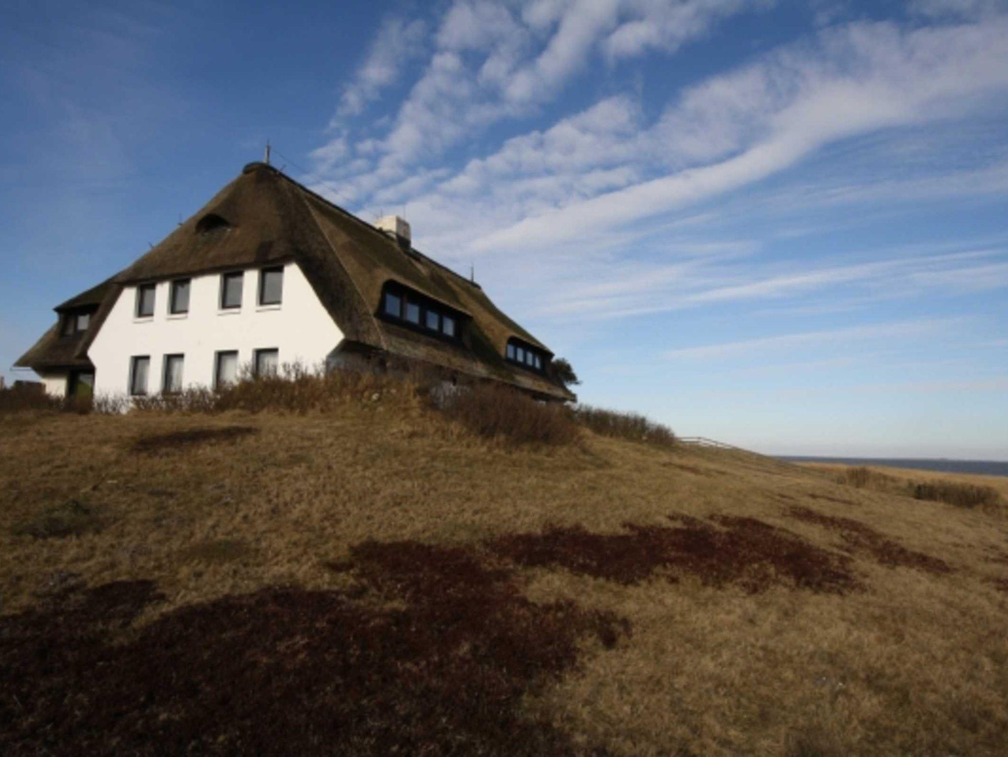 Dieses reetgedeckte Haus liegt am Ende einer Sackgasse direkt am Wattenmeer in Rantum auf Sylt. Sie schauen von der Wohnung aus über ein weitgehend naturbelassenes Grundstück auf das Wattenmeer.