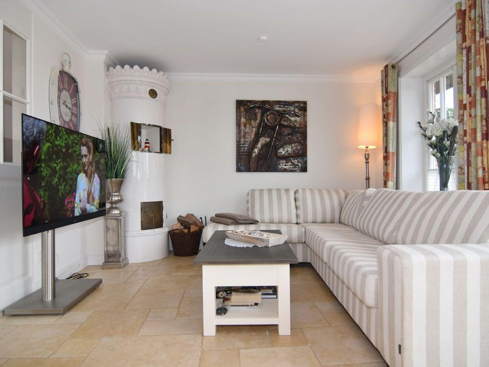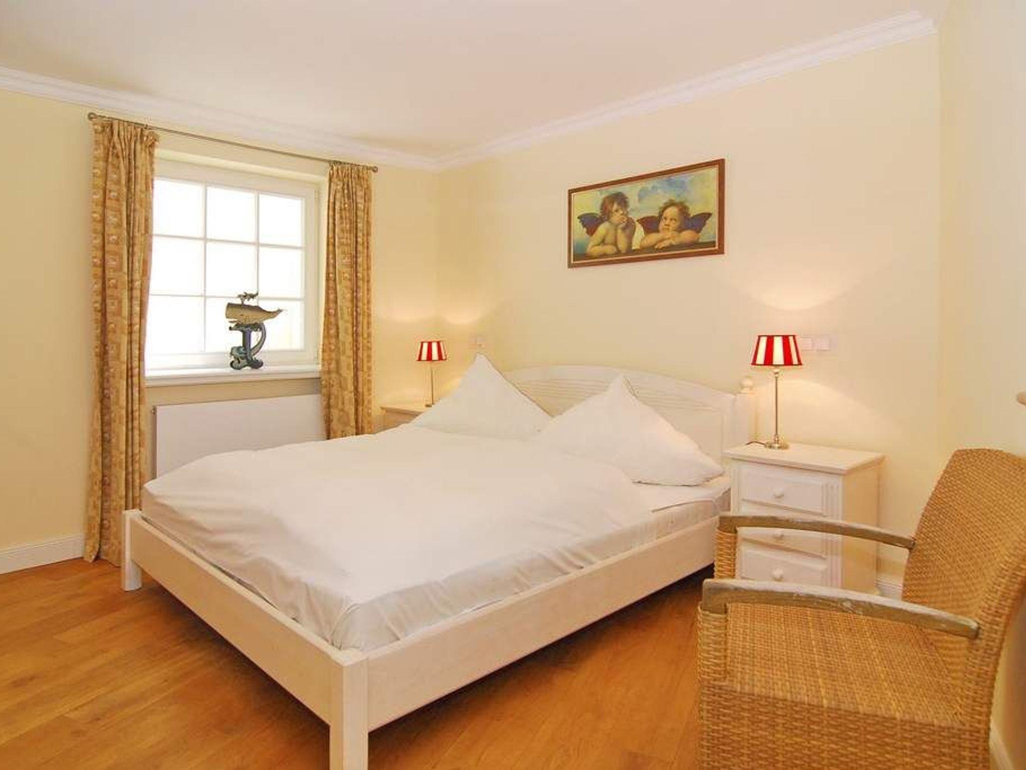 Schön gelegene Haushälfte unter Reet. Herrliche Lage auf dem Dünenkamm mit Wattblick. Ca. 52 Stufen bis zum Eingang. Ca. 155 m². EG: Wohnzimmer mit Kachelofen, Flachbild-TV, Radio, offene Küche mit Geschirrspüler, Mikrowelle und Induktionsherd, umlaufende Terrasse mit Strandkorb und Gartenmöbeln, Flur mit Garderobe, Gäste-WC OG: Schlafzimmer mit Hästens-Doppelbett (2x2m Matratze ), TV, Einbauschränke und Wattblick. Bad mit Wanne und Dusche, separates WC DG: 2 Einzelbetten (1 unter der Schräge), Flachbild-TV, begehbarer Kleiderschrank. UG: 1 Schlafzimmer mit Doppelbett und Schrank, Sauna (f. 3-4 Personen) mit Duschbad/WC. Hauswirtschaftsraum mit Waschmaschine und Trockner, Bügelbrett. Kinderhochstuhl und -reisebett im Haus. Pkw-Stellplatz vorhanden. Tierhaltung ist verboten. Bettwäsche und Handtücher sind zur Anreise aufgezogen.