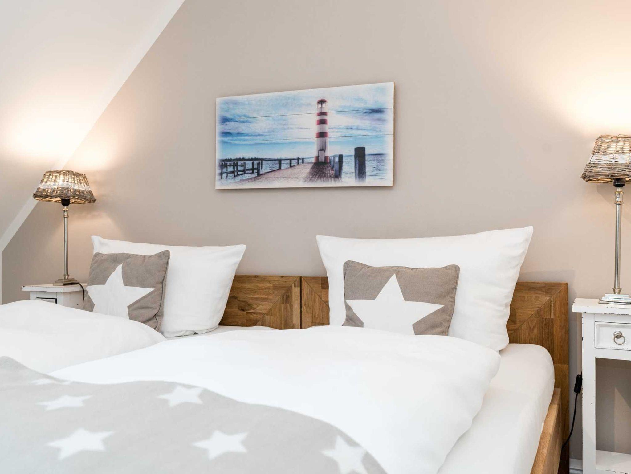 Das geräumige und helle Appartement liegt in Rantum auf Sylt im ersten Obergeschoss des Hauses und besticht durch die gemütliche Ausstattung und die herrliche Lage mit schönem Blick. Hier begrüßt Sie morgens die Sonne. Auf einer Ebene finden Sie ein geräumiges Wohnzimmer, eine voll ausgestattete separate Küche mit Nespressomaschine, zwei gemütliche Schlafzimmer sowie ein Wannenbad. Das größere Schlafzimmer hat ein sehr bequemes Doppelbett (180x200). In dem kleineren Schlafraum befindet sich ein weiteres gemütliches Doppelbett (140x200). Selbstverständlich stehen Ihnen 3 SAT Flat-Screen TV's, kostenloser WLAN Zugang, ein Telefonanschluss in das deutsche Festnetz und ein PKW-Stellplatz zur Verfügung.