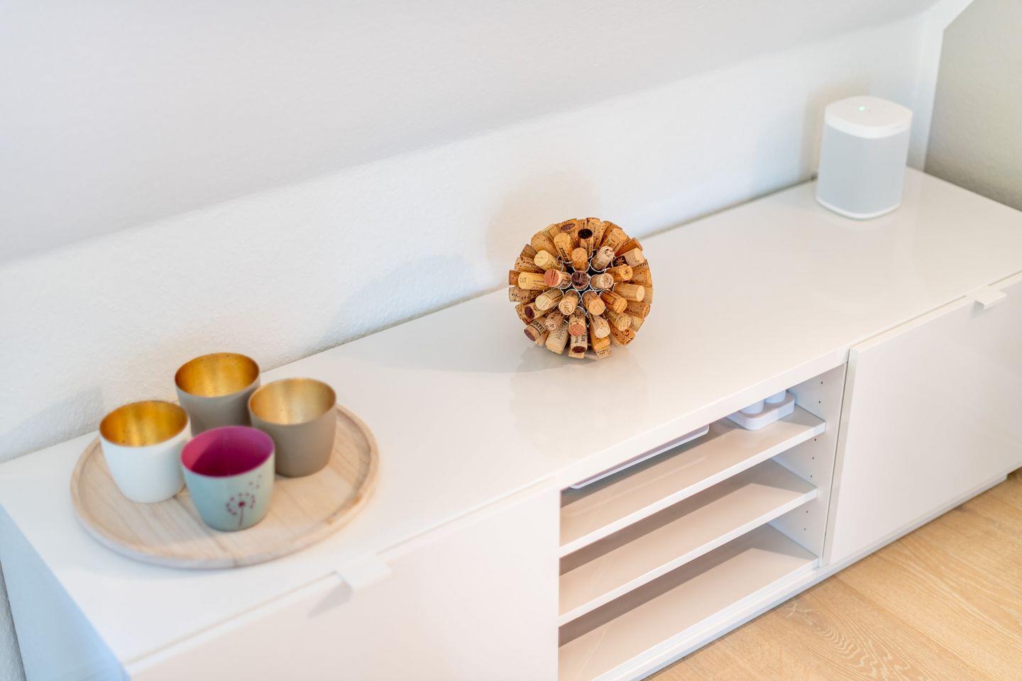 Der lichtdurchflutete Wohn- und Essbereich schafft eine behagliche Atmosphäre. Von den bequemen Sitzgelegenheiten aus genießen Sie einen traumhaften Blick auf das Wattenmeer – ideal für gemütliche Stunden und erholsame Abende. Die offene Küche ist komplett ausgestattet und ermöglicht Ihnen, auch im Urlaub Ihre Lieblingsgerichte zuzubereiten. Der angrenzende Essbereich bietet Platz für gemeinsame Mahlzeiten in geselliger Runde.