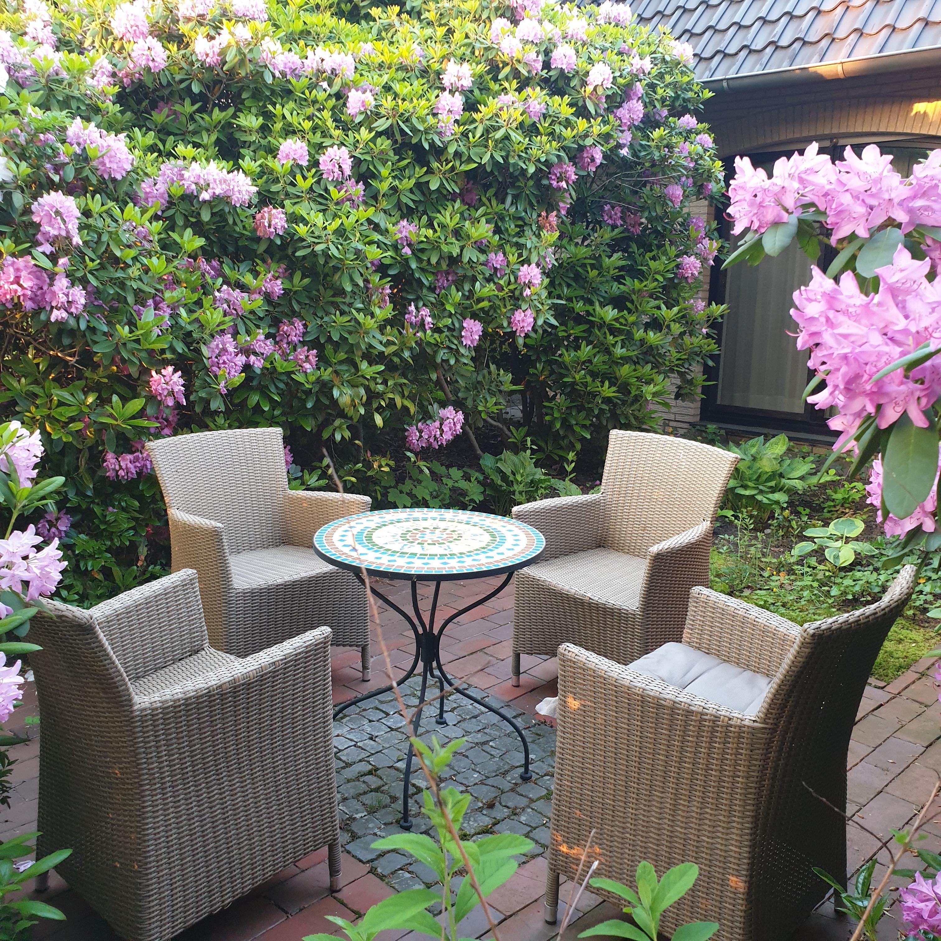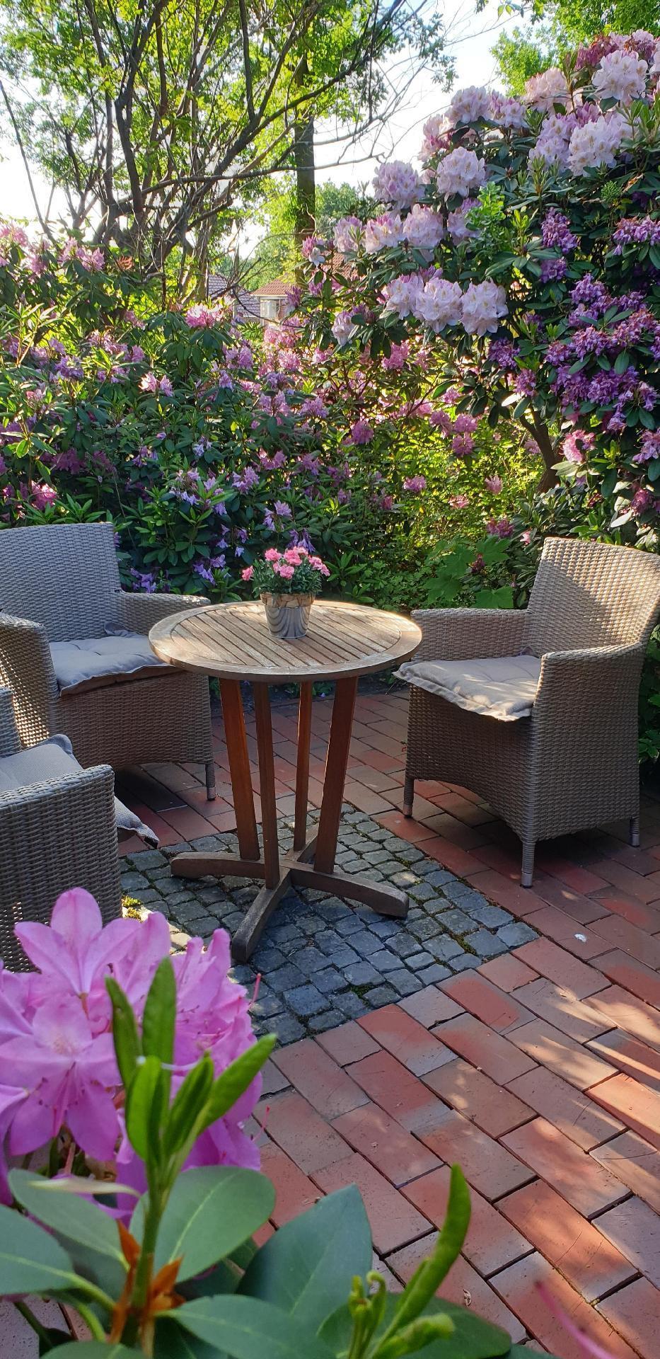The outdoor area of our holiday flat invites you to unwind. Enjoy relaxing hours on the approx. 10 m² terrace, which is directly adjacent to the living room and bedroom. The garden, which is for your exclusive use, provides the perfect backdrop for reading a book in peace or simply enjoying the fresh air. Our accommodation also uses solar energy to generate environmentally friendly energy.