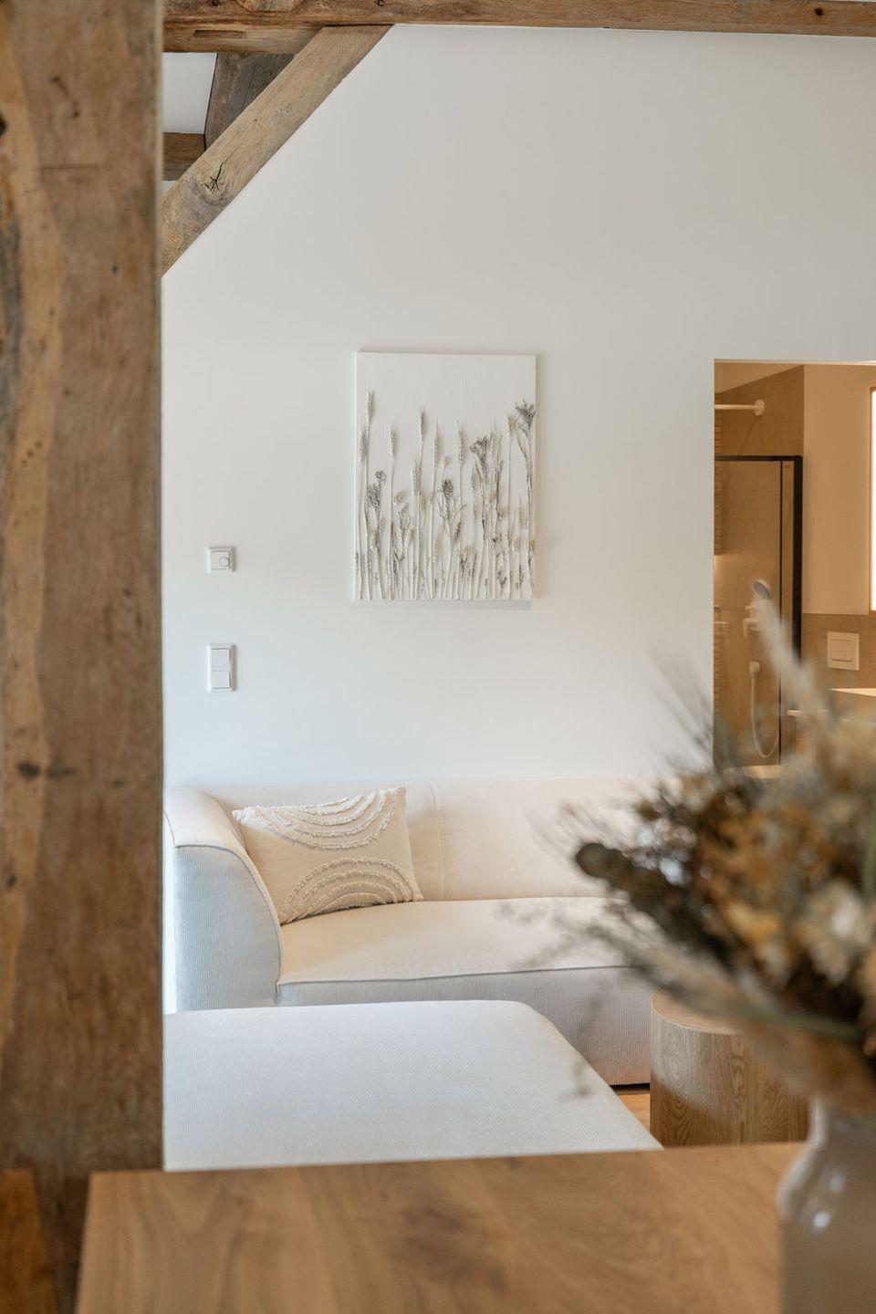 Das 37qm2 große Loft bietet Platz für 2 Personen. Die geschmackvolle Ausstattung umfasst eine Küche mit ECO-Geräten, ein behagliches Boxspringbett und eine Regendusche – abgerundet durch einen hochwertigen Bio-Vinylboden.