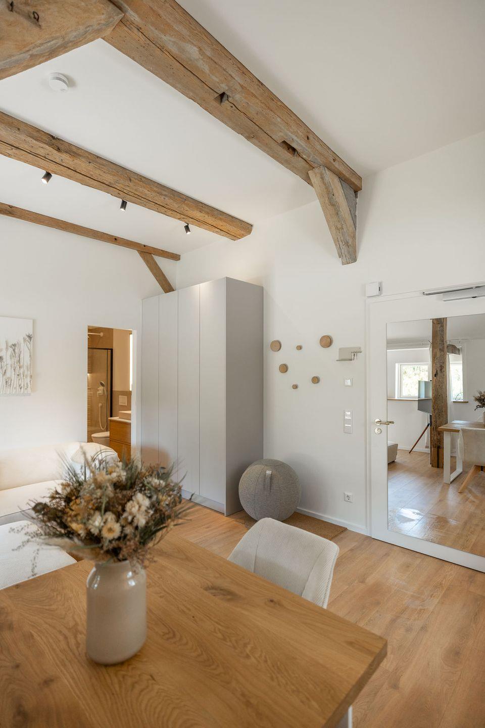 Eintauchen in die Geschichte und zugleich modernen Komfort genießen – das erlebt ihr in diesem sorgfältig sanierten Ferienloft aus dem Jahr 1763. Der Charme der original erhaltenen Balken trifft auf stilvolle Einrichtung und eine idyllische Lage nahe der Ostsee.