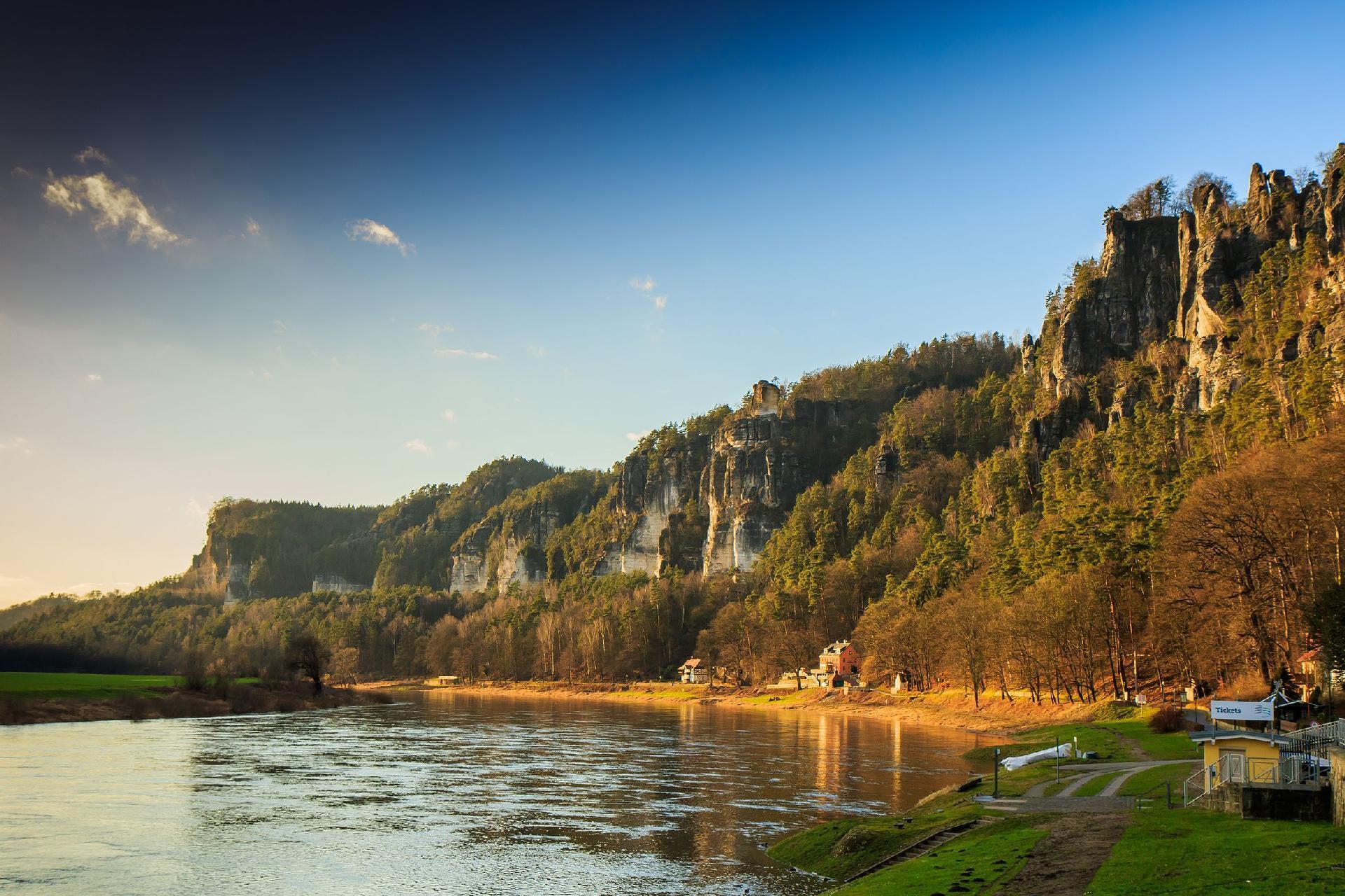 Discover the ideal accommodation for couples in Kurort Rathen, Saxony - a cosy holiday flat perfectly designed for 2 - 3 people. With its excellent location directly on the Elbe and just a stone's throw from the water, this holiday flat on the ground floor of Haus Heidi provides the ideal base from which to enjoy the natural beauty and tranquillity of the surrounding area. The possibility of bringing a medium-sized pet makes it a perfect holiday spot for animal lovers.