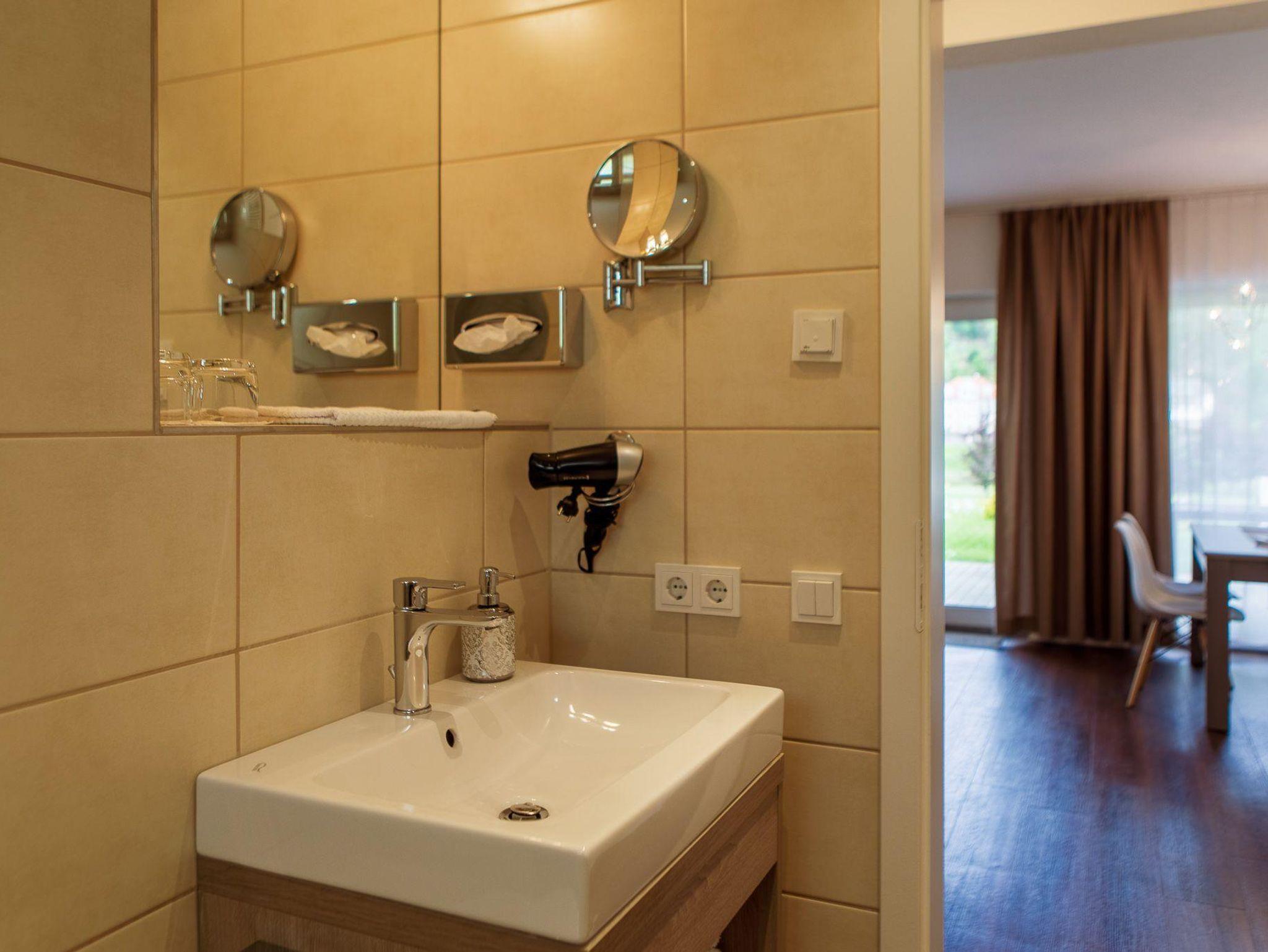 Höchster Wohnkomfort erwartet Sie in der Gartensuite mit 55m² und Gartenterrasse. Modern ausgestattet mit zwei Schlafzimmern sowie einem großem Badezimmer mit ebenerdiger Dusche, WC, Fön, Wohnküche mit allen Annehmlichkeiten (Geschirrspüler, Elektroherd, Kühlschrank, Geschirr etc.), Flat-Screen-TV und kostenfreies WLAN. Handtücher und Bettwäsche sind selbstverständlich vorhanden. Verteilt auf 4 Residences, mit Parkplatz (kostenpflichtig) und einem Spielplatz für Kinder bieten die Apartments außerdem größtmögliche Privatsphäre für einen unbeschwerten Urlaubsgenuss.