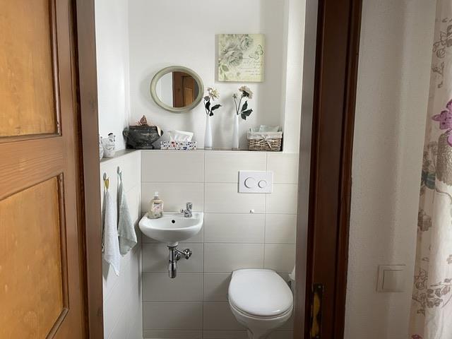 Badezimmer mit Fenster, Separates WC, Waschbecken, WC und Dusche