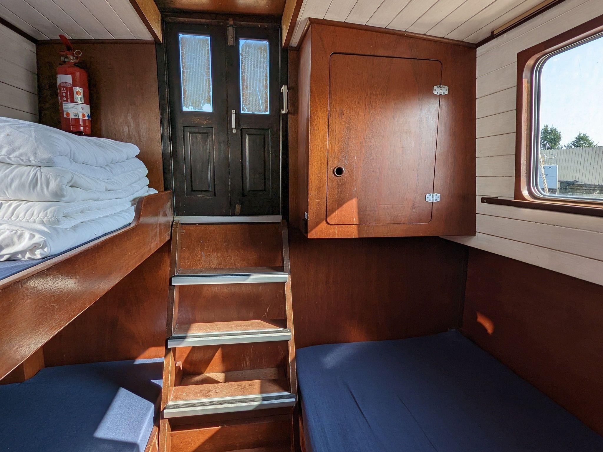 Traditionelles Hausboot im Stil der englischen Narrowboats mit einer einzigen Wohnebene - ideal für ein Paar oder kleine Familien mit kleinerem Budget.