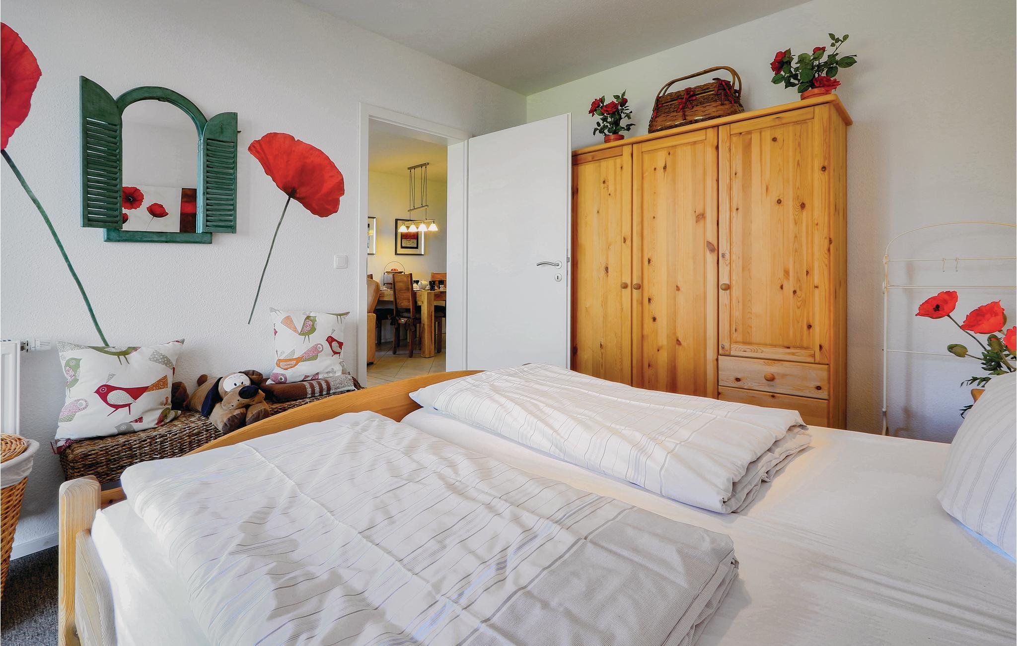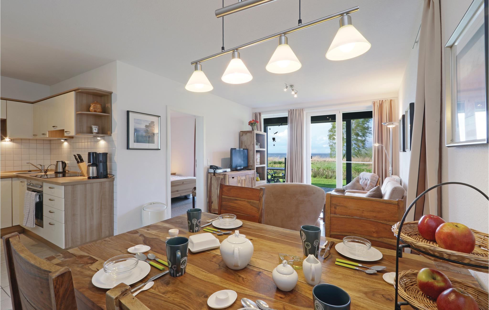 Efter en lang gåtur langs Müritz er det dejligt at hoppe en tur i saunaen og blive varm igen. Der er to separate soveværelser, hver af dem er indrettet med en behagelig dobbeltseng og fra det ene soveværelse er der udgang til en terrasse. Den lyse og komfortabelt indrettede stue er åben mod køkkenet. I badeværelset er der bidet og en føntørrer.
