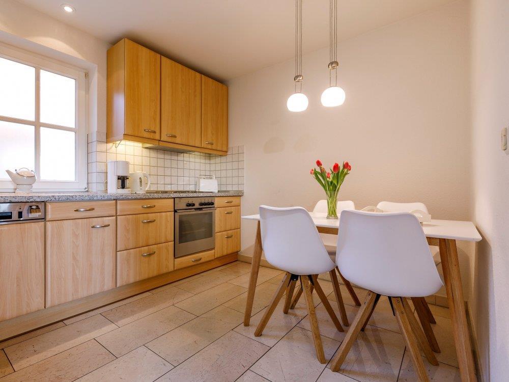 Unsere großzügige, helle und komfortable Ferienwohnung (82,52qm) liegt ebenerdig mit Ausblicken in den großen Garten, die angrenzenden Wiesen und das Damwildgehege. Die Ferienwohnung hat zwei Schlafzimmer mit insgesamt drei Betten. Ein Zustellbett ist im Einzelzimmer auf Wunsch möglich.Die Küche ist mit Herd, Backofen, Mikrowelle, Spülmaschine und einer Kühl-Gefrier-Kombination eingerichtet. Ebenso stehen in der Wohnung Waschmaschine und Kondensationstrockner zur Verfügung. Der große Wohn-Eß-Raum führt auf eine große Terrasse mit Blick ins Grüne hinaus. Die Terrasse ist möbliert und kann mit einer Markise beschattet werden.Ein Grill steht für ein gemütliches Essen auf der Terrasse bereit.Unsere Wohnung bietet auch Menschen mit Bewegungseinschränkungen den gewünschten Komfort: Alle Türen sind 1m breit, Bad mit Dusche und WC, Küche, Schlaf- und Wohnräume bieten ausreichende Bewegungsfreiheit.