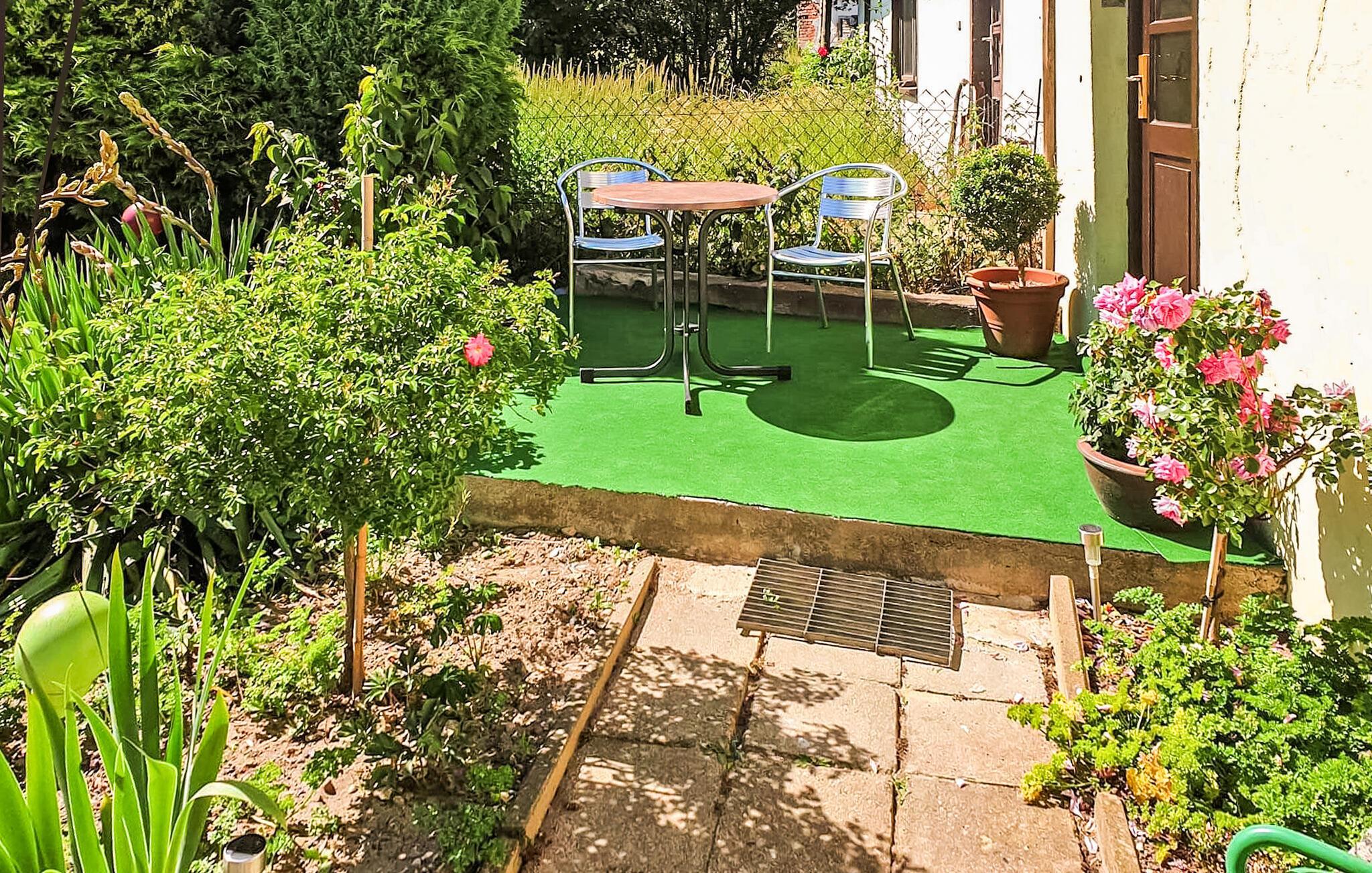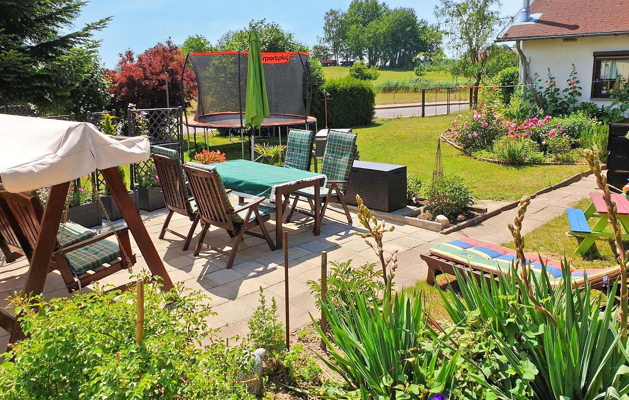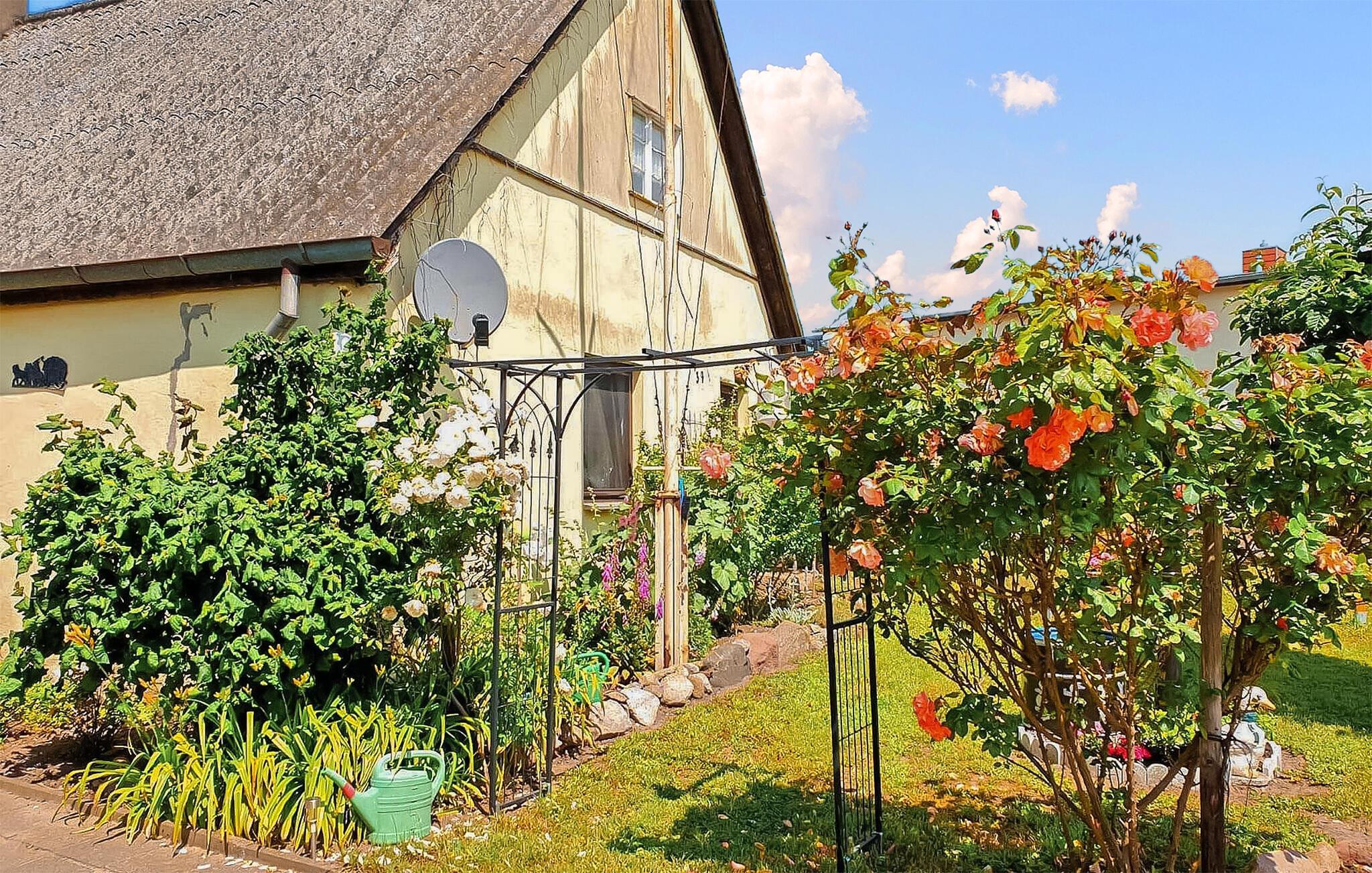 Det 100 kvm store sommerhus til 2 voksne og 2 børn ligger hver for sig på en 755 kvm beboelsesejendom lokalt. Det blev fuldstændig moderniseret og omudstyret i 2020. Der er stue (polstrede møbler, fladskærms-tv, hi-fi system, spiseplads, pejs), køkken (elkomfur med ovn, køleskab med fryser, mikroovn, spisebord, diverse køkkenmaskiner), 1 soveværelse (dobbeltseng), 1 børneværelse (køjeseng, gennemgangsrum til badeværelset) og badeværelse med brus/toilet. I det udendørs område er der møbleret opholdsområde, grill, lille. Legeplads og parkeringsplads. En barneseng og en høj stol er til rådighed for små børn. Boligen kan kun opvarmes via kakkelovn og pejs. Den samlede pris inkluderer slutrengøring, sengelinned, håndklæder samt vand- og energiforbrug. Reetzow er en landsby i de naturskønne omgivelser i det såkaldte Thurbruch, et af de største fenområder i Østtyskland. Omgivet af søen Gothensee og søen Kachliner og krydset af talrige floder og dræningsgrøfter, er området ideelt til vandreture, cykling og fiskeri. På grund af sin nærhed til Østersøferiestedet Bansin (ca. 4 km) med en meget god turistinfrastruktur, tilbyder Reetzow sine gæster en god blanding af landlig idyl og livlig turisme.