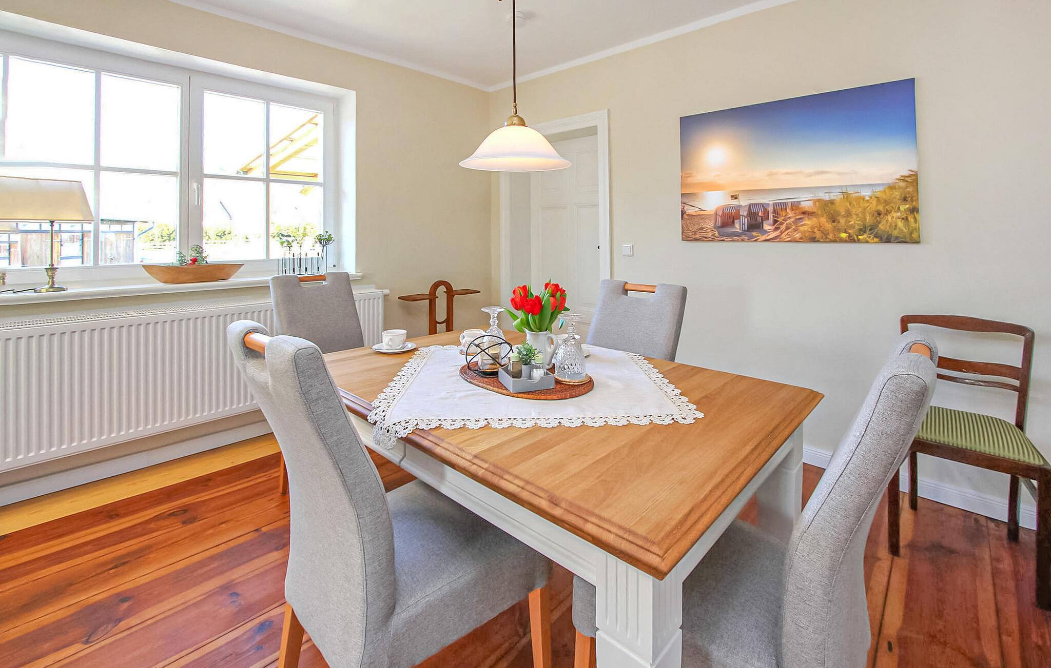 Det cirka 75 kvm store dobbelthus til maks. 2 personer ligger på en 2000 kvm grund (til eksklusiv brug). Det tidligere stuehus fra det 19. århundrede blev omfattende renoveret og indrettet til en høj standard i 2021. Der er en stue (polstrede møbler, fladskærms-tv, kakkelovn), et stort stue-køkken (spisebord, tv, el-komfur med ovn, køleskab med fryser, opvaskemaskine, mikroovn, diverse køkkenmaskiner), et soveværelse (dobbeltseng) og et badeværelse med brus/toilet og vaskemaskine. Boligen opvarmes med centralvarme. Der er overdækket og møbleret terrasse, grillfaciliteter, cykelkælder, parkeringsplads og WiFi til rådighed. To cykler kan lejes på stedet (5 EUR/cykel og dag). Den samlede pris inkluderer slutrengøring, sengelinned, håndklæder samt vand- og energiforbrug. Reetzow er en landsby i de naturskønne omgivelser i det såkaldte Thurbruch, et af de største fenområder i Østtyskland. Omgivet af søen Gothensee og søen Kachliner og krydset af talrige floder og dræningsgrøfter, er området ideelt til vandreture, cykling og fiskeri. På grund af sin nærhed til Østersøferiestedet Bansin (ca. 4 km) med en meget god turistinfrastruktur, tilbyder Reetzow sine gæster en god blanding af landlig idyl og livlig turisme.