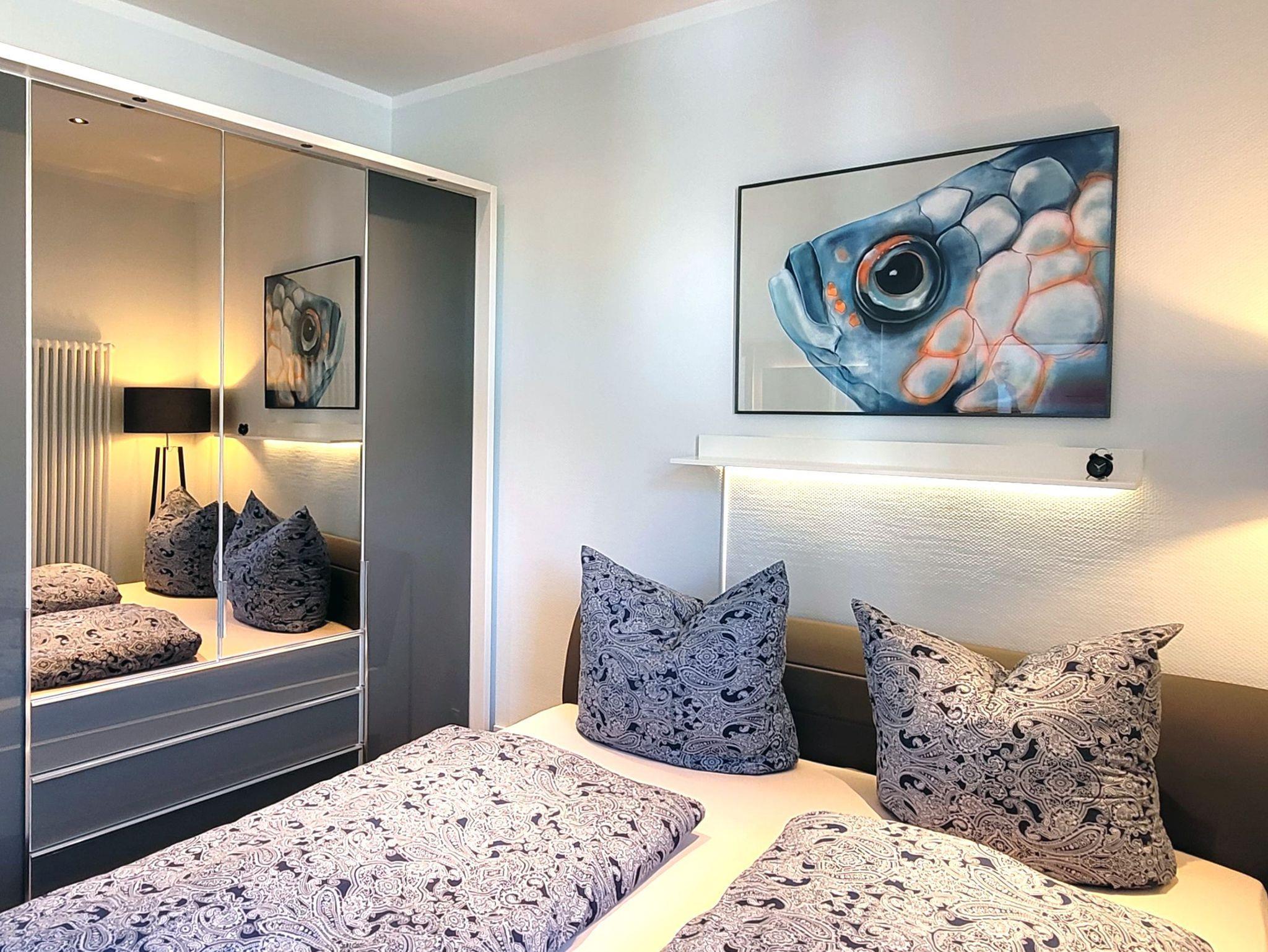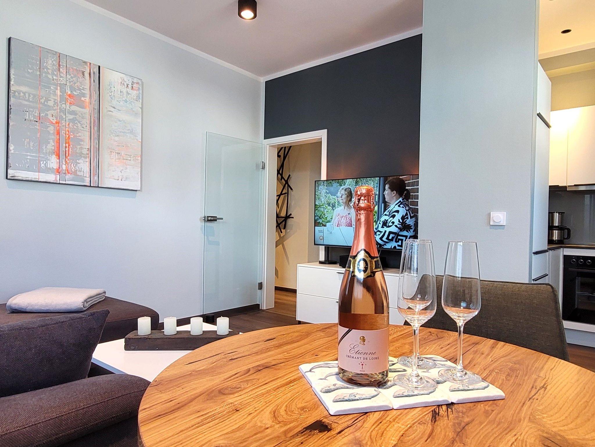 Im separaten Schlafzimmer erwartet Sie ein weiterer Flachbild-TV sowie ein gemütliches Doppelbett (180x200) für erholsame Nächte.