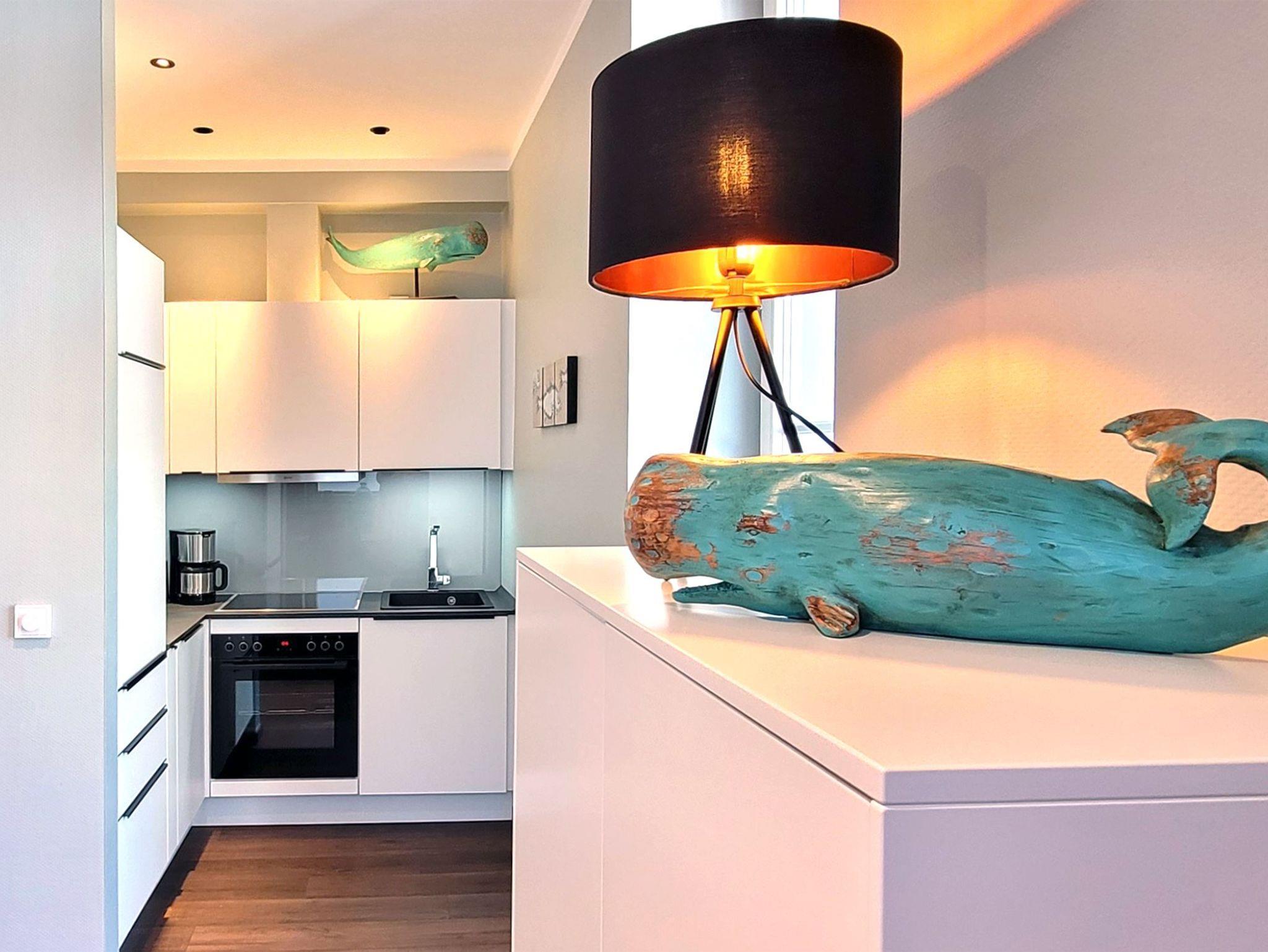 Sie ist komportabel und modern ausgestattet und bietet für einen entspannten Urlaub alle Annehmlichkeiten. Neben der Küchenausstattung mit hochwertigen Neff- Küchengeräten lädt auch das Wohnzimmer mit modernem Multi-Media System und bequemen Sofa zum Entspannen ein.