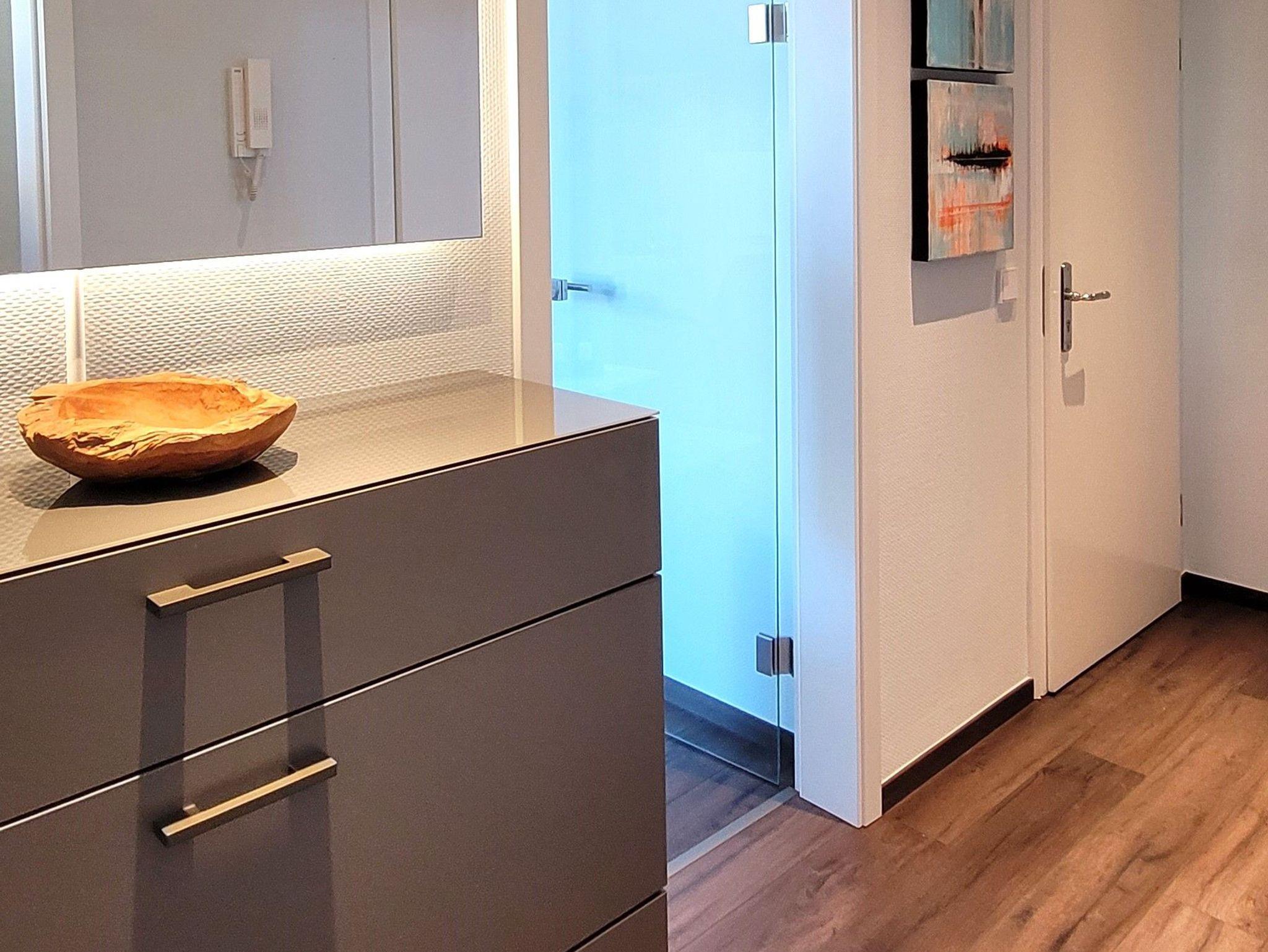 Die modern ausgestatte Einbauküche ist geschickt vom Wohnbereich abgetrennt und bietet alles, was Sie für die Zubereitung Ihrer Mahlzeiten benötigen. In der kleinen Essecke oder auf dem Balkon können Sie den Tag mit einem ausgiebigen Frühstück beginnen. Das helle Badezimmer ist mit einer Dusche ausgestattet.
