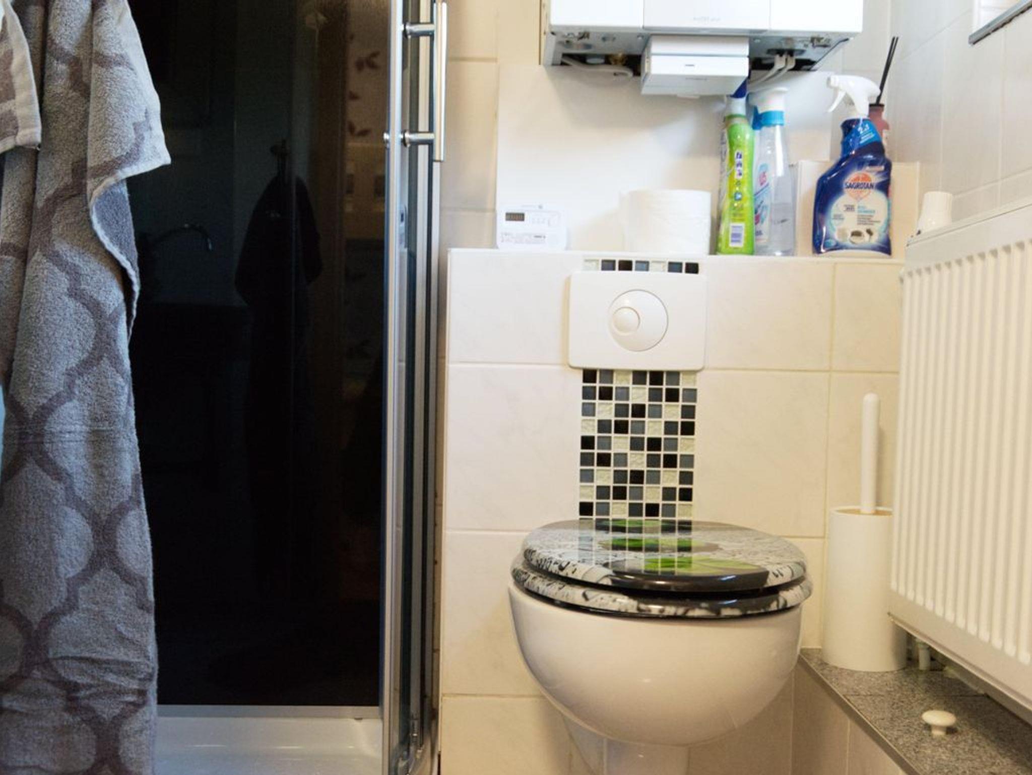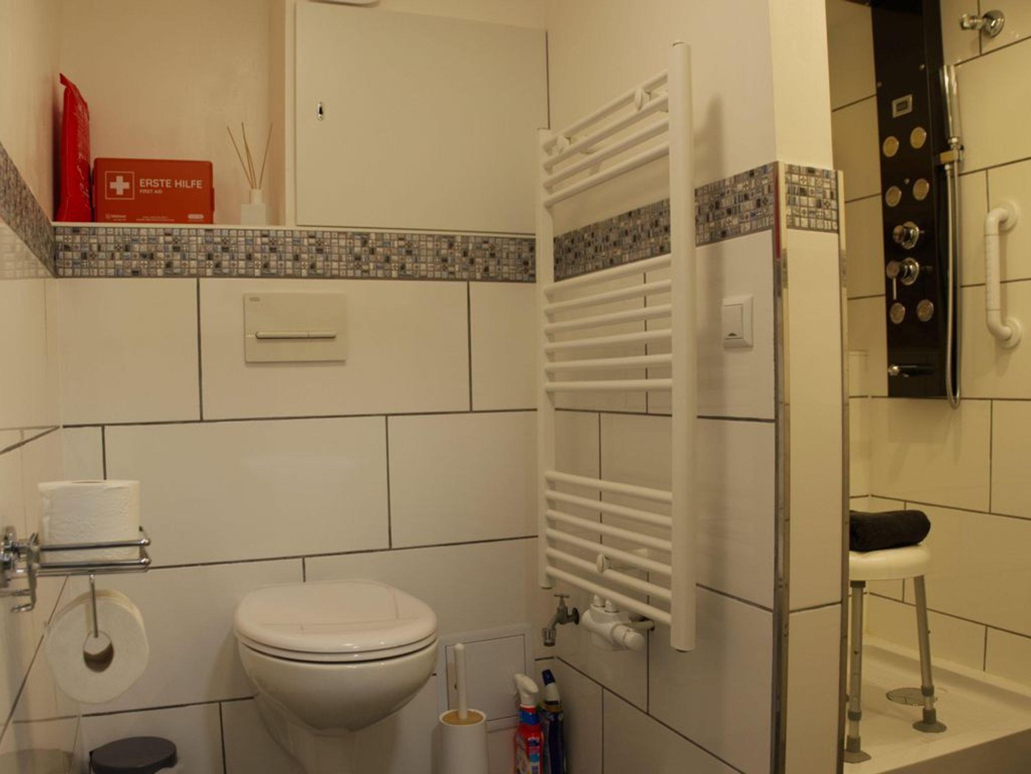 Badezimmer: Zwei moderne Bäder, jeweils mit Dusche und WC.