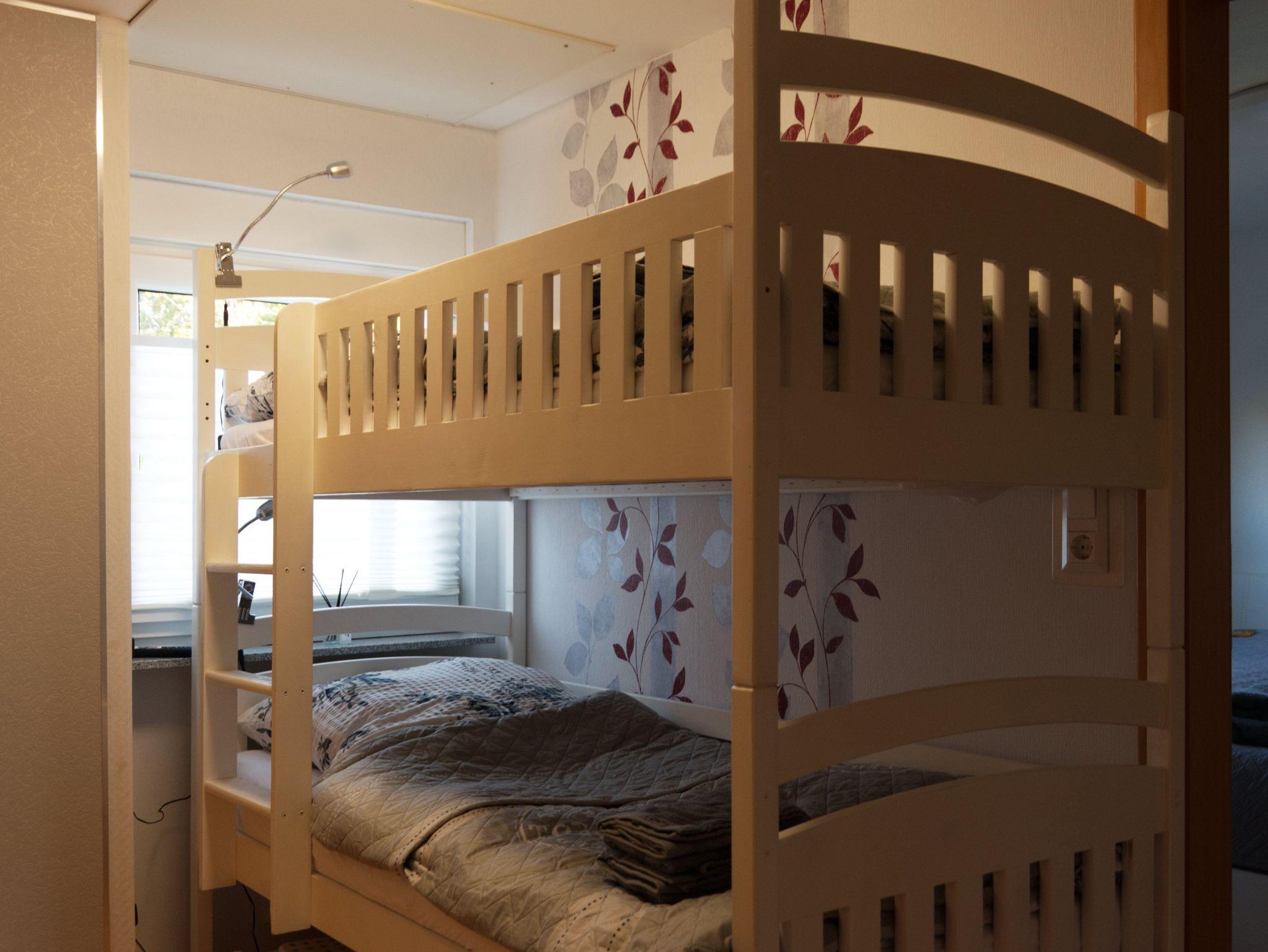 Kinderzimmer: Kinder-Etagenbett (1,6 m x 0,8 m) mit eigenem Fernseher.
