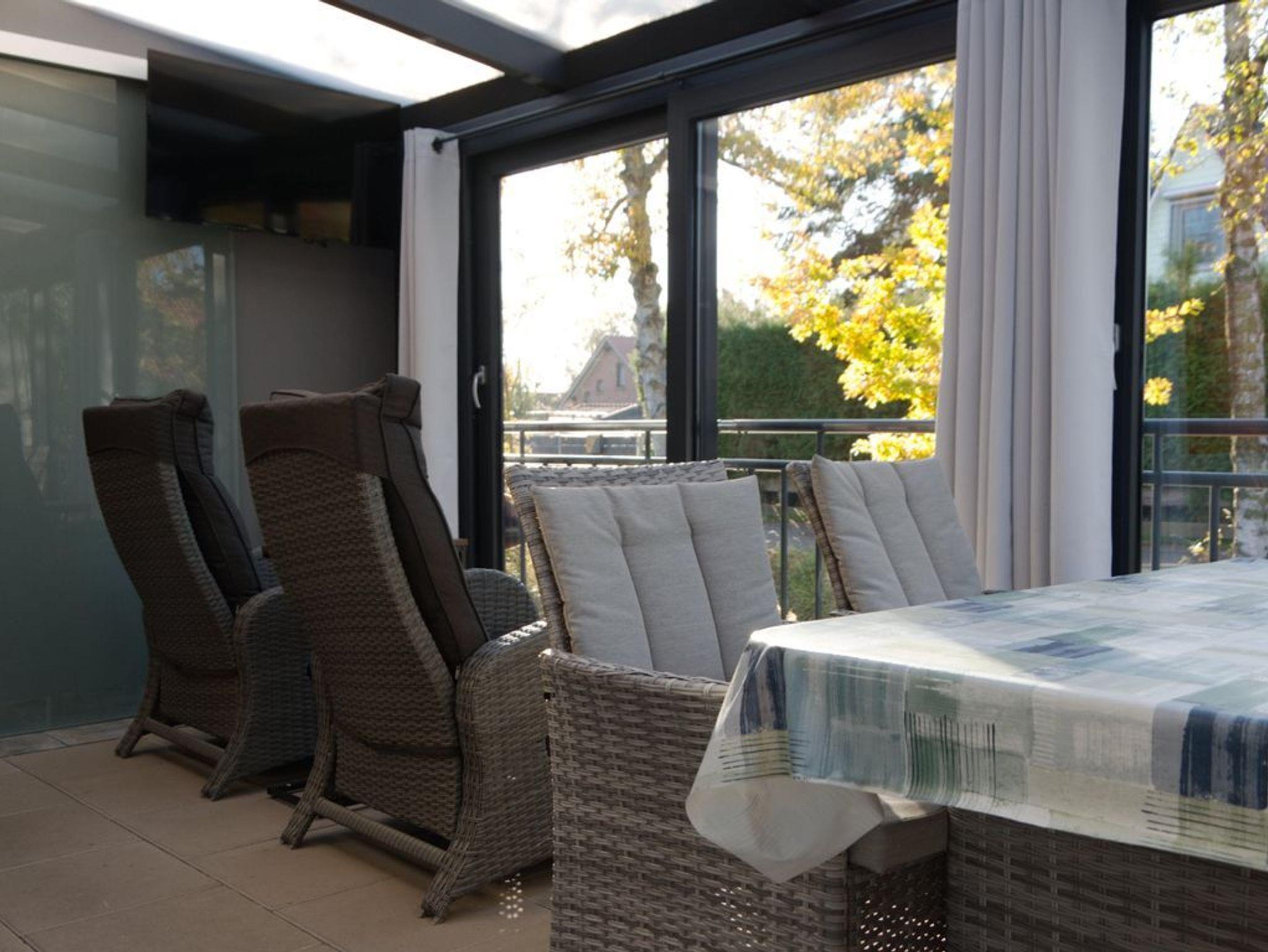 Ein besonderes Highlight ist der Wintergarten, der mit einem Esstisch für vier Personen ausgestattet ist. Von den zwei Relaxsesseln im Wintergarten genießen Sie den herrlichen Ausblick auf den Bootssteg und den Kanal. Auch bei schlechtem Wetter können Sie hier die Natur erleben. Von dort gelangen Sie auf die teilweise überdachte Terrasse mit gemauertem Grillkamin und weiter über eine Treppe zum etwa 14 m langen Bootssteg.