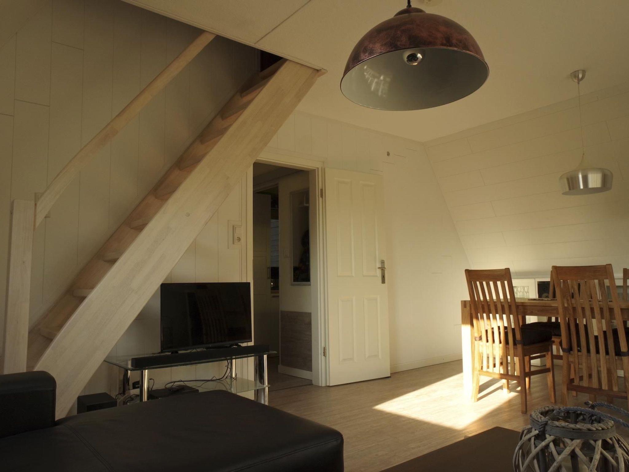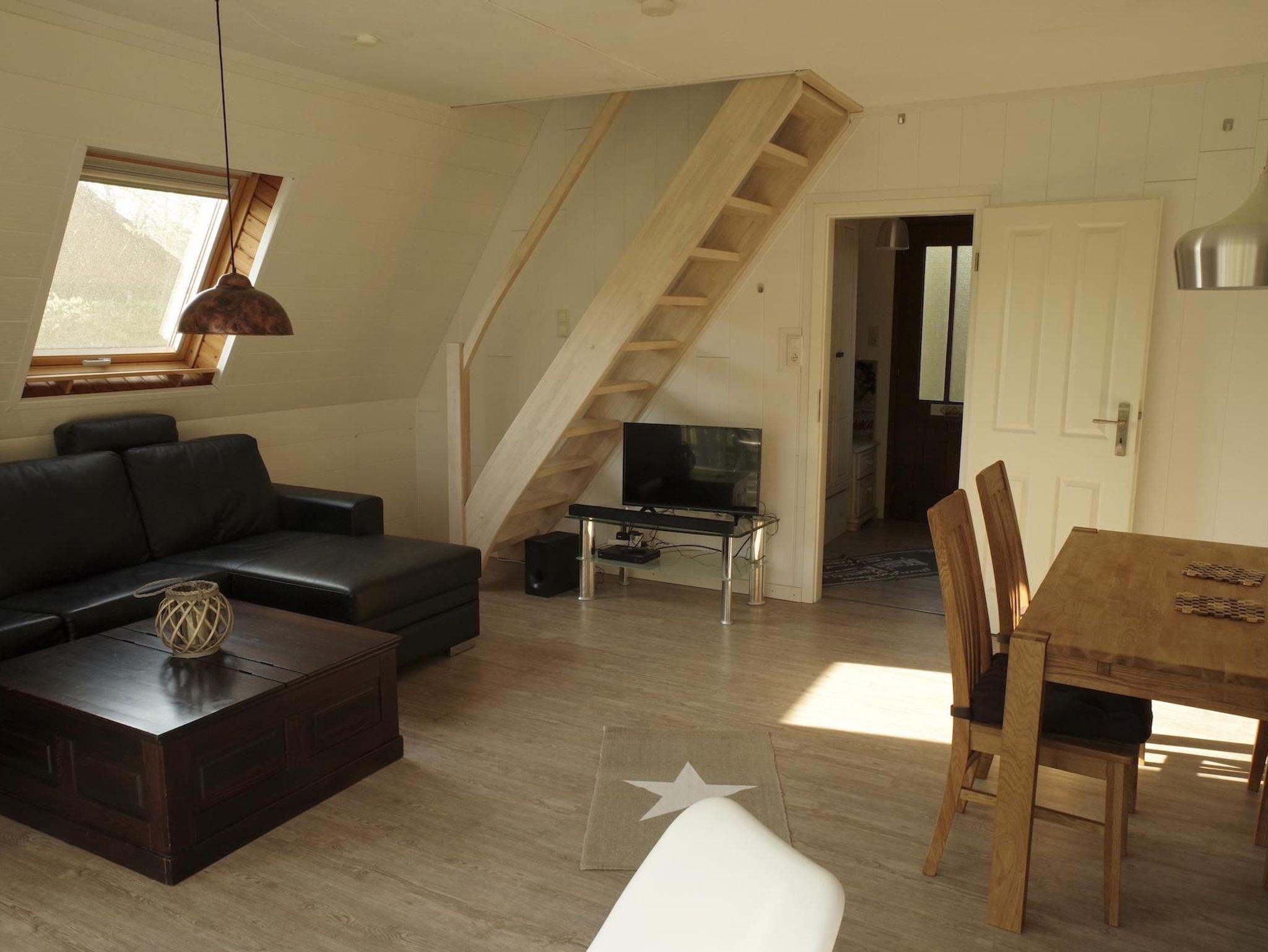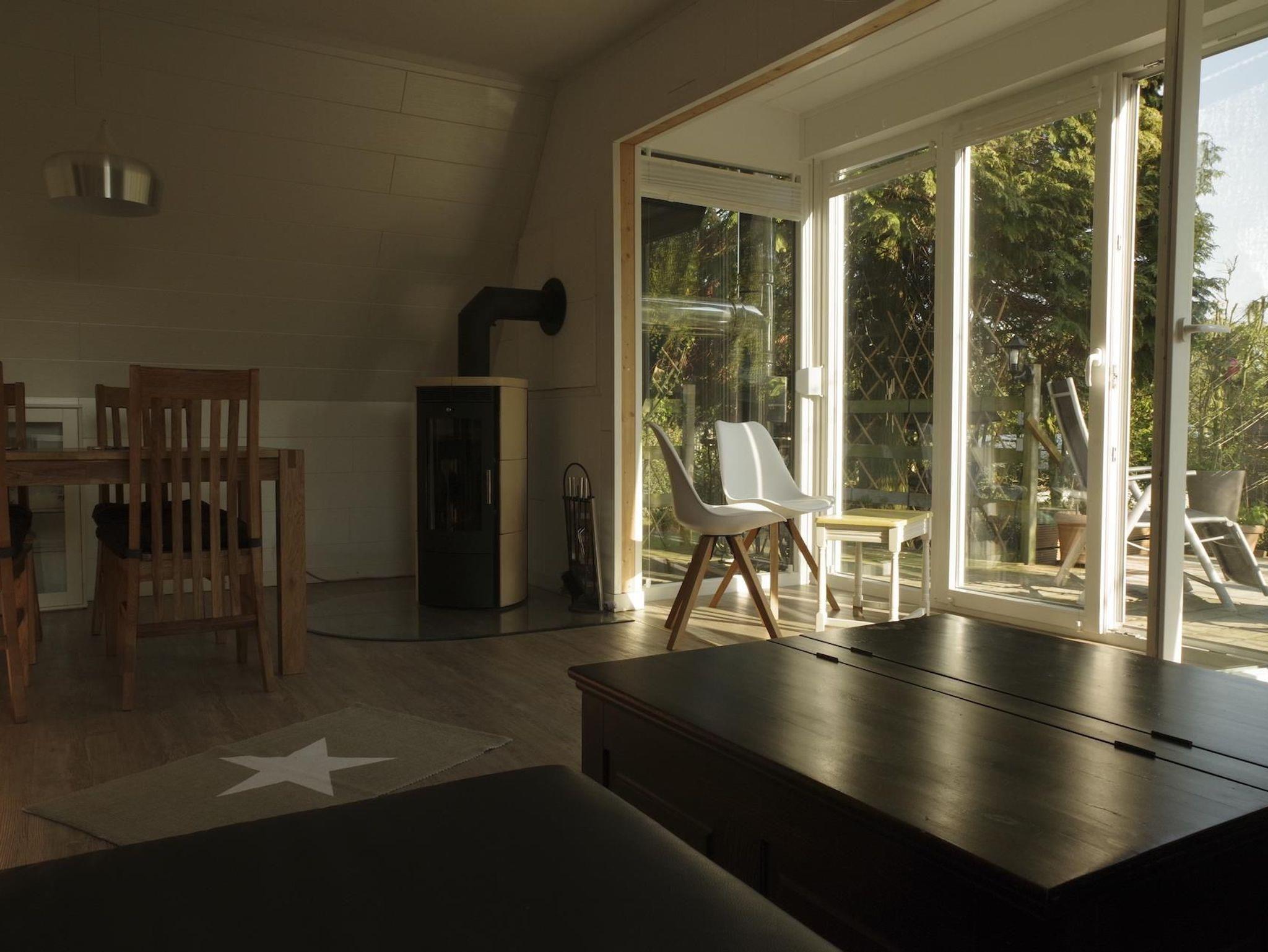 Das Ferienhaus bietet auf ca. 65 m² Wohnfläche ein gemütliches Ambiente mit einem geräumigen, kombinierten Wohn- und Esszimmer, zwei Schlafzimmern, einem Bad und einer voll ausgestatteten Küche. Der lichtdurchflutete Glasvorbau sorgt für eine helle und freundliche Atmosphäre. Im Wohn-/Essbereich stehen ein stabiler Echtholz-Esstisch im modernen Landhausstil mit passenden Stühlen, ein Kaminofen sowie eine Ledercouch für entspannte Stunden bereit. Zur Unterhaltung sind ein TV mit Soundbar und Subwoofer, ein Blu-ray-Player sowie eine Radio-/CD-Mini-Stereoanlage vorhanden. Eine kleine Bücherei und Gesellschaftsspiele sorgen für Abwechslung. WLAN ist verfügbar, allerdings mit begrenztem Datenvolumen ? bitte solidarisch nutzen und kein Filmstreaming betreiben.