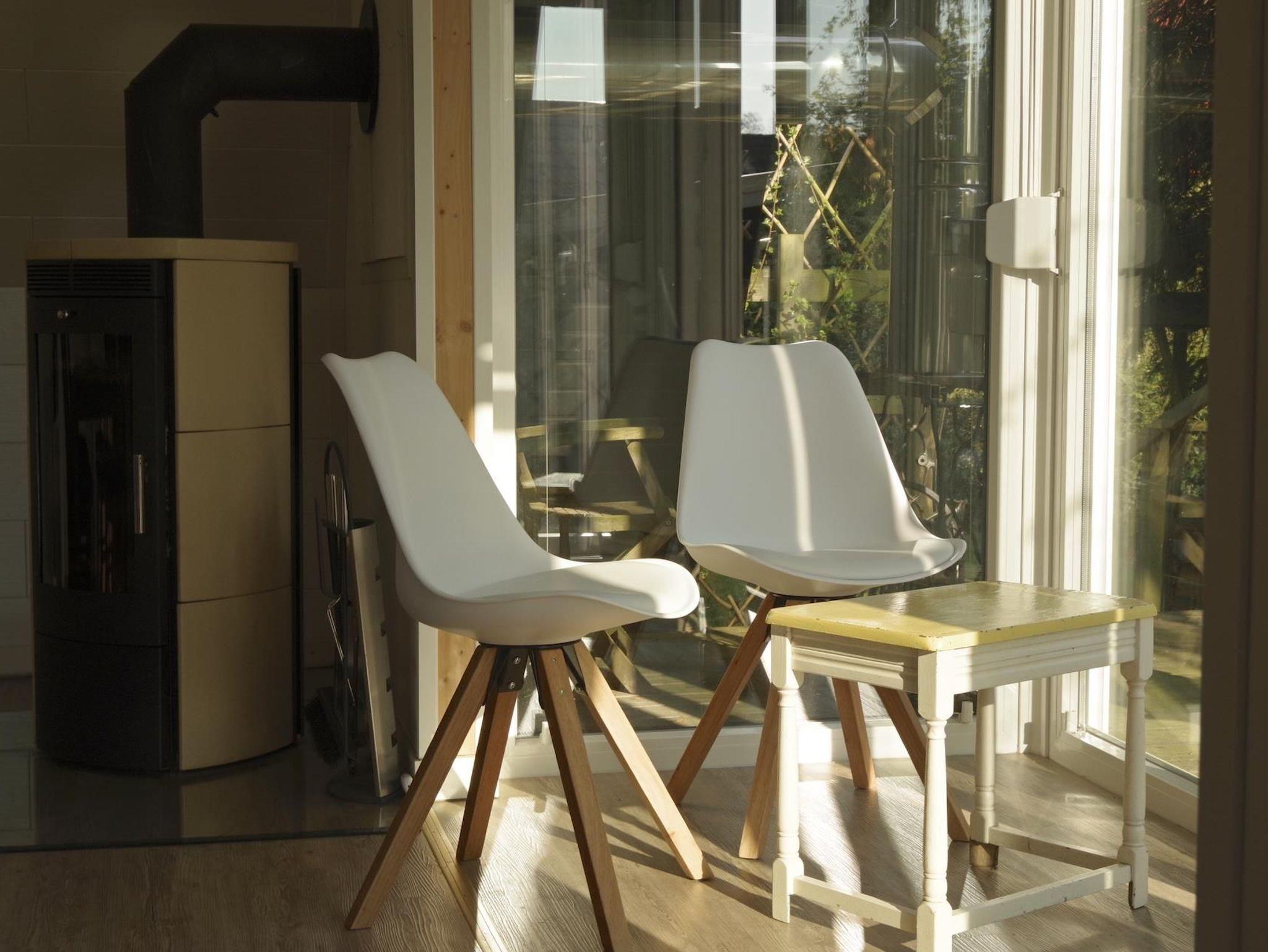 Das Haus ist bestens ausgestattet und verfügt über einen gemütlichen Kaminofen sowie eine moderne zentrale Gasheizung mit Heizkörpern in allen Wohnräumen, dem Bad und dem Flur. Ein zentraler Temperaturregler sorgt für angenehme Wärme, während in einem Holzunterstand Brennholz bereitgestellt wird. Für kalte Tage empfiehlt es sich, warme Hausschuhe mitzubringen. Gartenmöbel sind im Geräteschuppen sicher verstaut, und auch Ihre Fahrräder können dort sicher untergebracht werden.