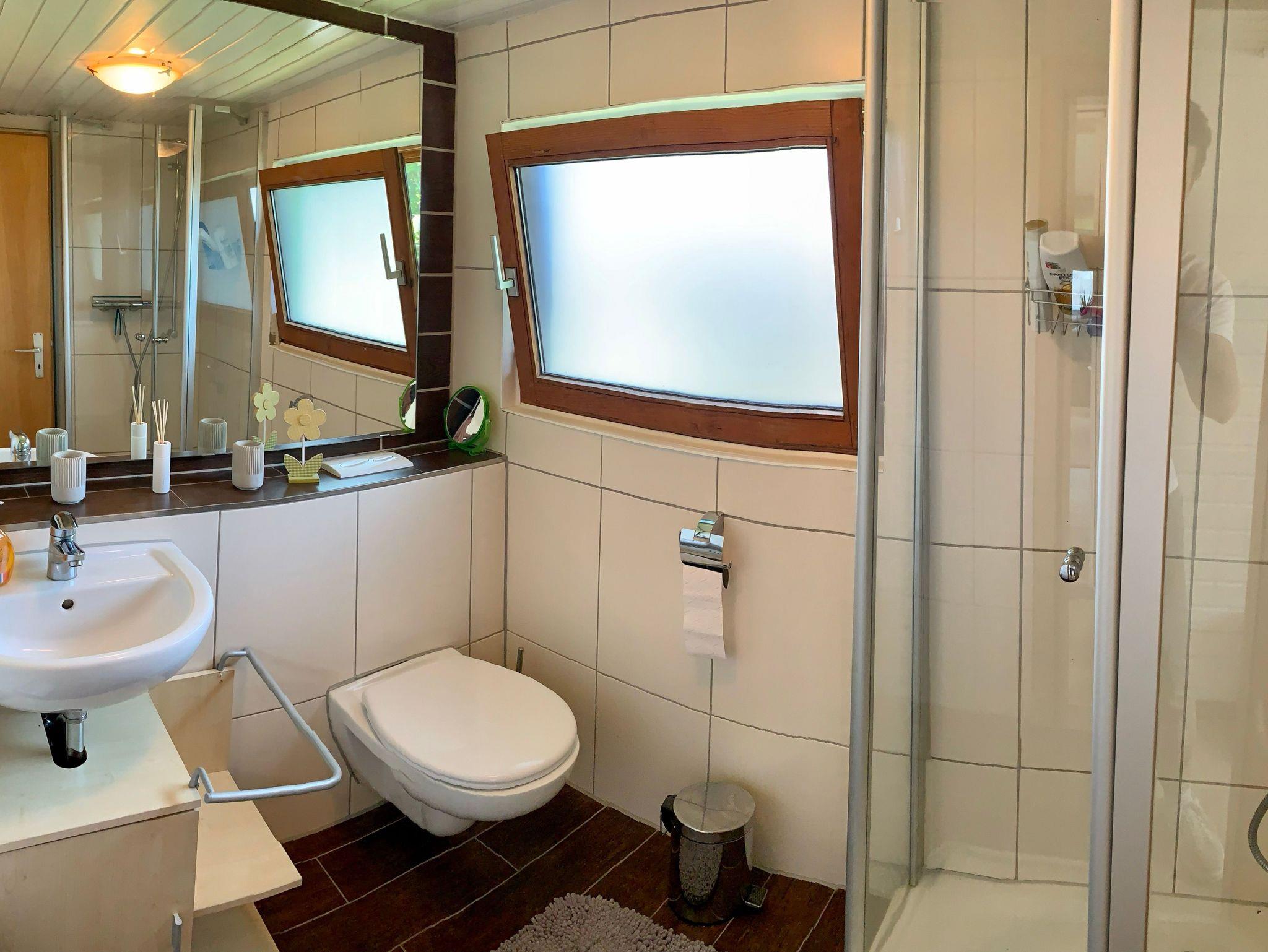 Das Badezimmer verfügt über eine Dusche und ein WC. Eine Waschmaschine sowie eine zusätzliche Kühl-Gefrier-Kombination stehen Ihnen ebenfalls zur Verfügung.