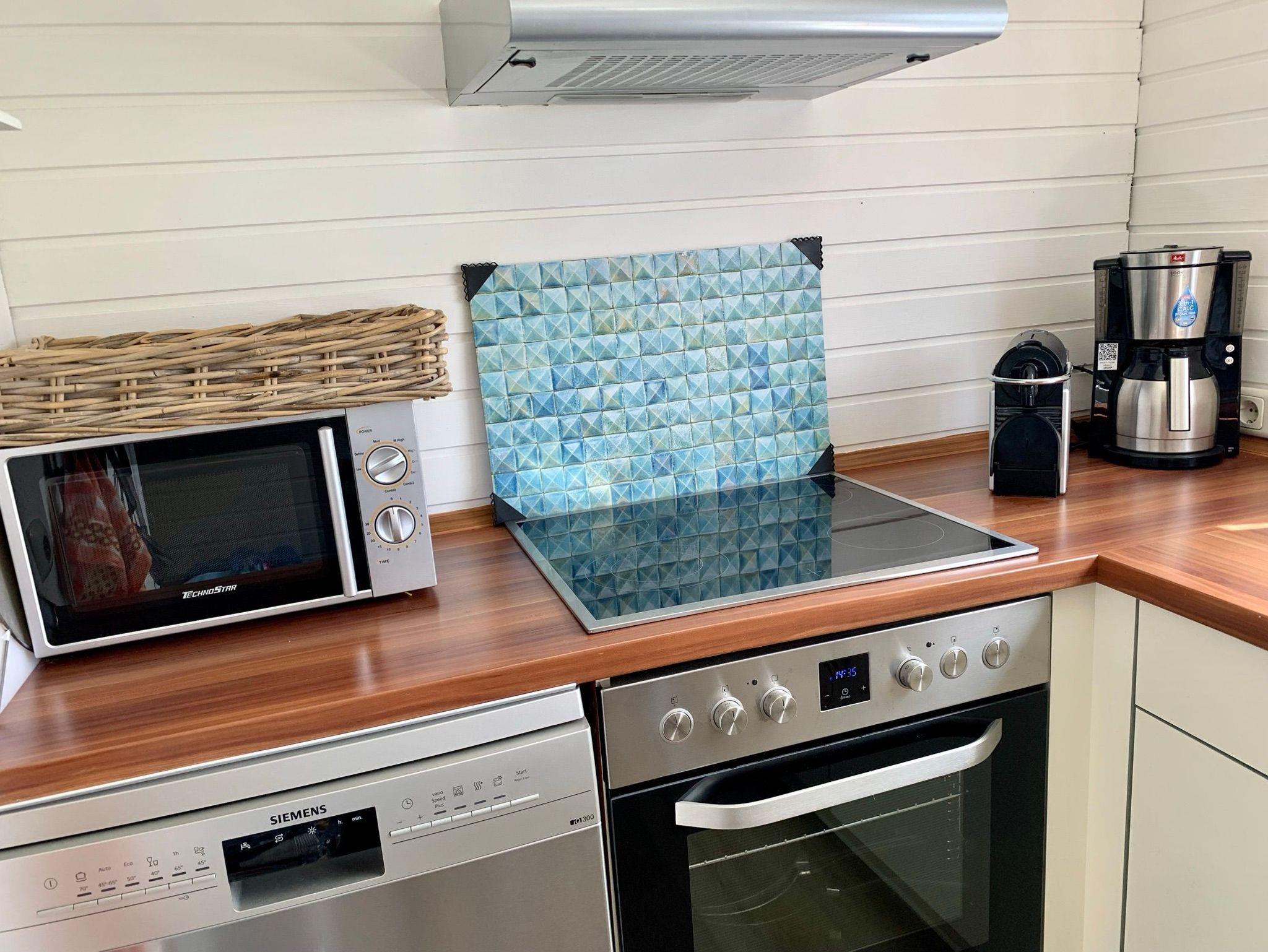 Der Wohnraum lädt mit einer bequemen Couchgarnitur (zum Ausziehen), einer Essgruppe, einem Flat-TV (SAT) sowie einem DVD/Radio/CD-Player zu gemütlichen Stunden ein. Die Küche ist vollständig ausgestattet und bietet alles, was Sie benötigen: Kühlschrank mit Gefrierfach, 4-Platten-Herd, Backofen, Spülmaschine und Mikrowelle sowie weitere gängige Haushaltsgeräte.