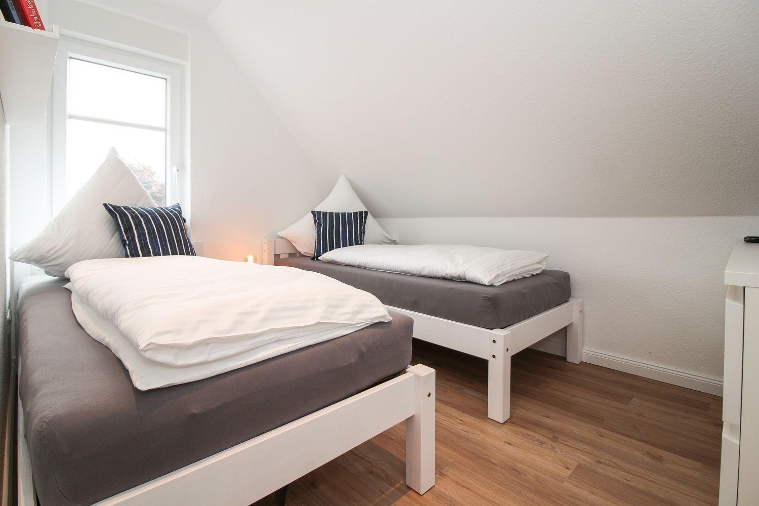 Im zweiten Schlafzimmer befinden sich zwei Einzelbetten, ein Nachttisch und eine Kommode. Ebenso ist ein Flachbild-TV und Blueray-DVD-Player vorhanden.