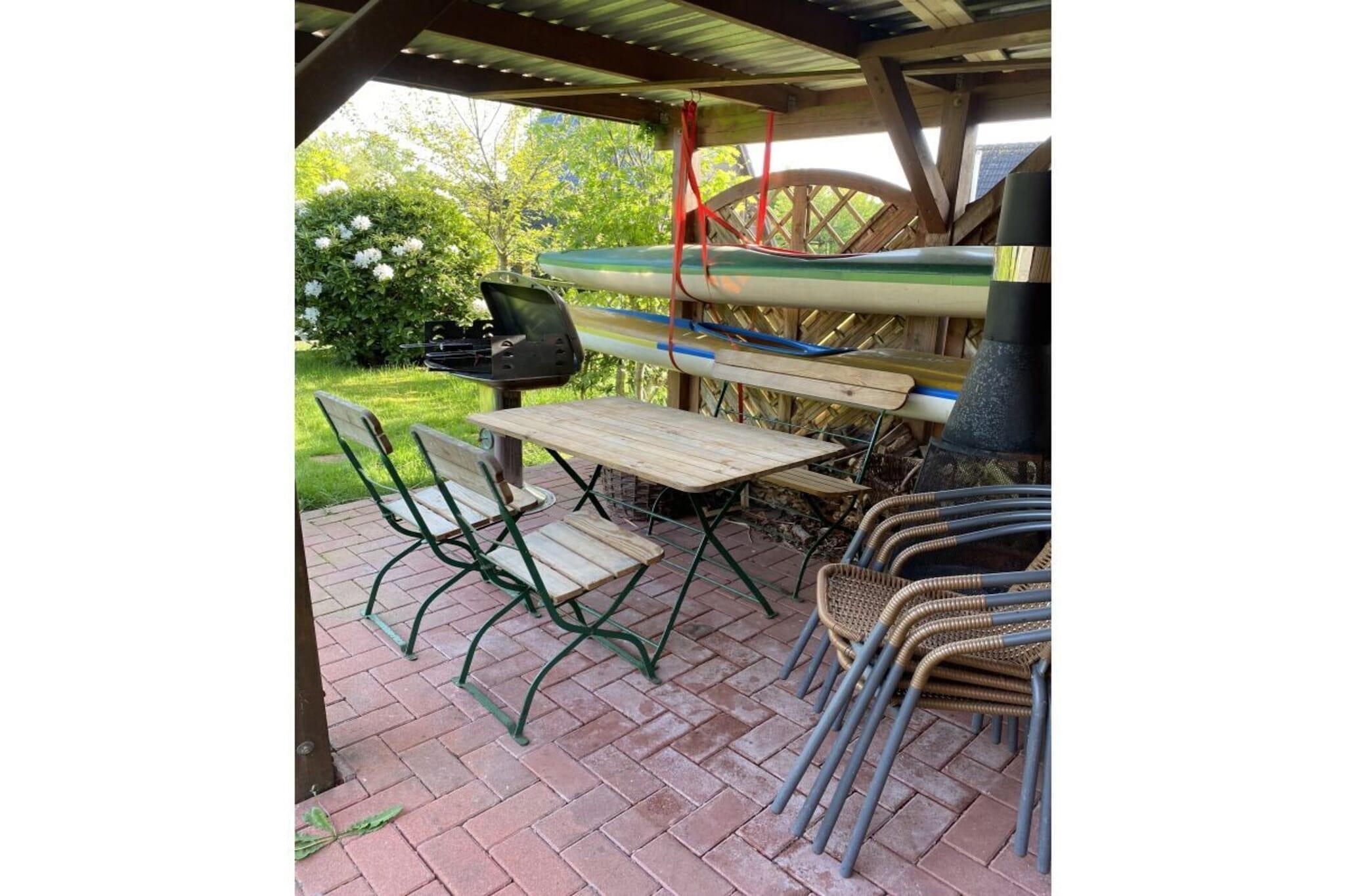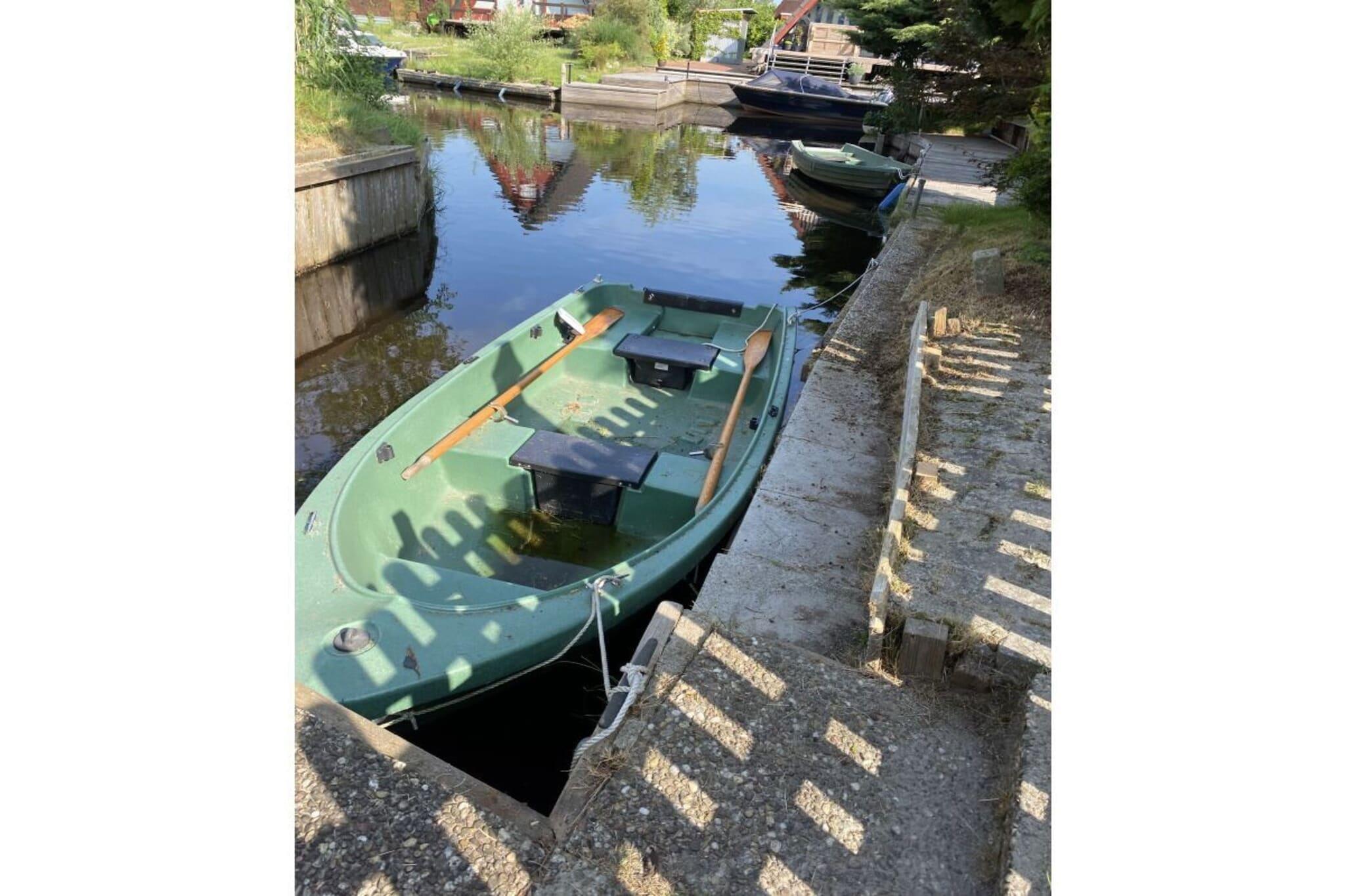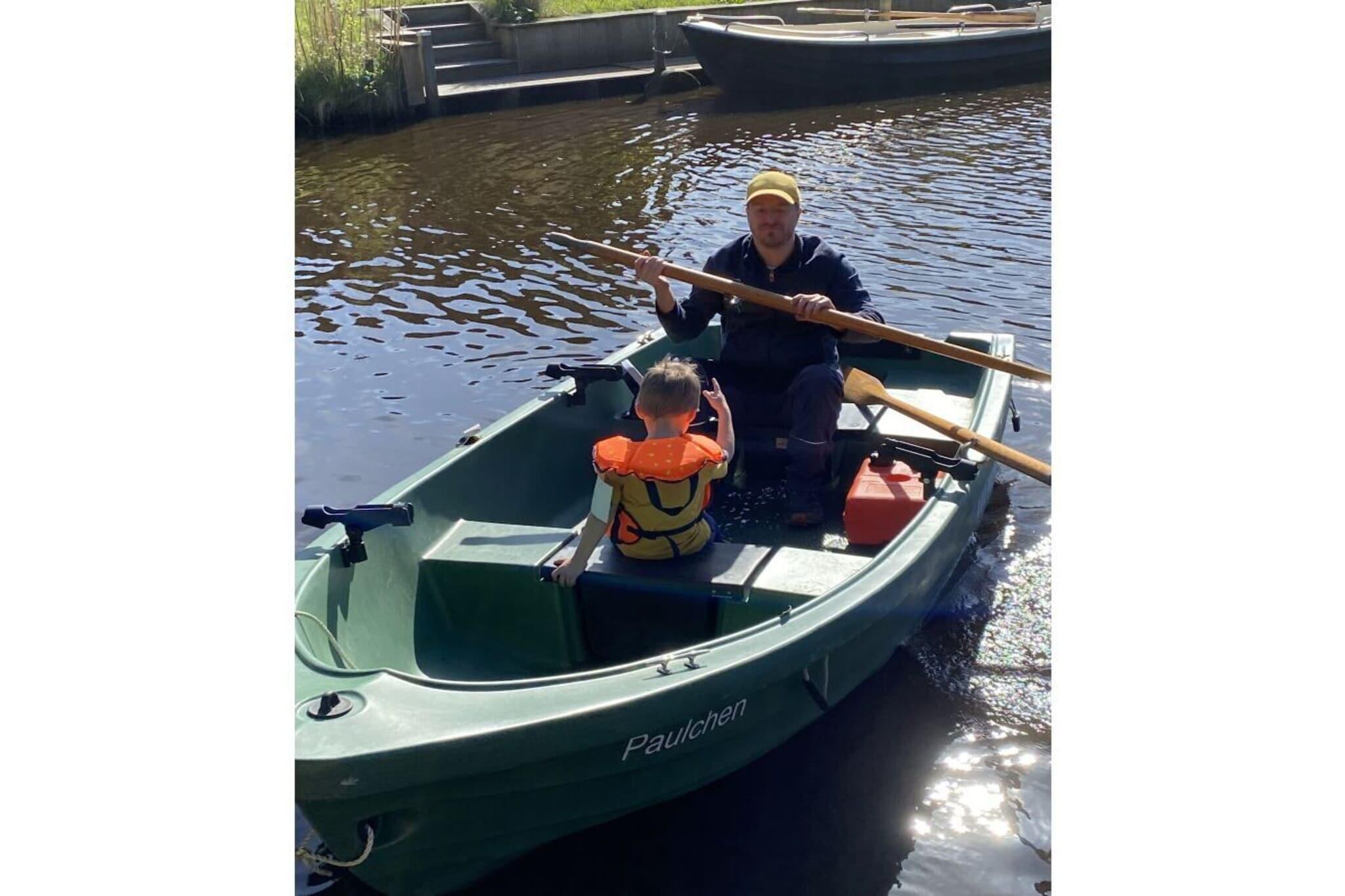 Freshly renovated holiday home in a dream location for the whole family! Everyone gets their money's worth here. The large property with its own garden and climbing frame makes it ideal for families with children. Your own rowing boat is right in front of the terrace, from which you can experience a wonderful sunset. The grill and fireplace invite you to relax. In the middle of a holiday home settlement, which is very quietly located in the East Frisian nature, you can relax in a natural way. The holiday home also offers two kayaks with which you can explore the canals and lakes. Fishing, swimming, surfing, hiking and cycling to the "Großes Meer" nature reserve are great ways to spend your time. The house has a master bedroom with a double bed and a children's bedroom with 2 beds. This room is perfectly equipped for the little ones with a children's table, toys, painting supplies and books: We have lovingly furnished it and our 4-year-old son thinks it's great :-)