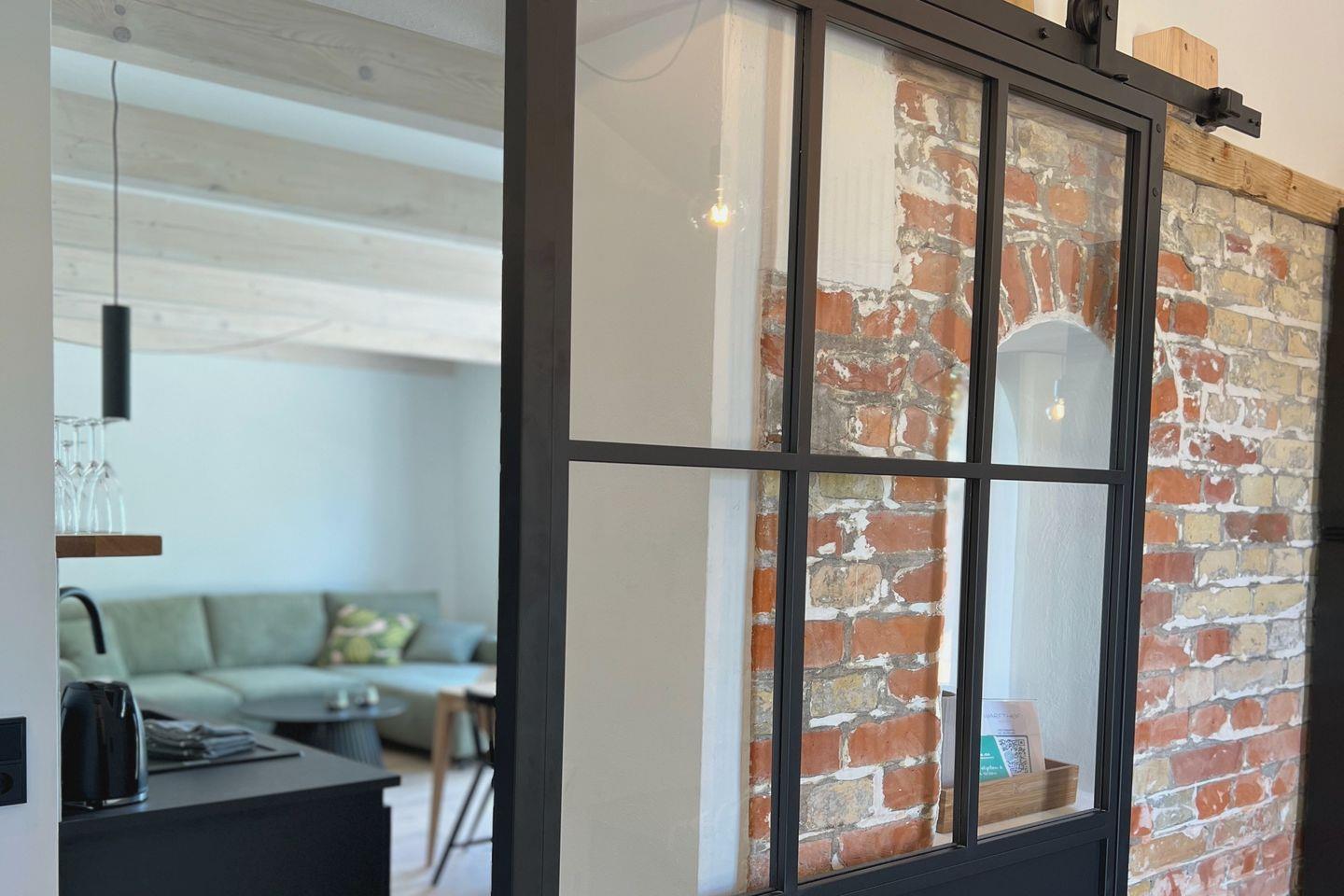 Die im industriellen Stil gewählte Einrichtung verleiht diesem sehr gut ausgestatteten Haus seinen besonderen Charme. Es liegt 50m vom Hof entfernt, direkt neben dem Haus NordseeStil und bietet Platz für eine kleine Familie oder ein Pärchen. Der offene Wohnessraum mit seiner riesigen Terrassenfront zum Garten gibt einem das Gefühl von Draußen sein. Ein Kamin und Hot Tub runden diese Wohneinheit ab. Moderner Komfort kann mit allen Annehmlichkeiten eines Bauernhofurlaubes verbunden werden.
