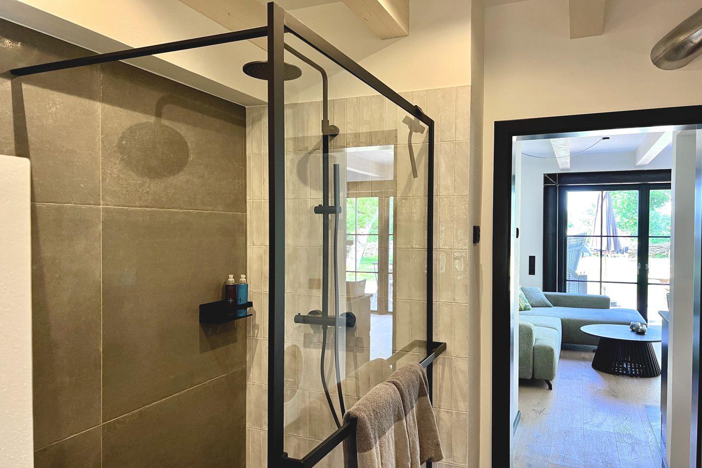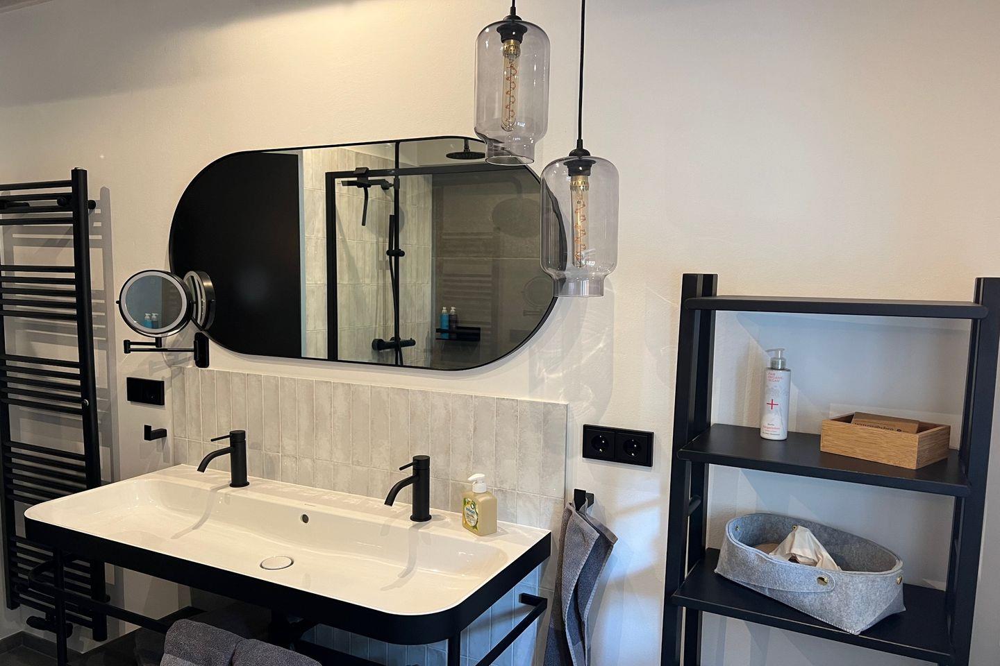 ° Duschbad mit Regendusche, WC, Waschtisch, Föhn und Kosmetikspiegel
