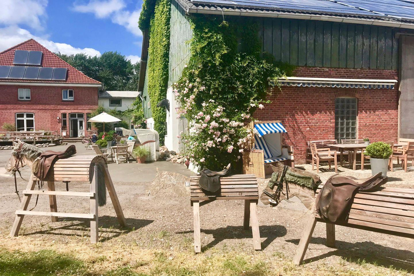 Unser Warfthof Wollatz vielfältig. Für die Kinder bieten sich diverse Spielmöglichkeiten auf dem weitläufigen Hofgelände. Für die Eltern haben wir gemütliche Sitzplätze, der Strandabschnitt am Schwimmteich und unser Saunahaus mit Sonnenterrasse laden zum Verweilen ein. Während die Eltern ihren Kaffee genießen oder ein gutes Buch im Strandkorb lesen, genießen die Kinder das Gefühl von Freiheit, toben auf dem Strohboden, flitzen mit den GoKarts über den Hof oder begeistern sich bei einer Treckerfahrt mit Bauer York. Wir ermöglichen den natürlichen Umgang mit vielen Tieren und bieten euch ein breites Reitangebot für kleine und große Reitbegeisterte.