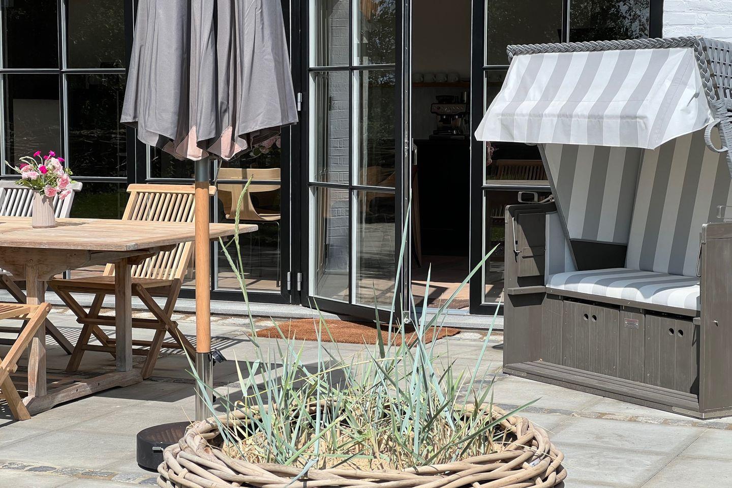 ° Strandkorb, Gartenmöbel und Grill vorhanden