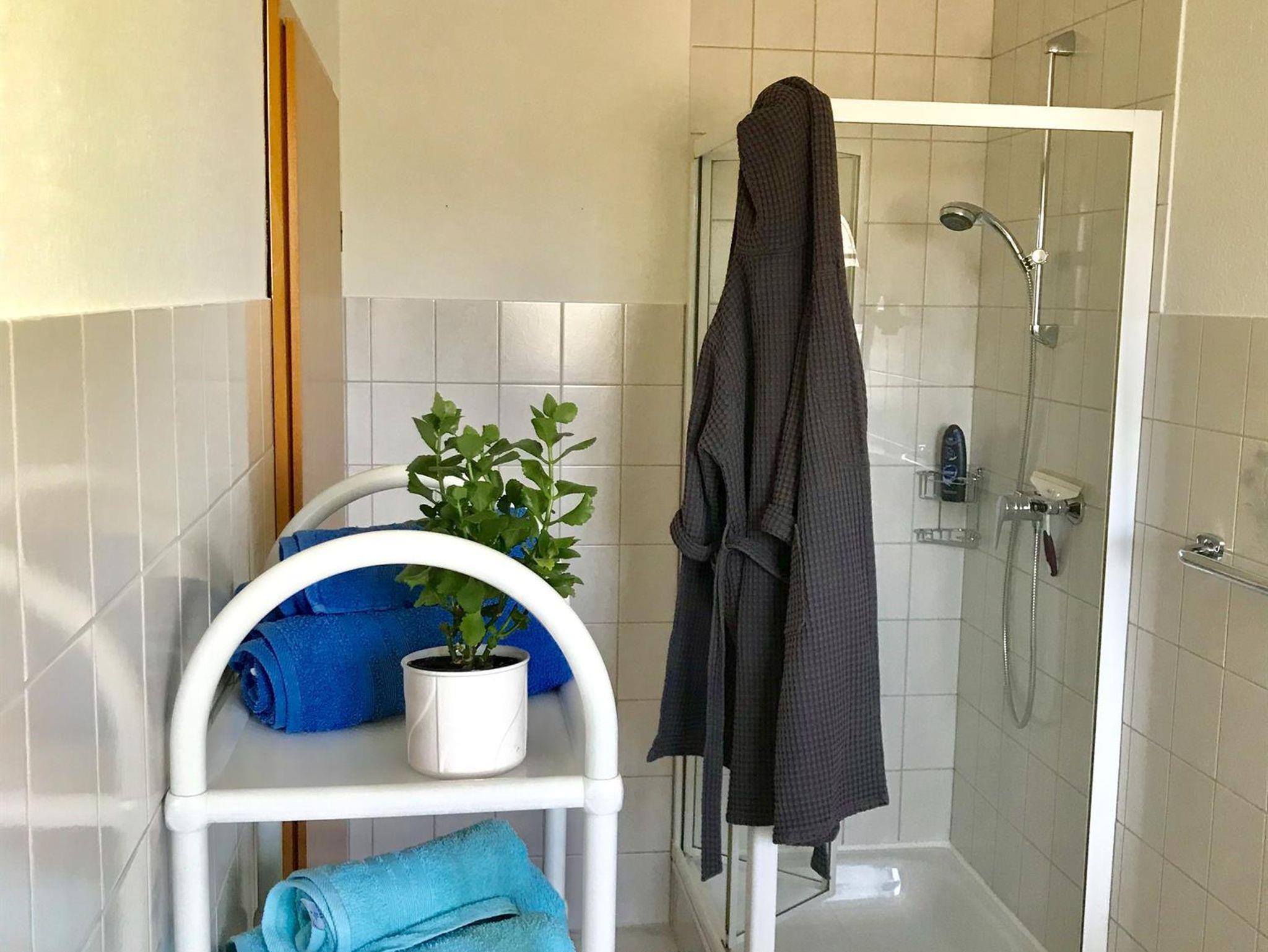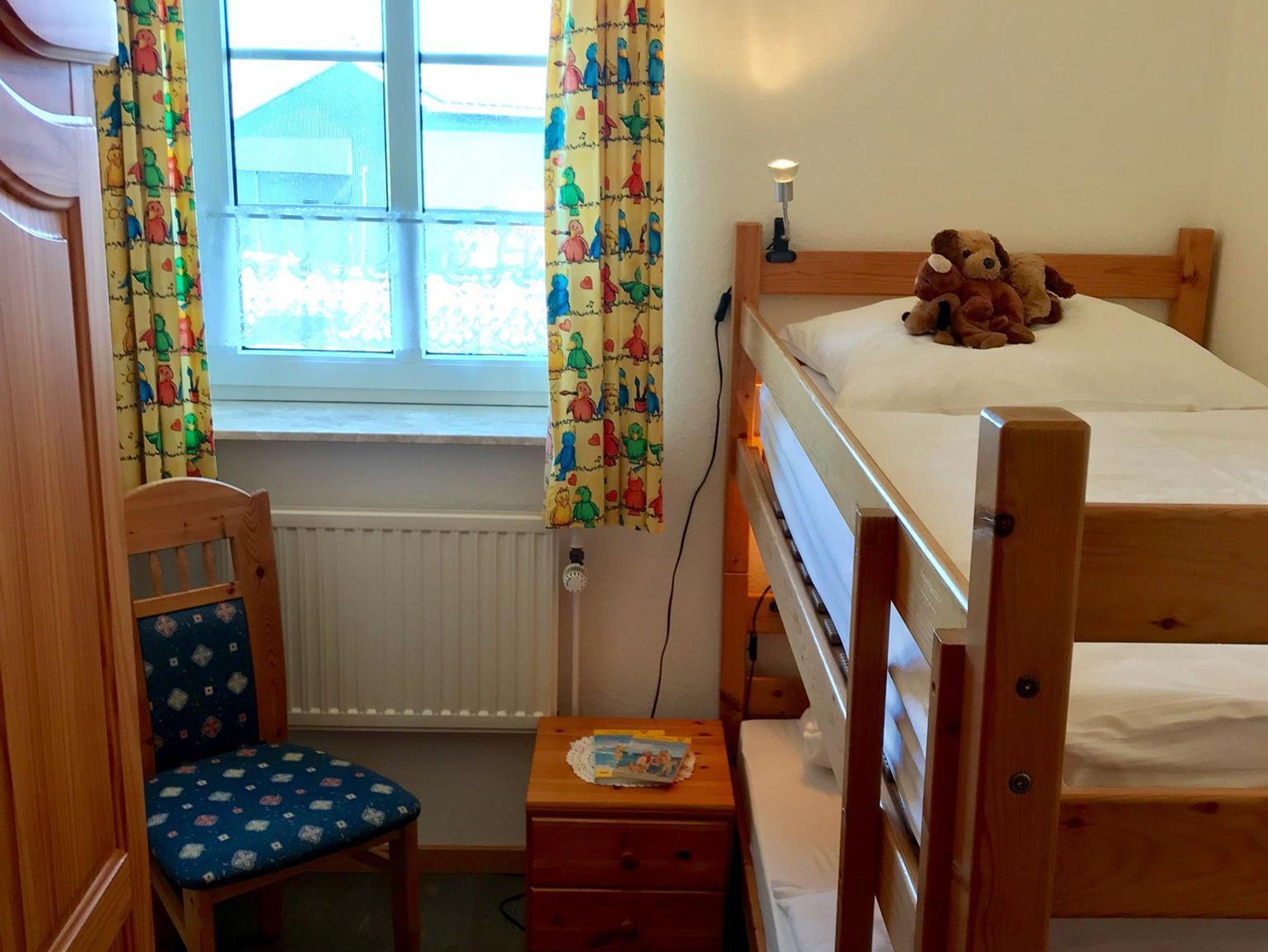 Die Ferienwohnung bietet 2 Schlafzimmer auf 50 qm, ein Duschbad und ein Großzügigen Wohn-, Koch- und Essbereich. Kinderbetten oder Zustellbetten lassen sich zusätzlich unterbringen. Die Küchenzeile ist komplett ausgestattet (Kühlschrank,Herd, Microwelle, Geschirrspühler, etc.). Sat-TV ist vorhanden. Waschmaschine und Wäschetrockner stehen bei Bedarf zur Verfügung.